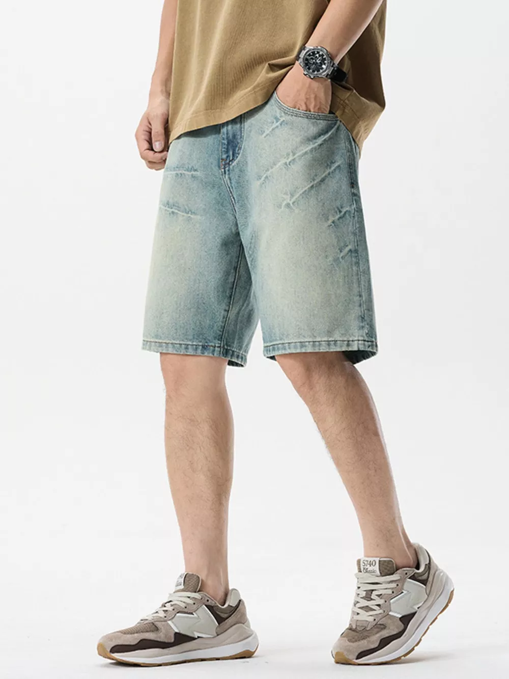 Men's Wash Loose Fit Denim Shorts