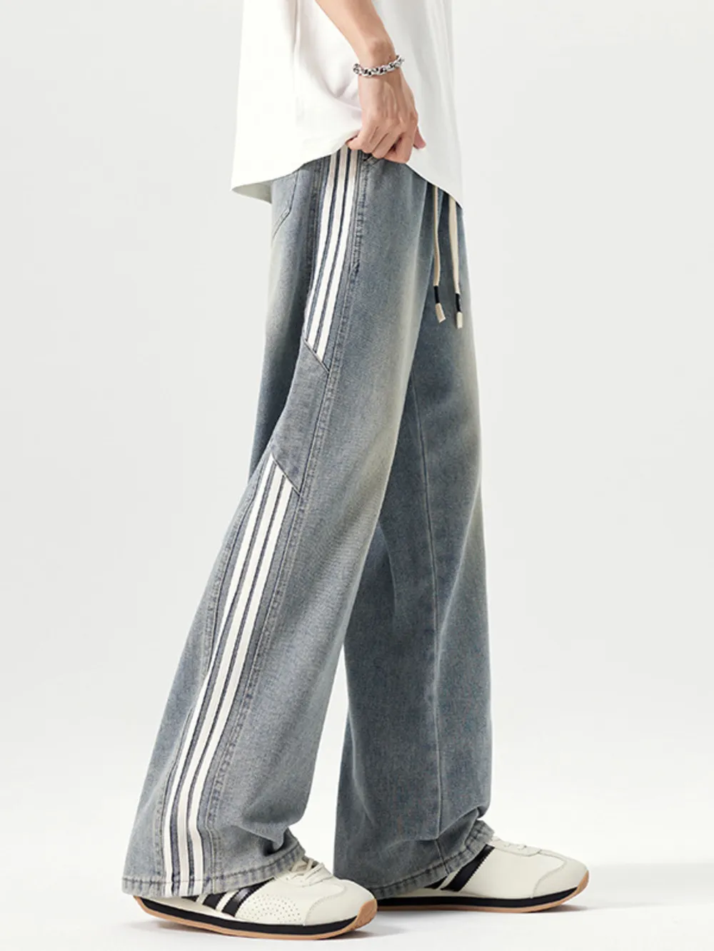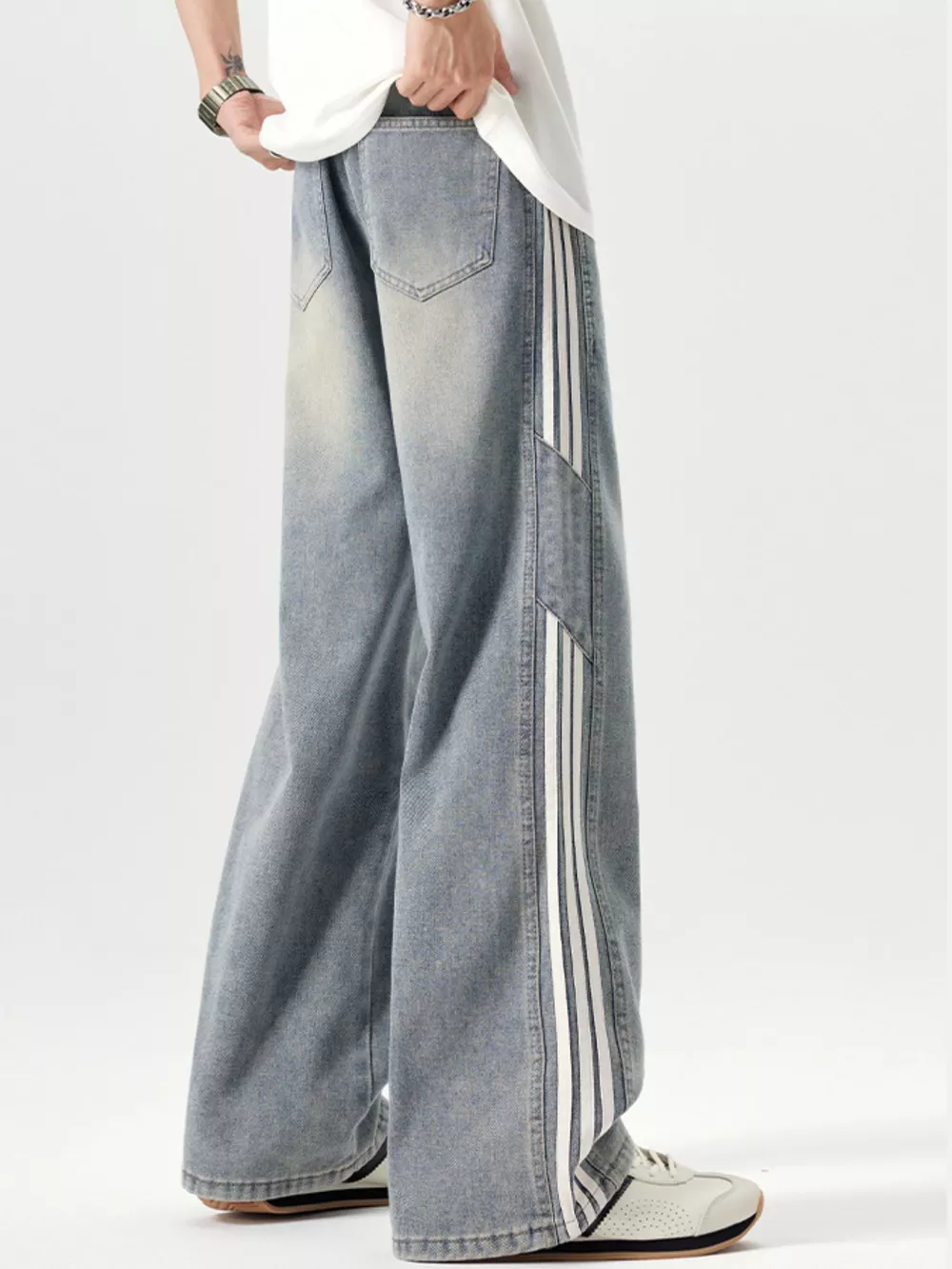 Men's Plus Size Wide Leg Jeans with Side Stripes