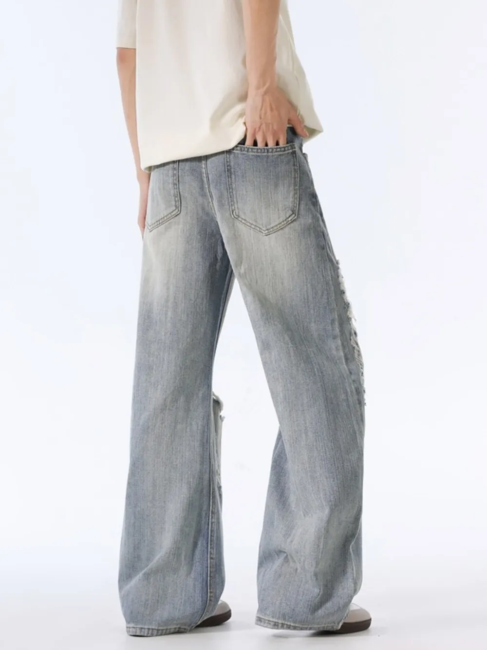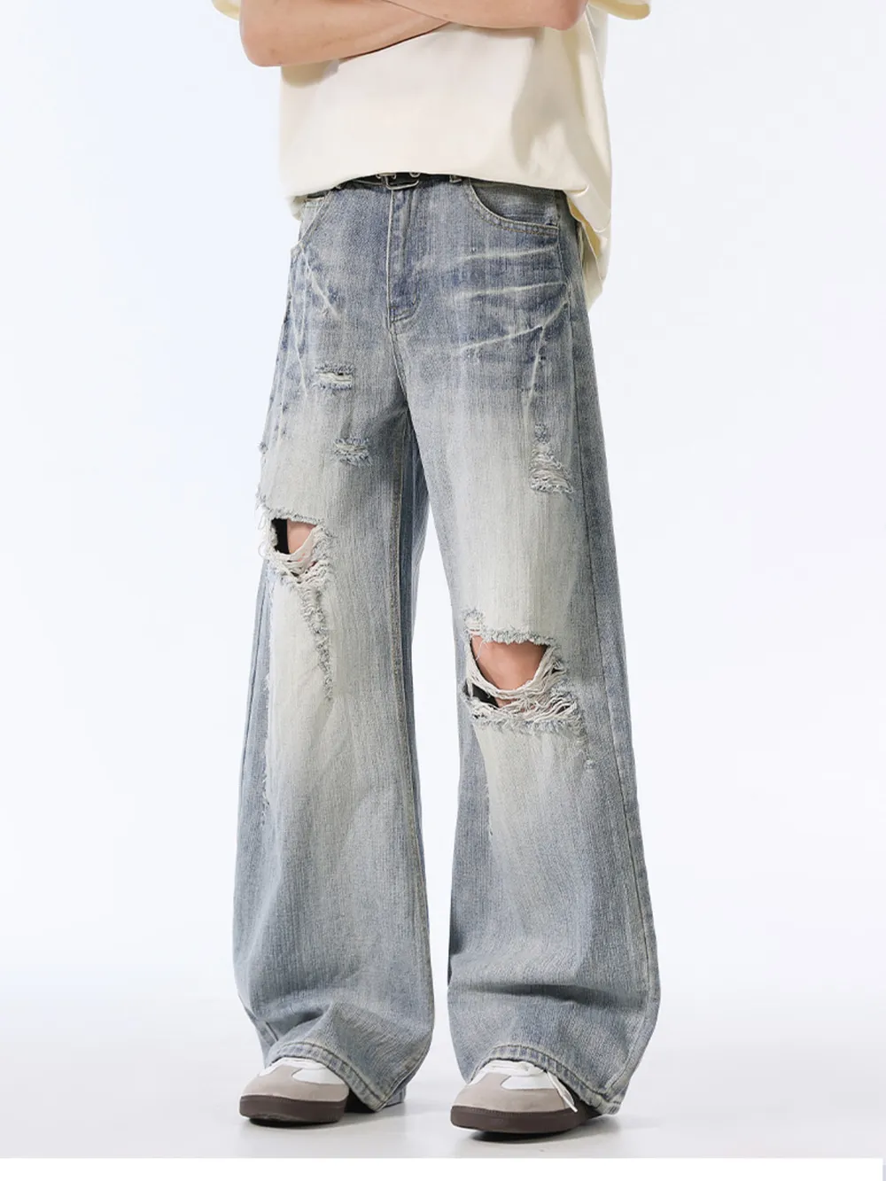 Men's Distressed Wide Leg Vintage Wash Jeans