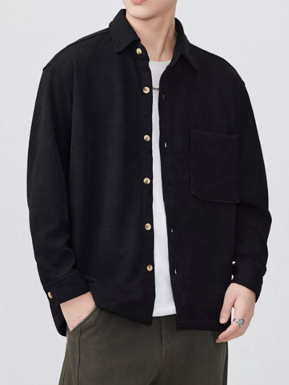 - Features:Oversized,Buttoned,Pocketed