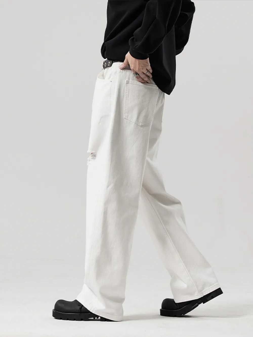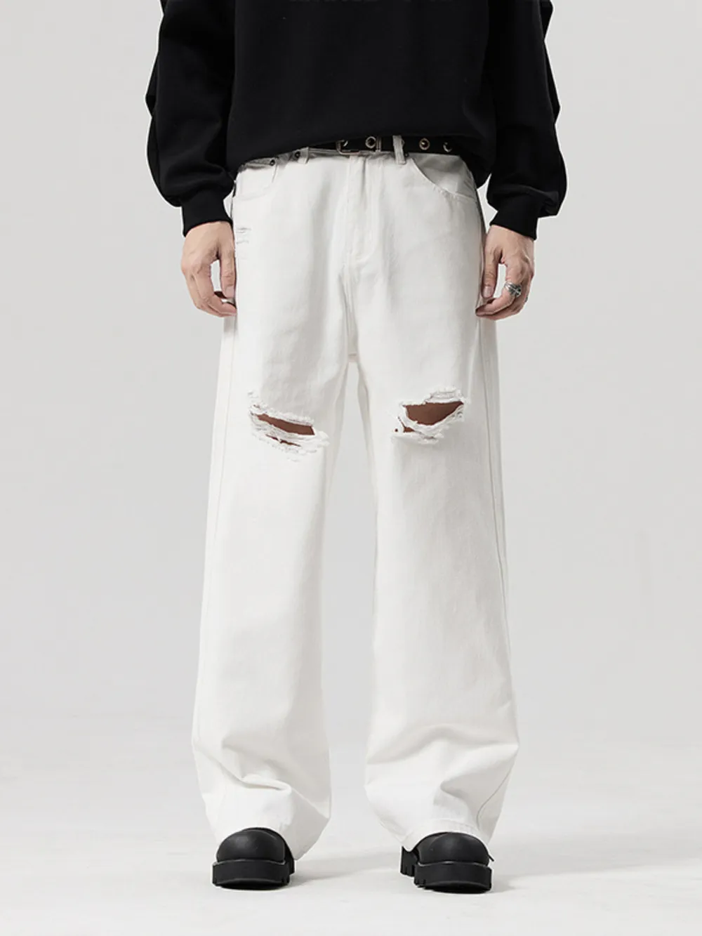 Men's Full Size Distressed Ripped Wide Leg Jeans Plus Size