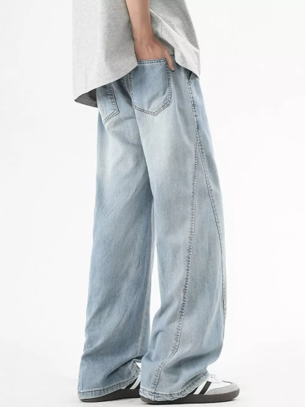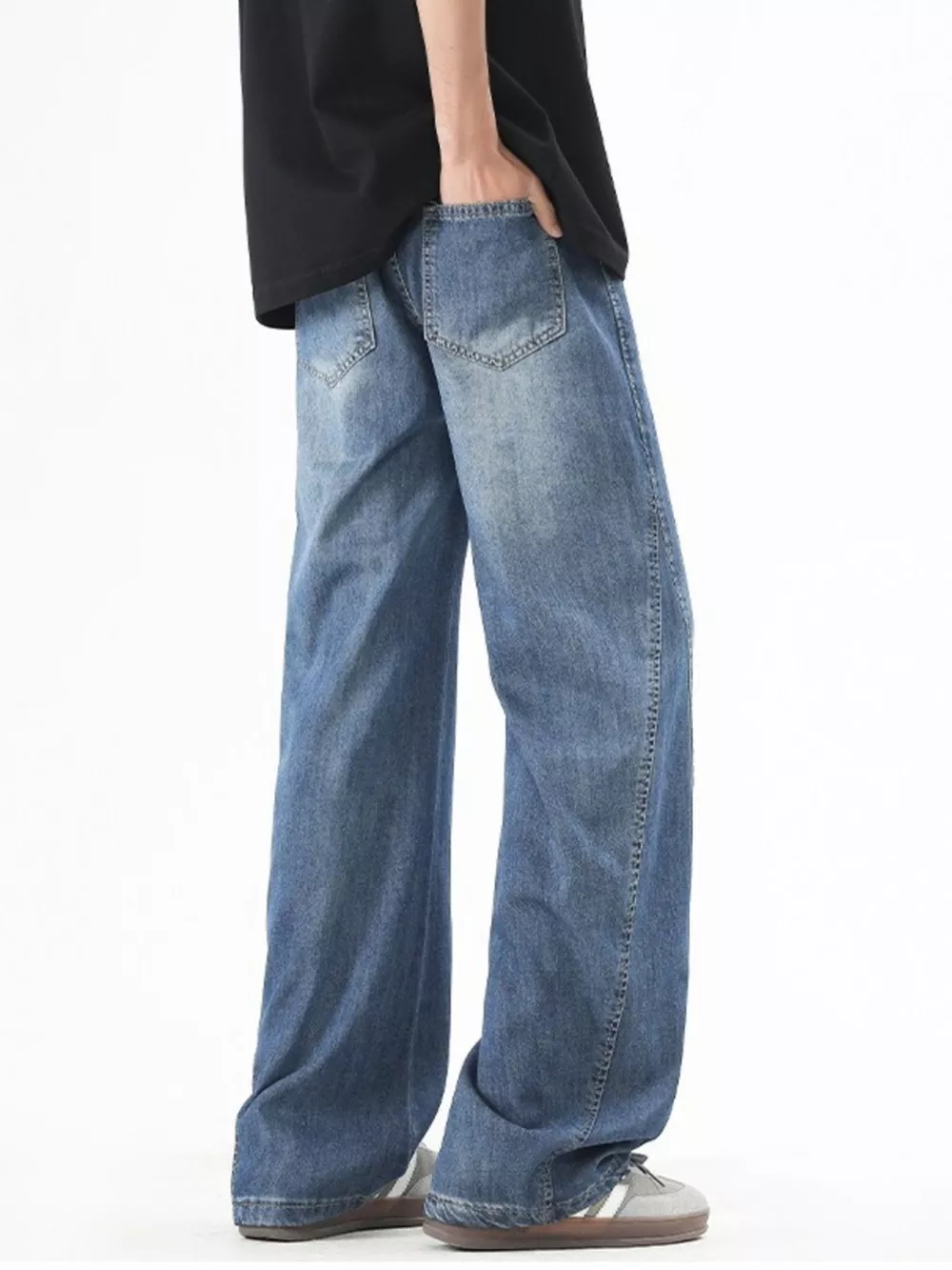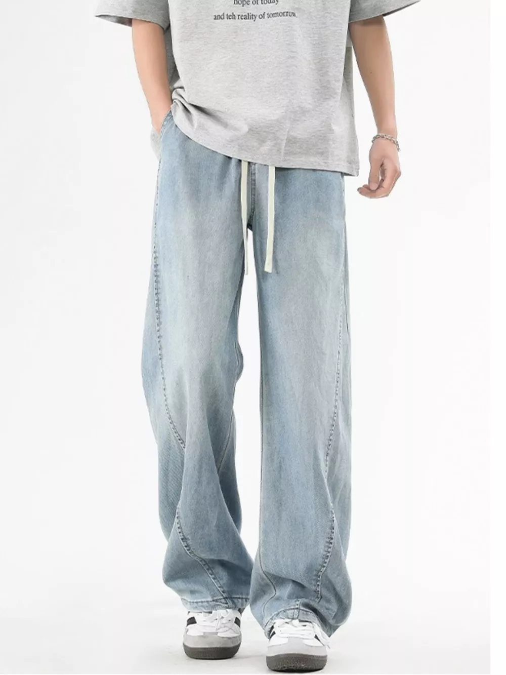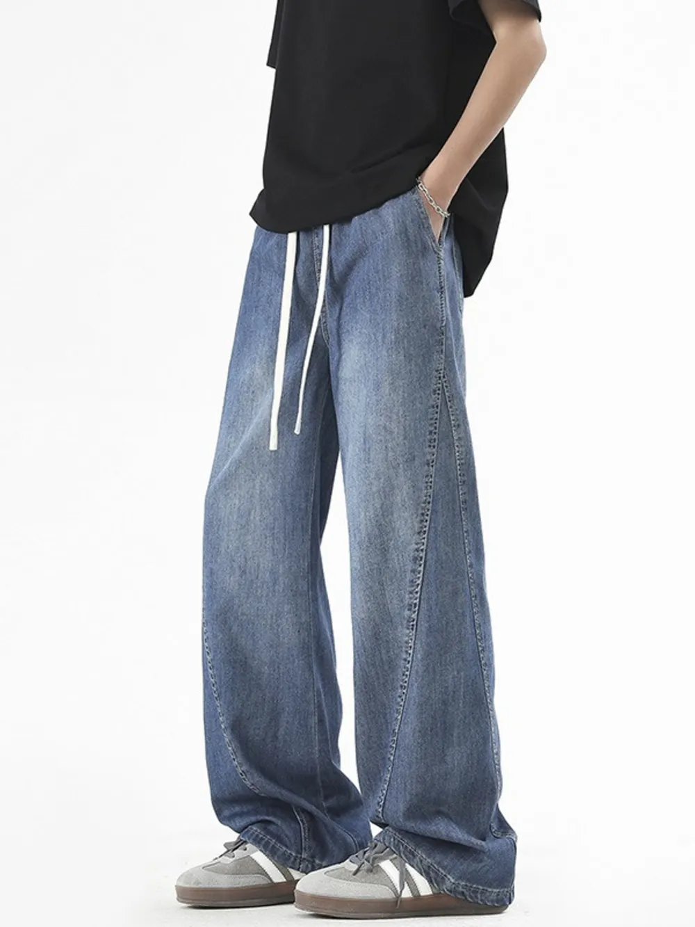 Men's Plus Size Vintage Wide Leg Jeans with Drawstring