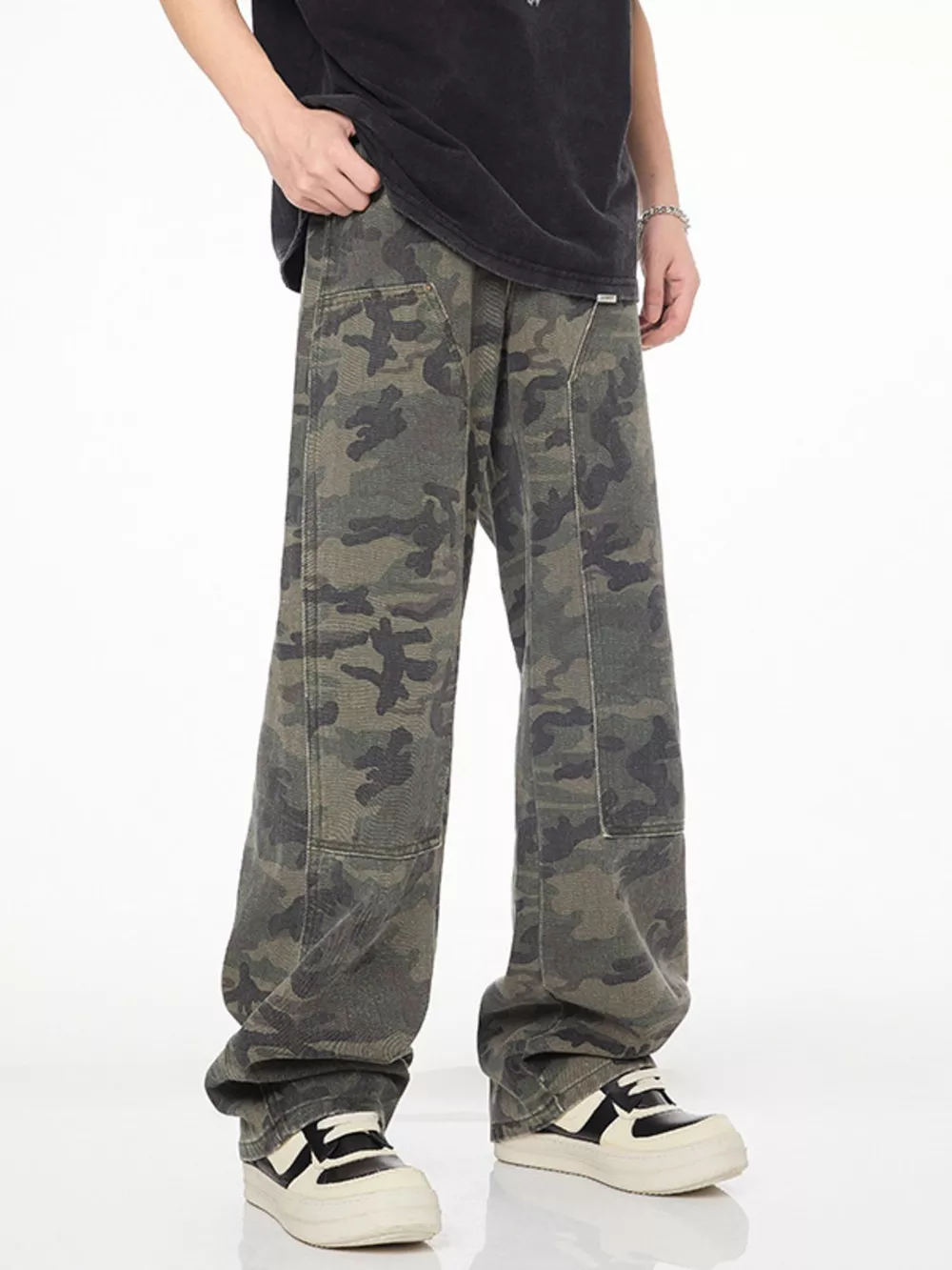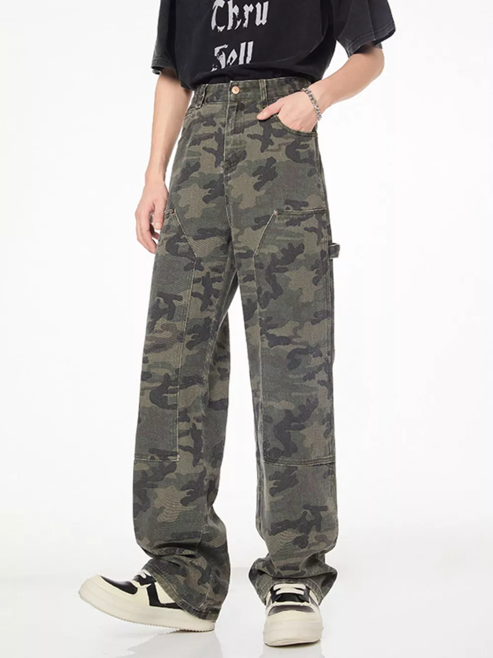 Men's Full Size Camo Print Relaxed Fit Jeans Plus Size
