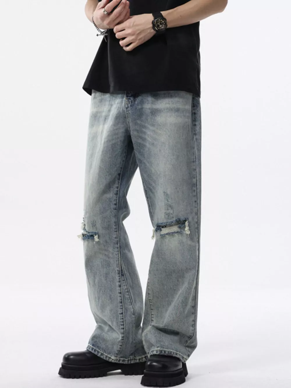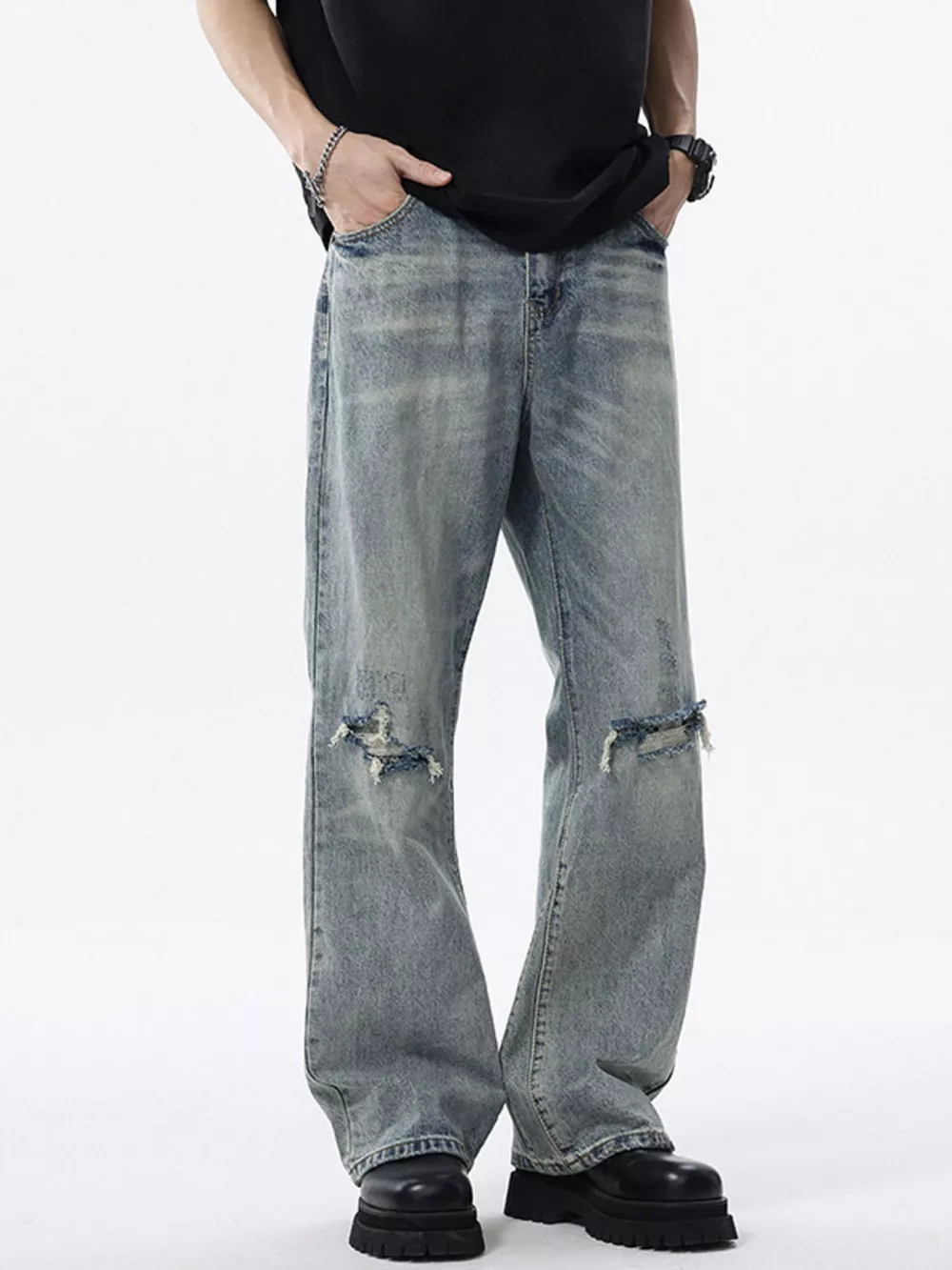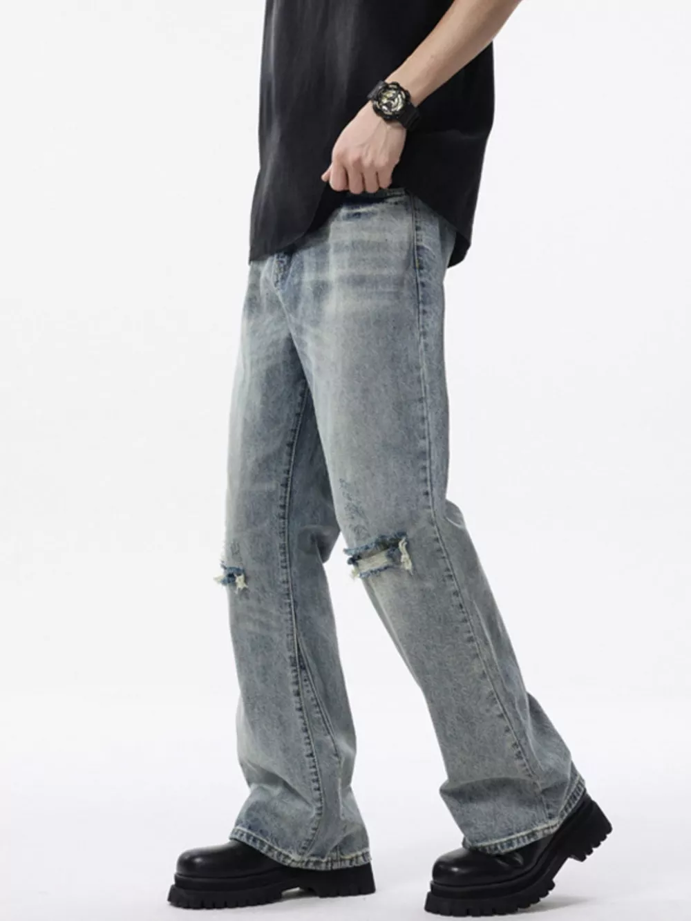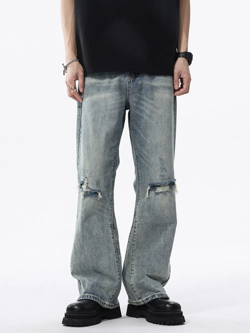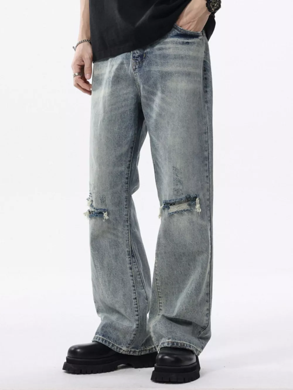 Men's Distressed Wide Leg Jeans