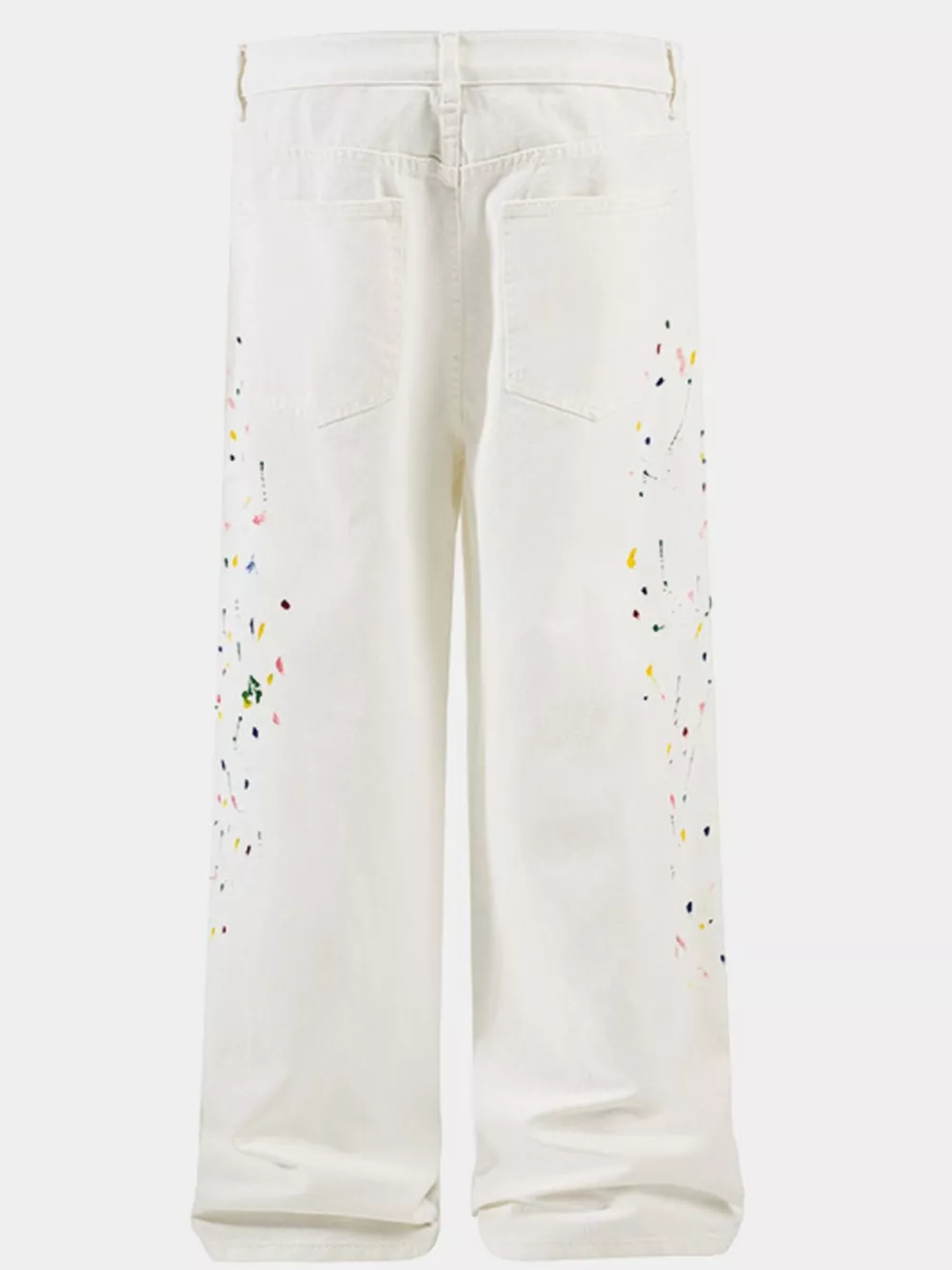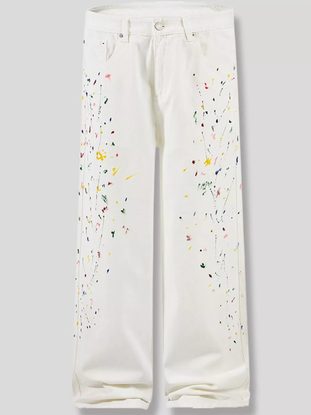 Men's Paint Splatter Artistic Wide Leg Jeans