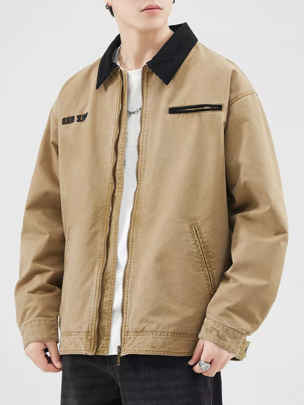 - Features:Buttoned,Pocketed,Zipper