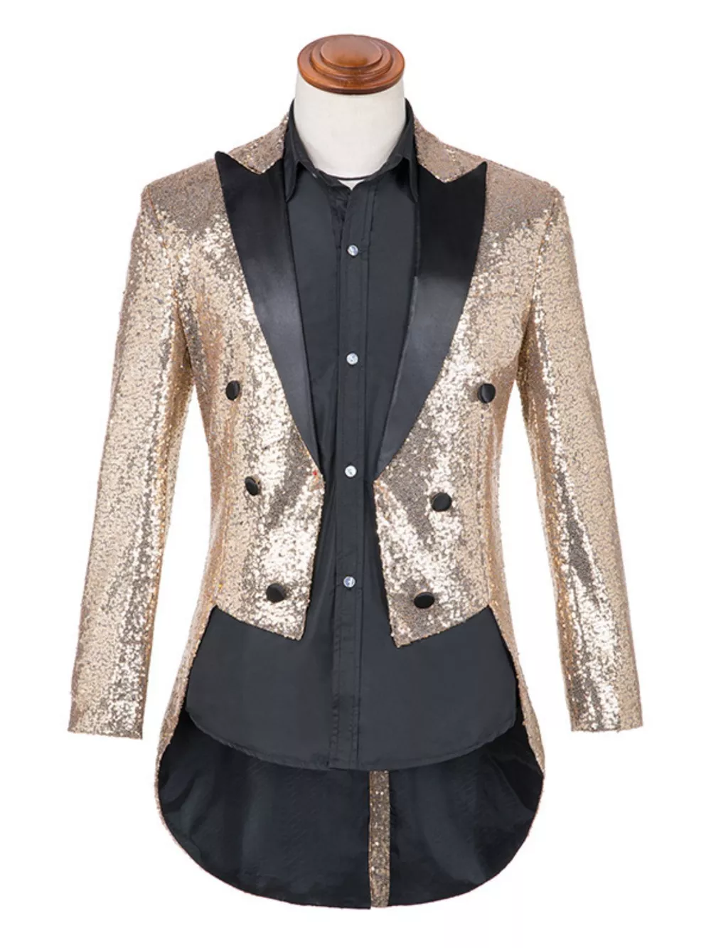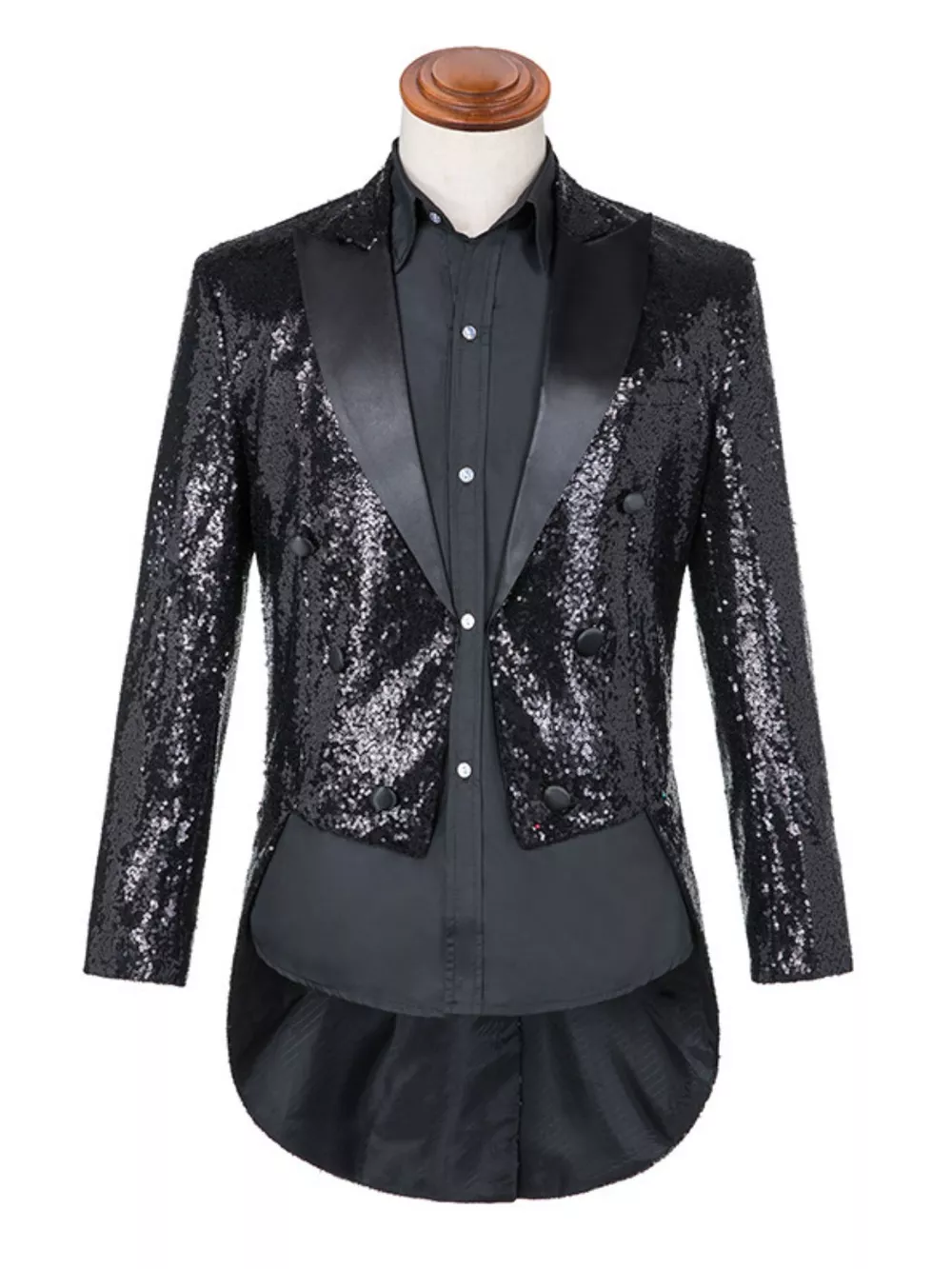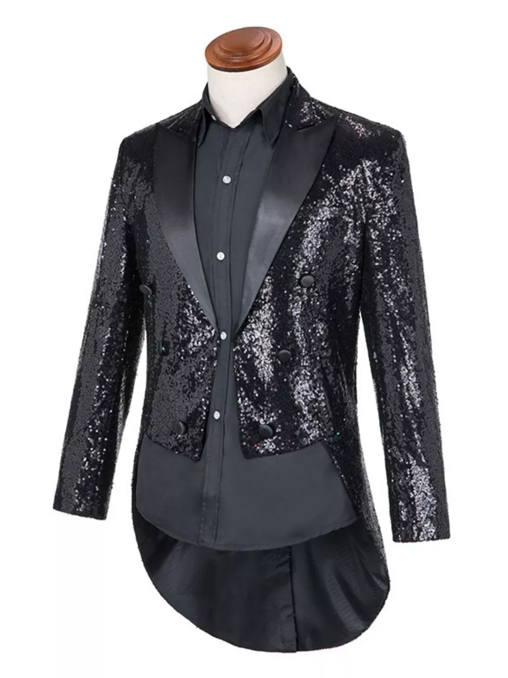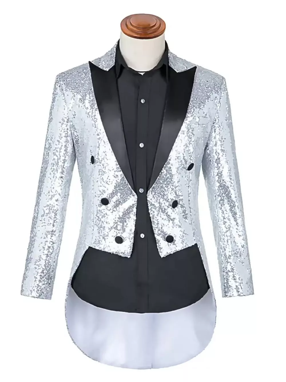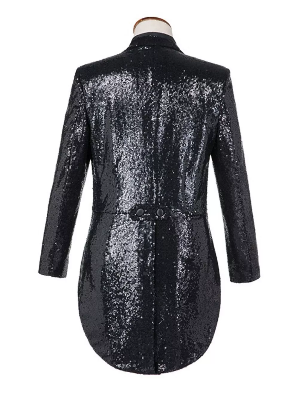 Men's Plus Size Sequin Button Up Long Sleeve Tailcoat Blazer