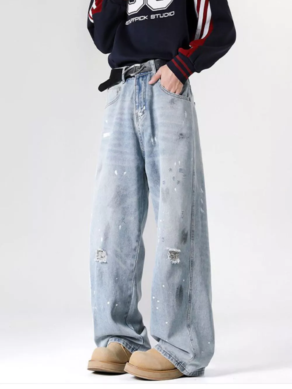 Men's Full Size Distressed Wide Leg Jeans Plus Size