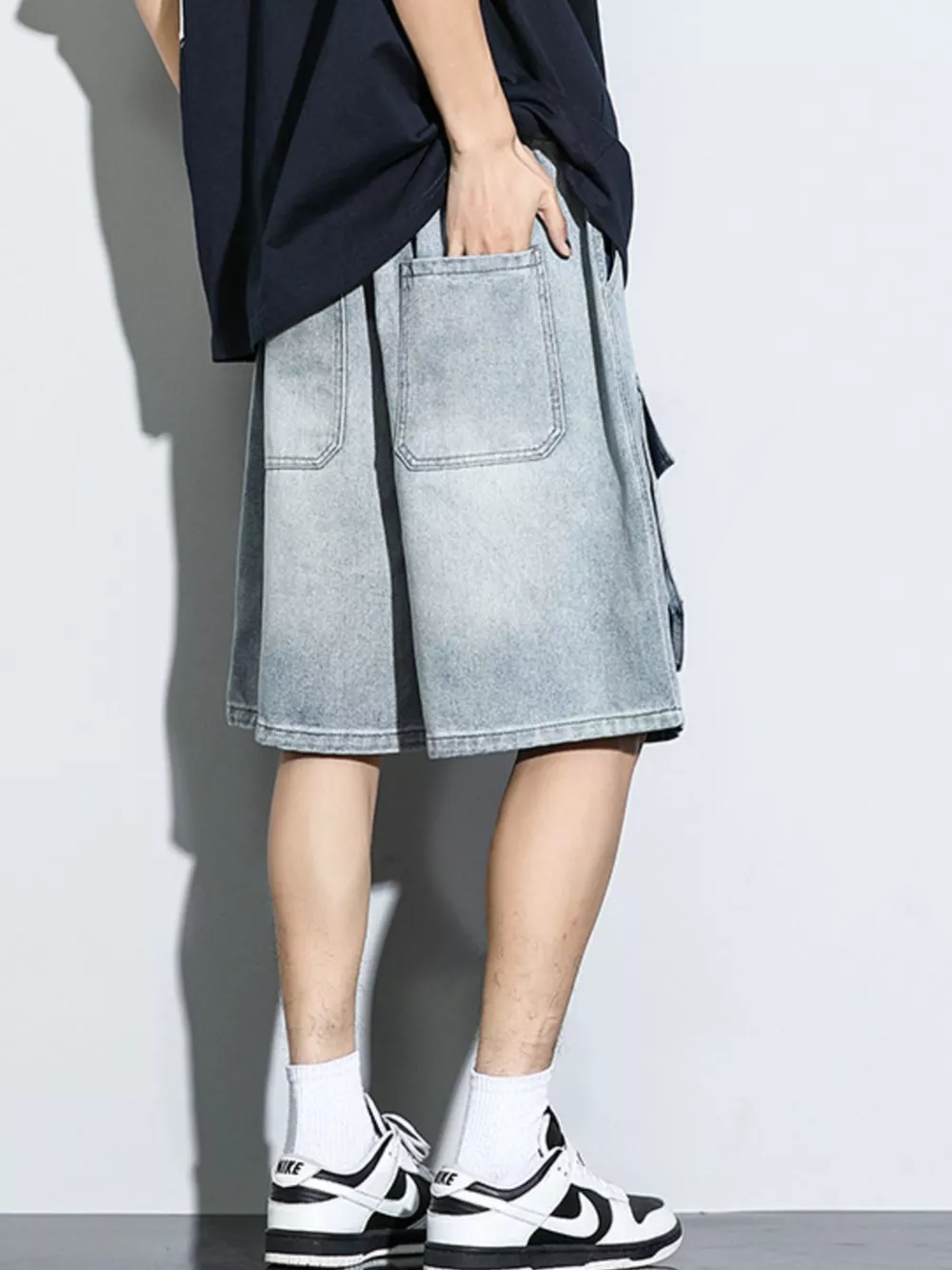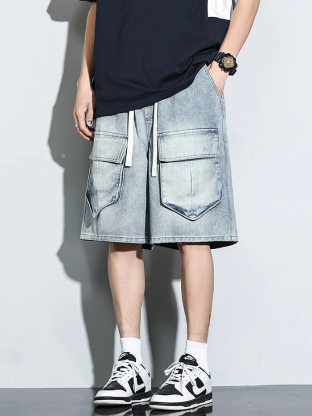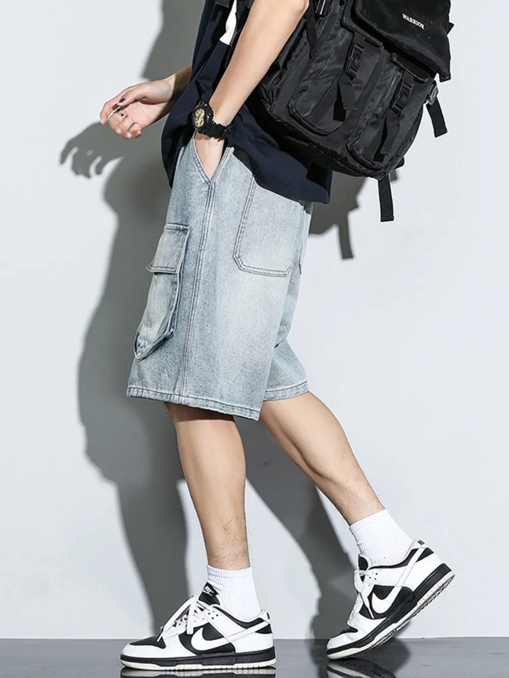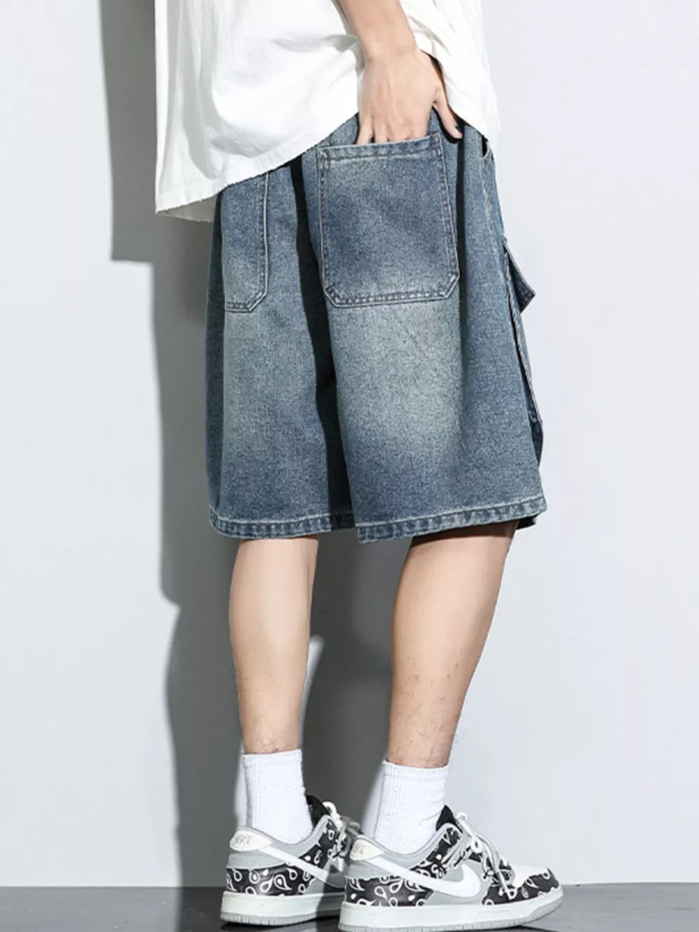 Men's Full Size Relaxed Fit Cargo Pocket Denim Shorts Plus Size