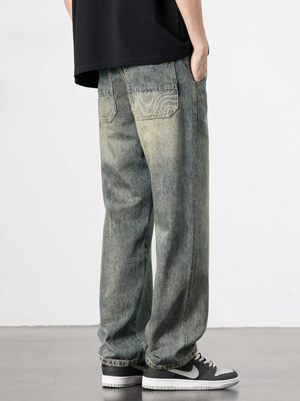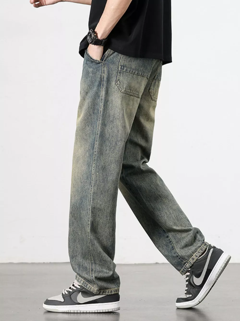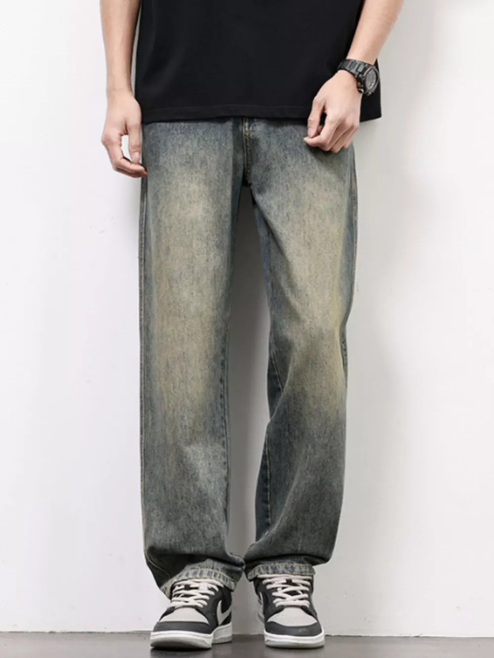 Men's Washed Wide Leg Relaxed Fit Jeans