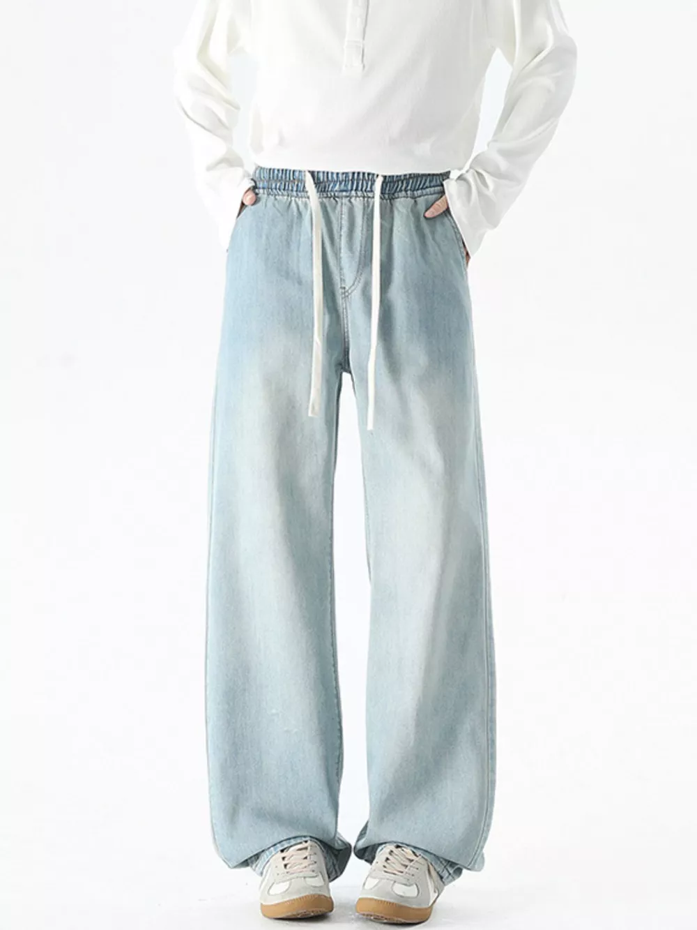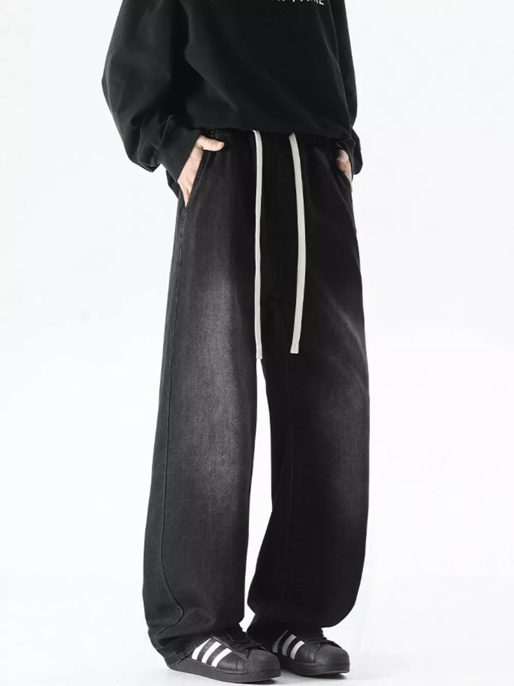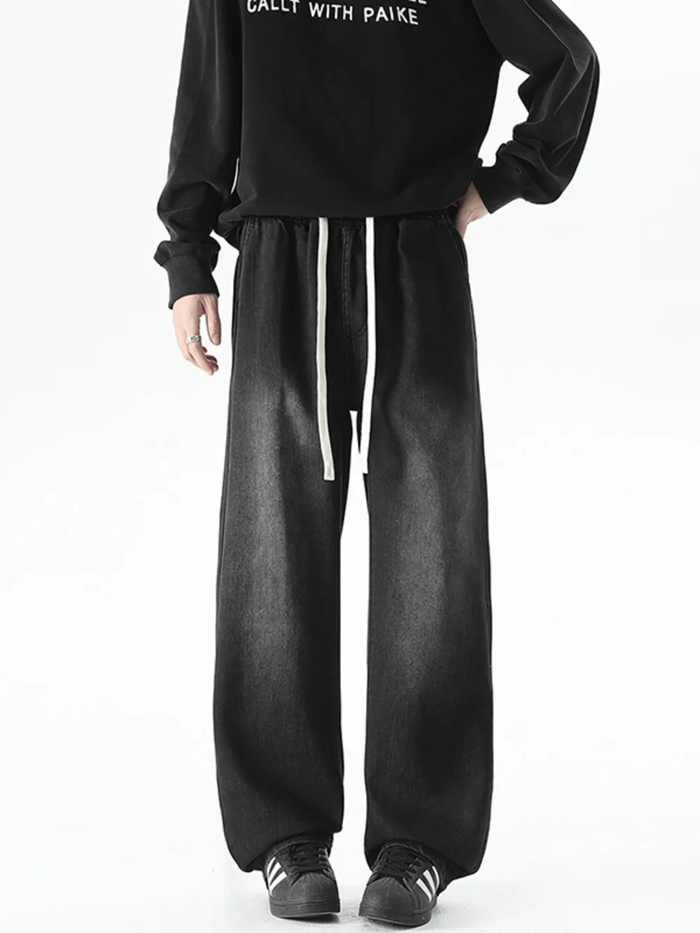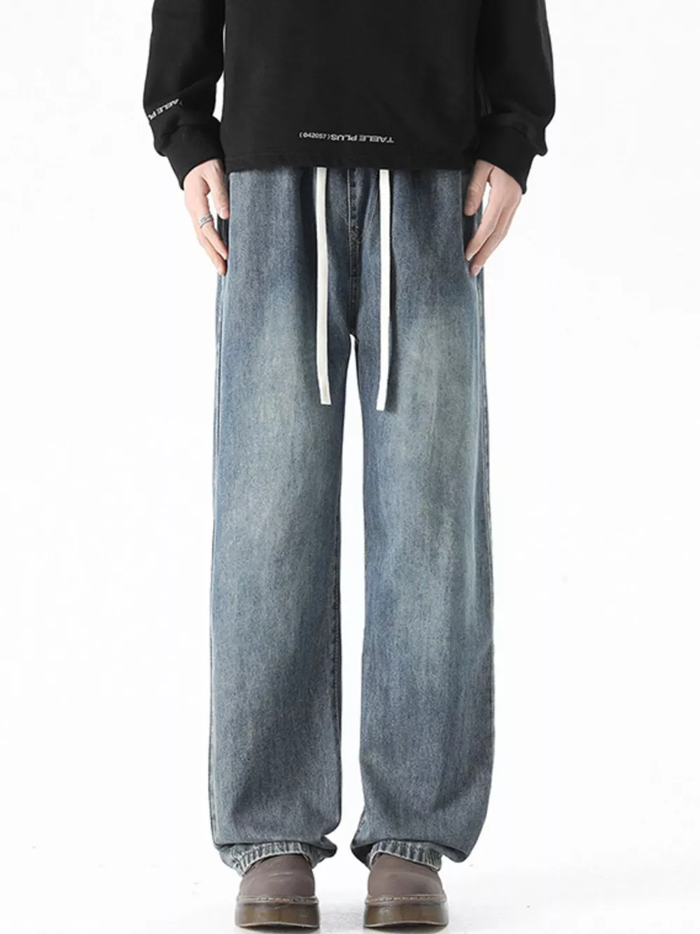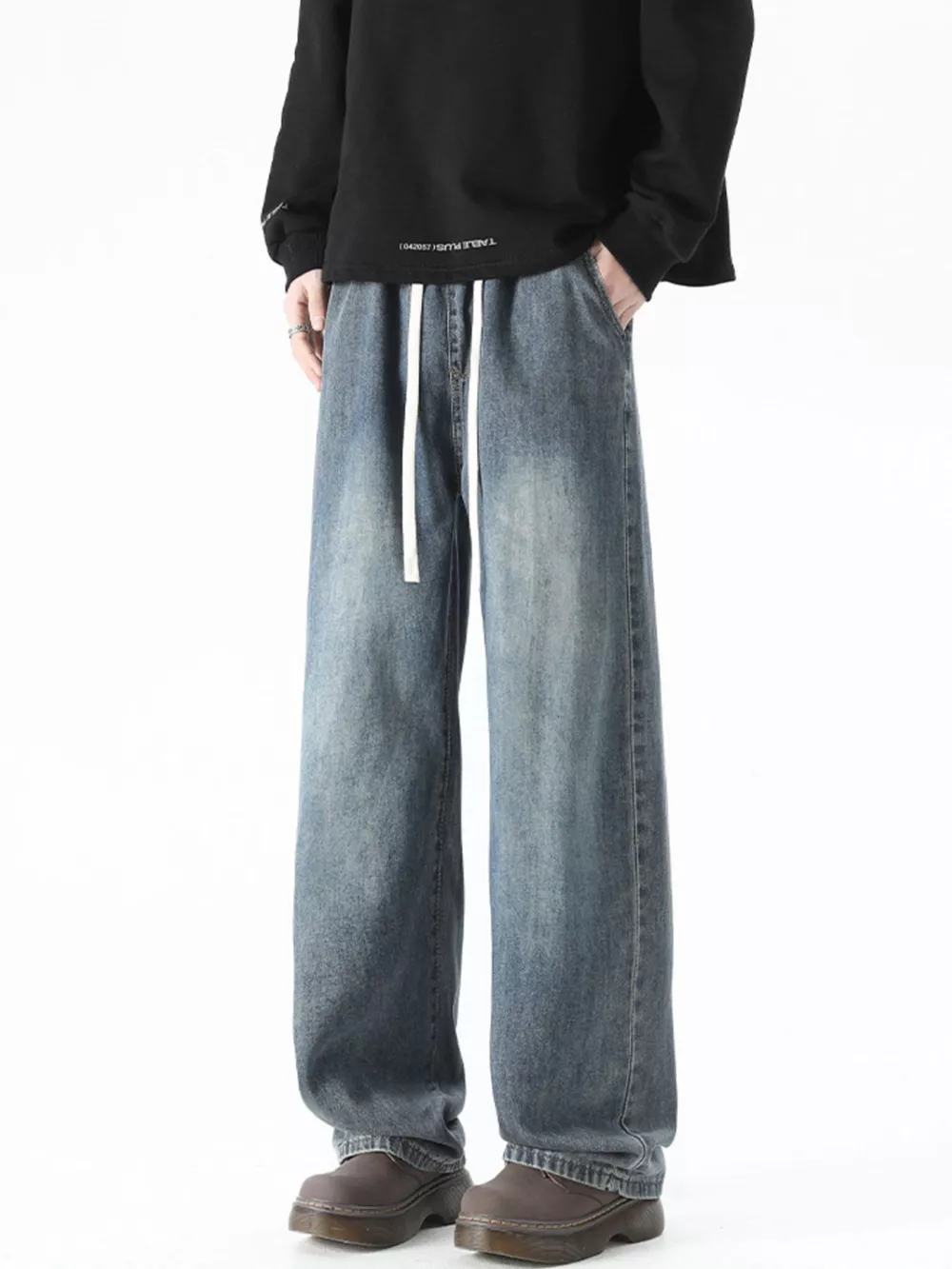 Men's Plus Size Drawstring Wide Leg Jeans