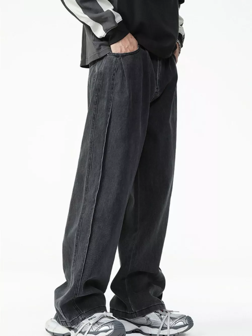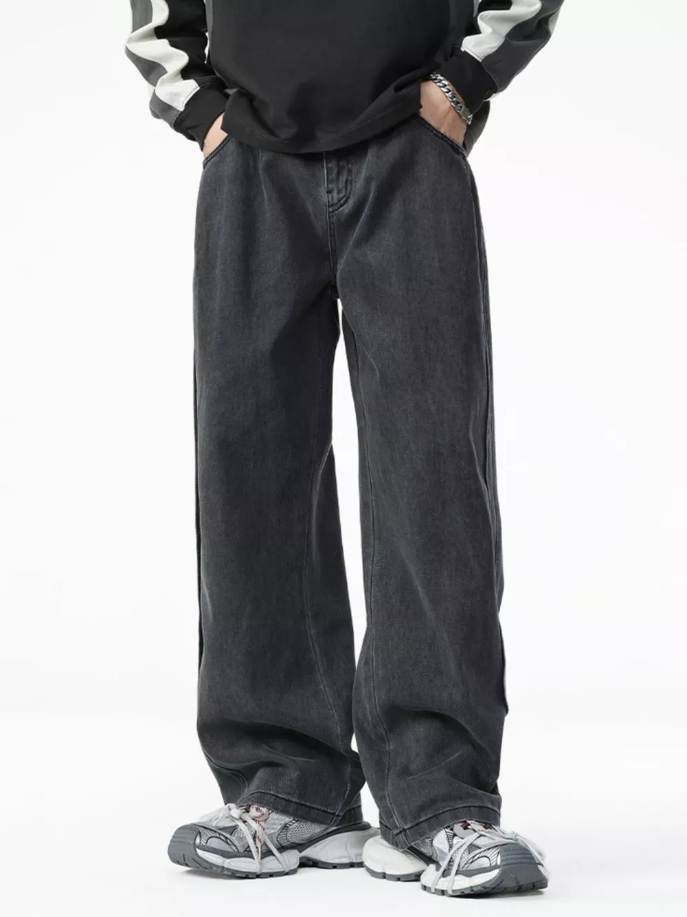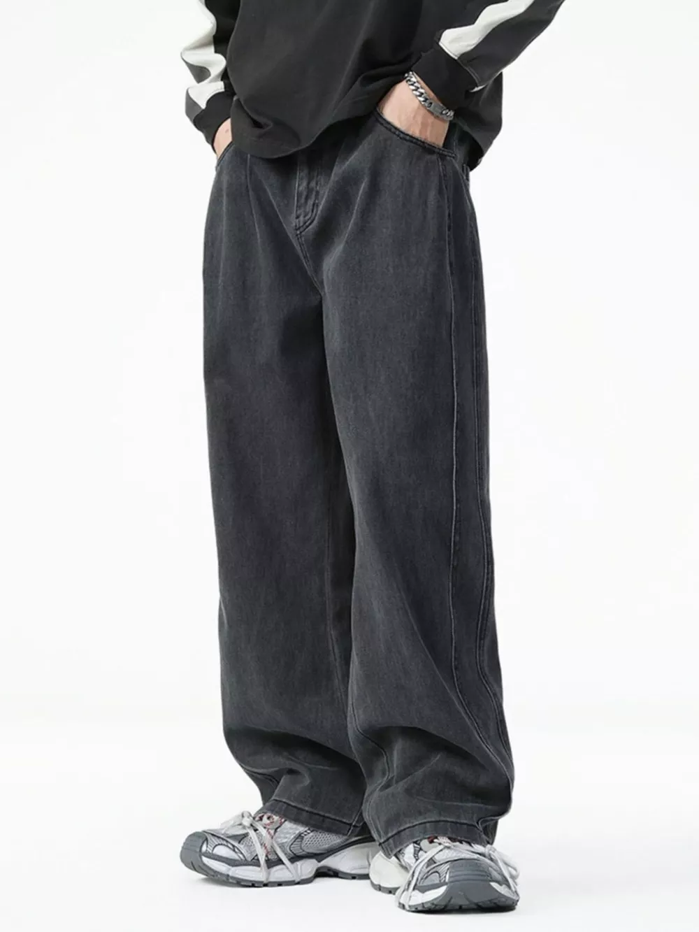 Men's Washed Relaxed Fit Wide Leg Jeans