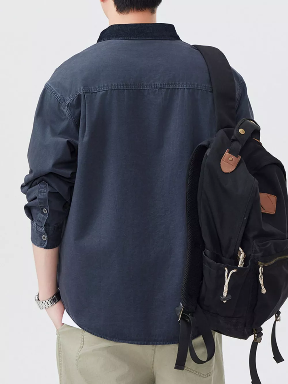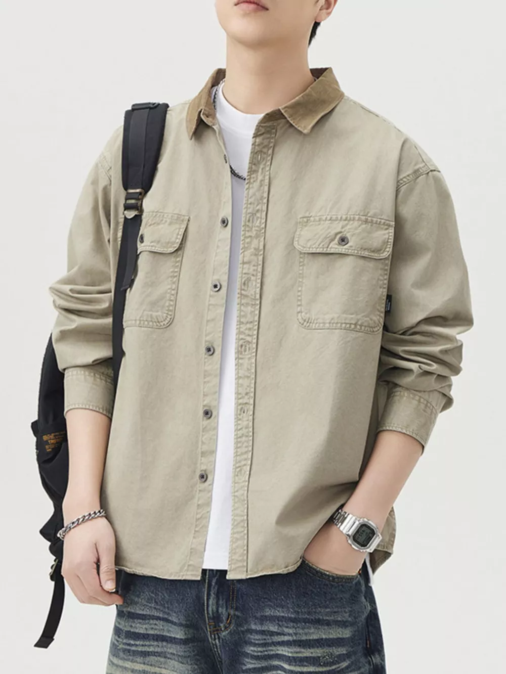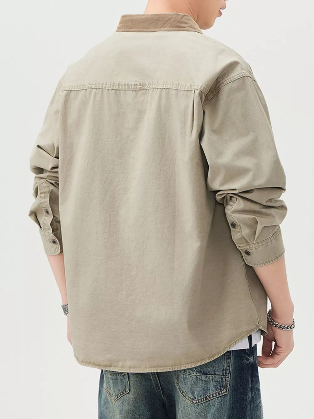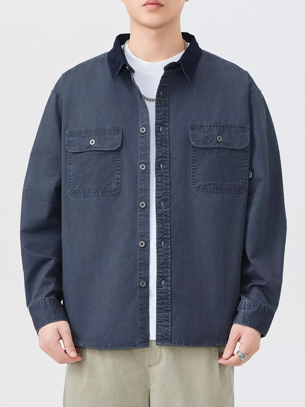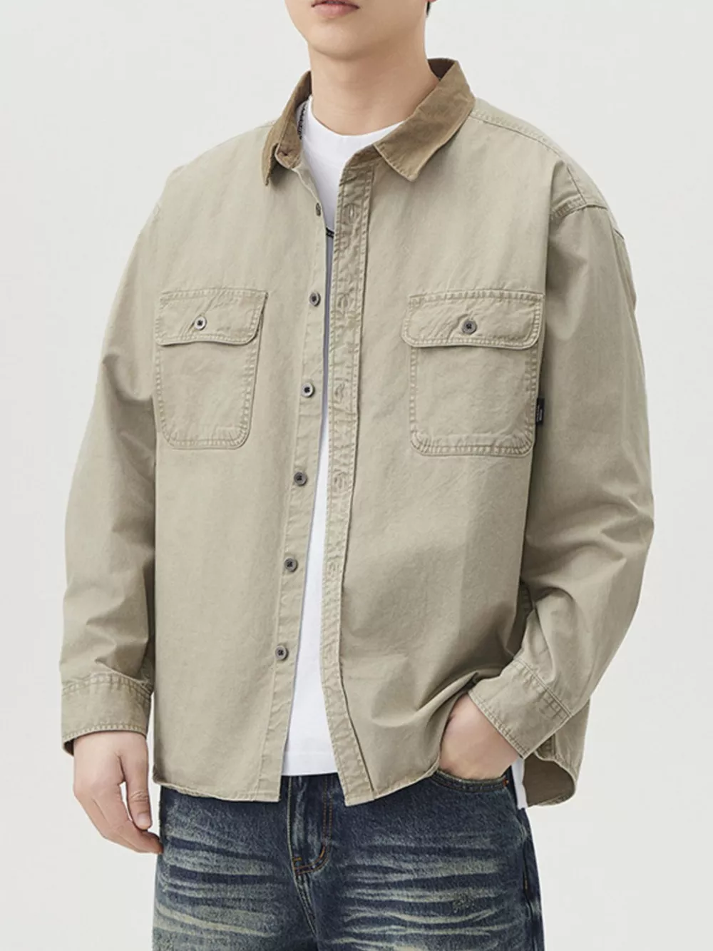Men's Plus Size Button Up Shacket with Dual Chest Pockets