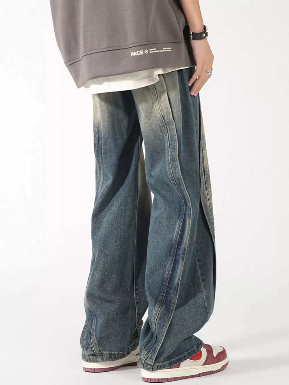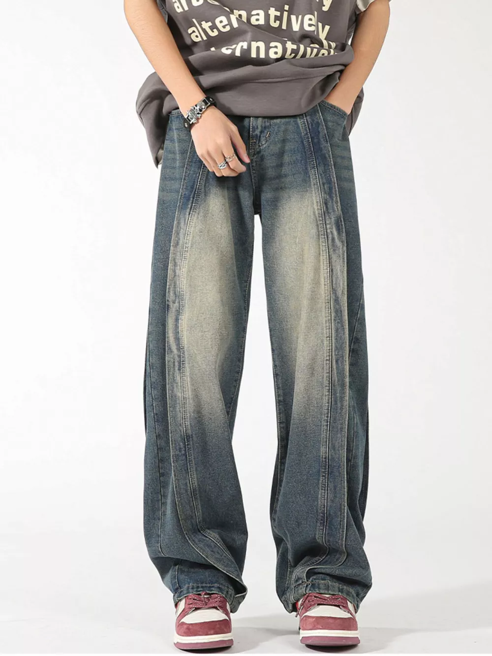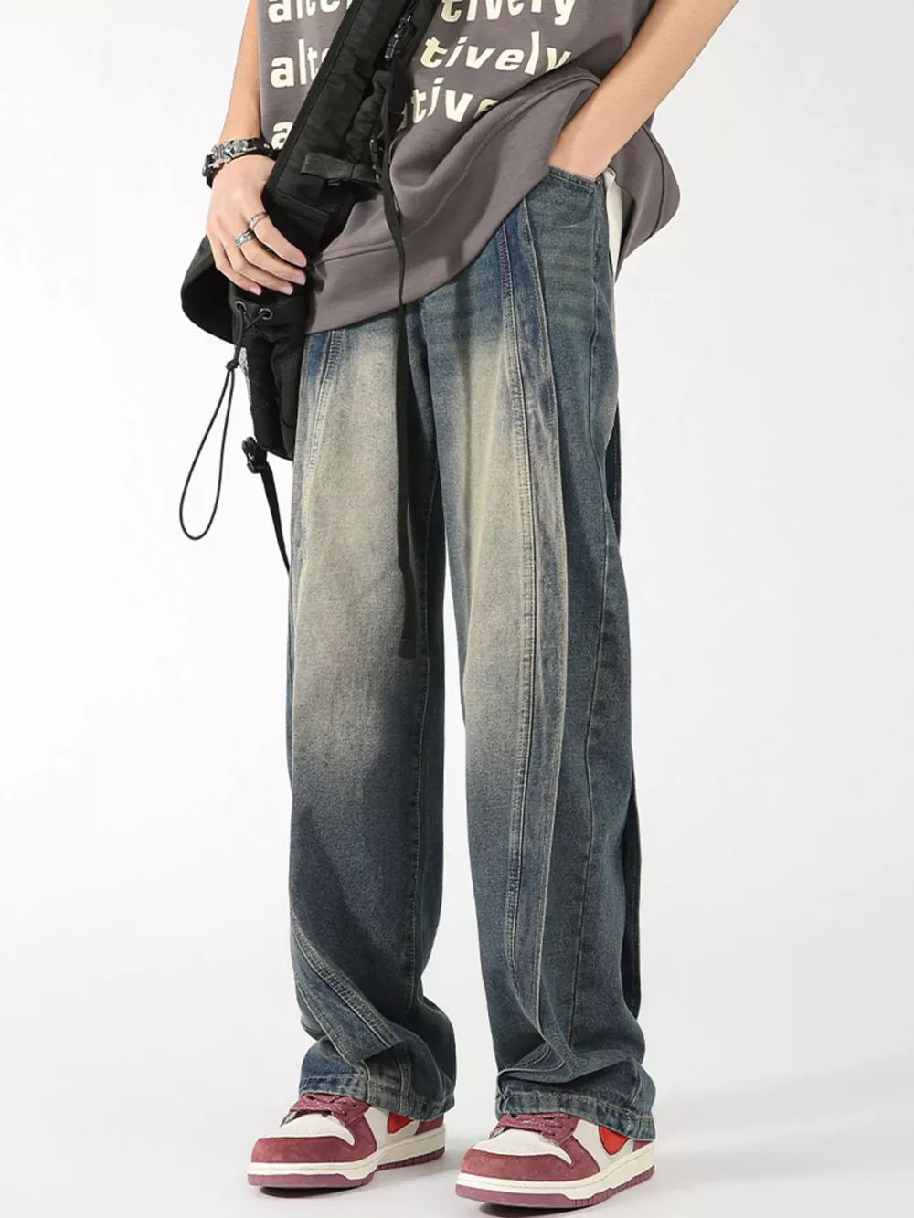 Men's Plus Size Washed Wide Leg Jeans