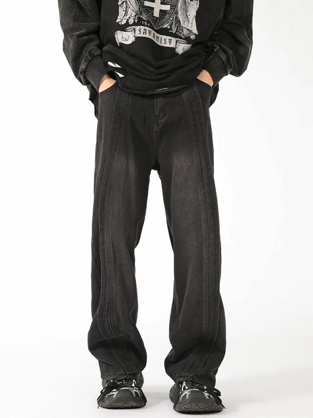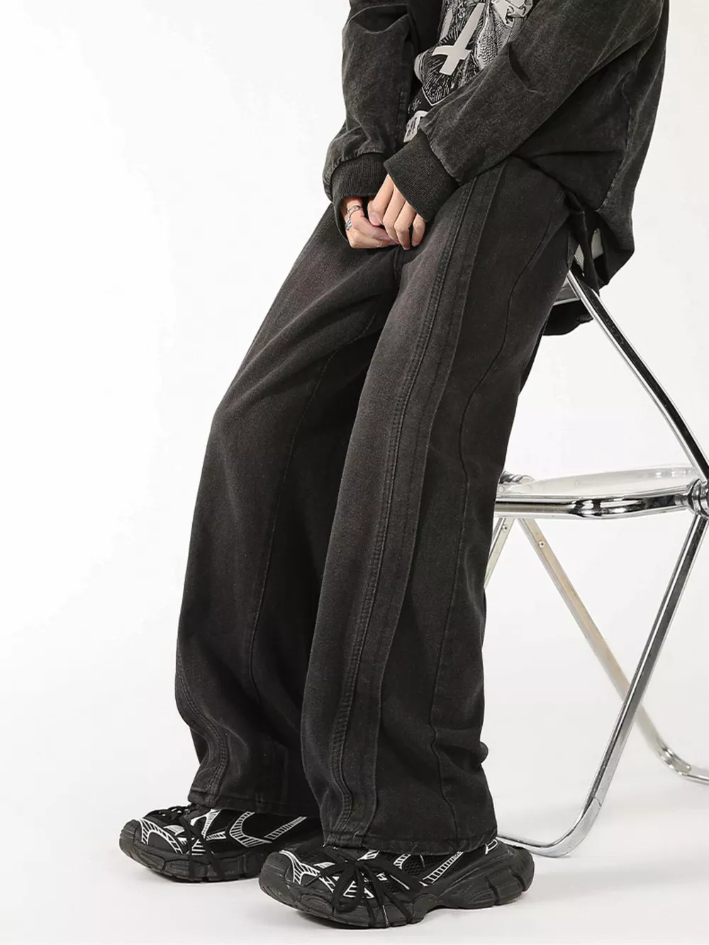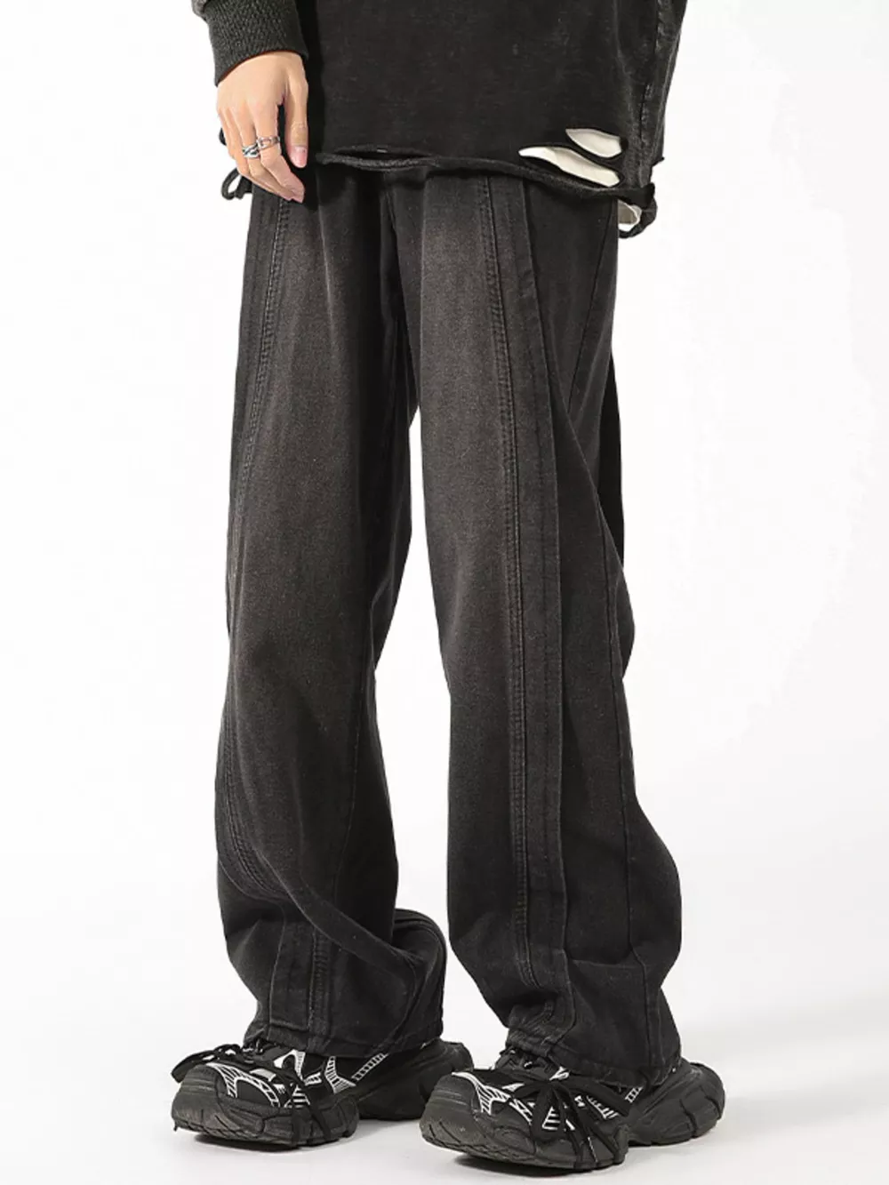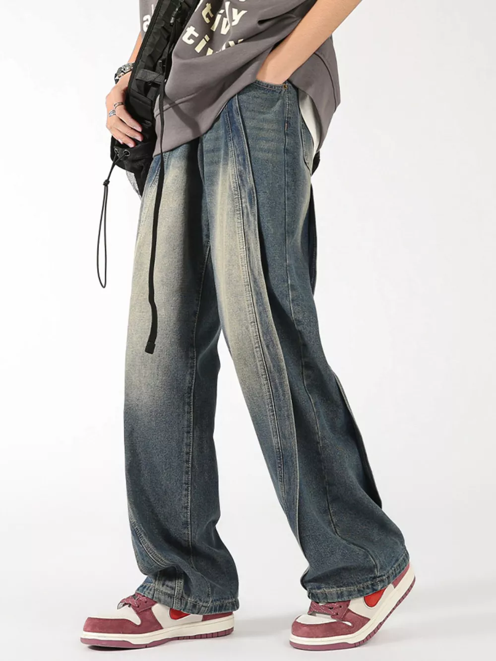 Men's Plus Size Washed Wide Leg Jeans