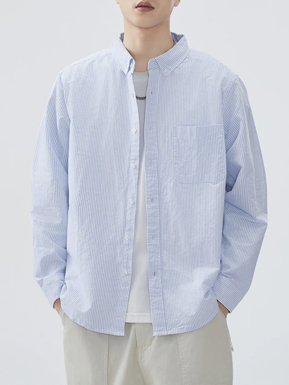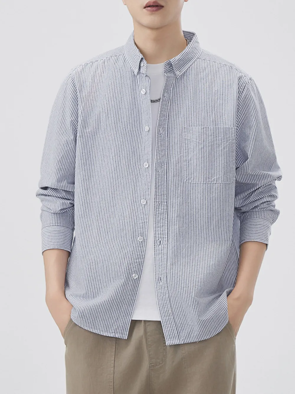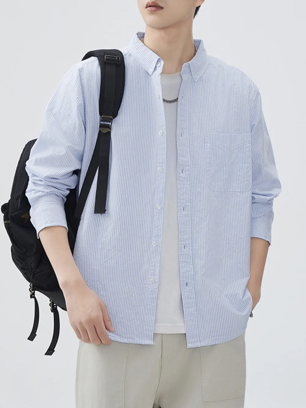 Men's Plus Size Striped Button Up Long Sleeve Shirt