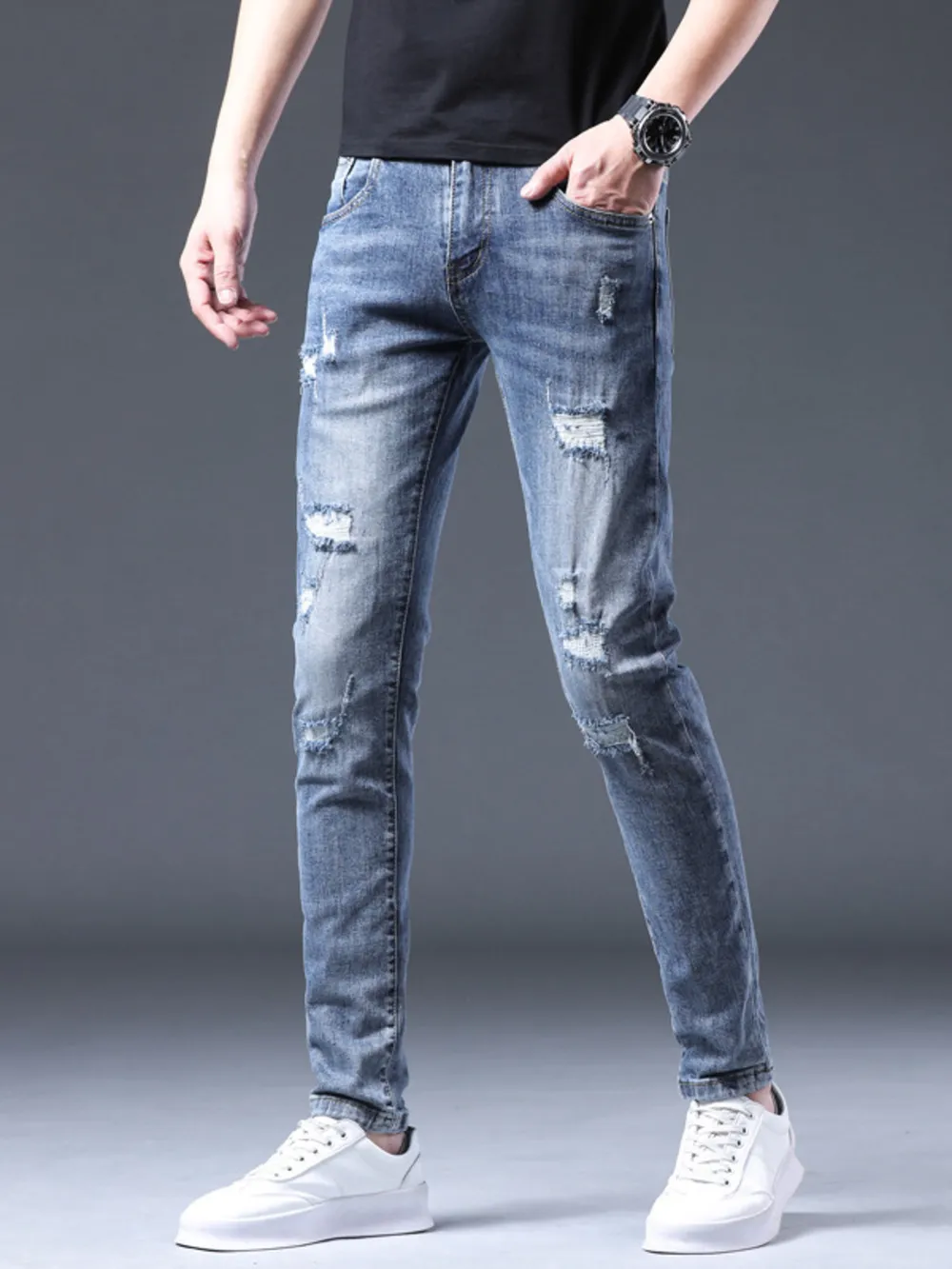 Men's Distressed Slim Fit Ripped Jeans