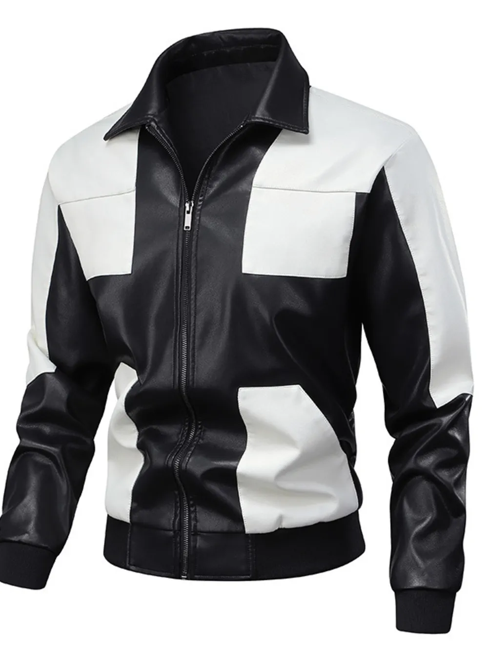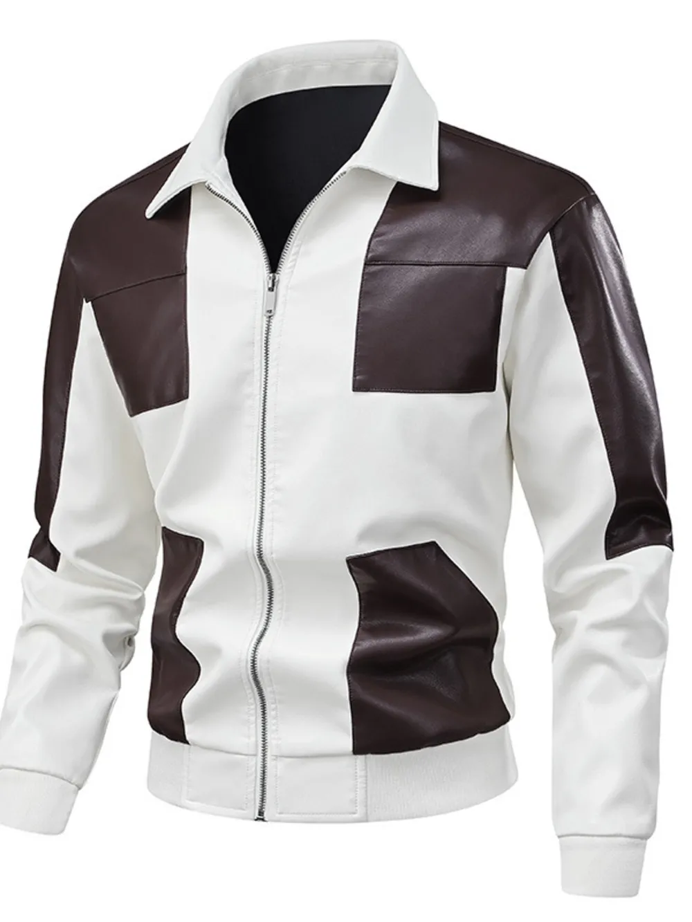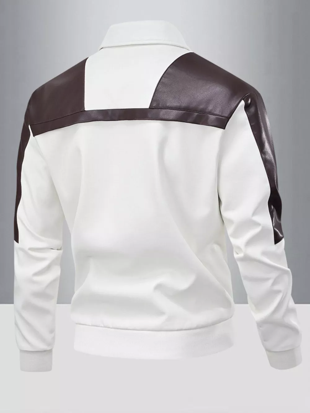Men's Two-Tone Leather Bomber Jacket with Zip Front