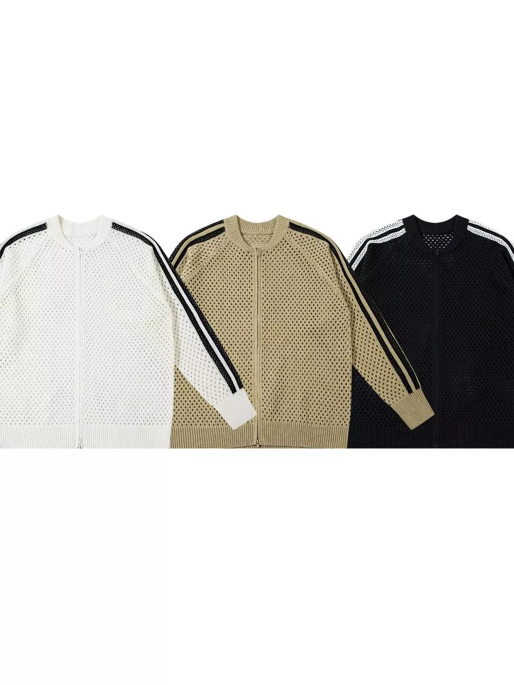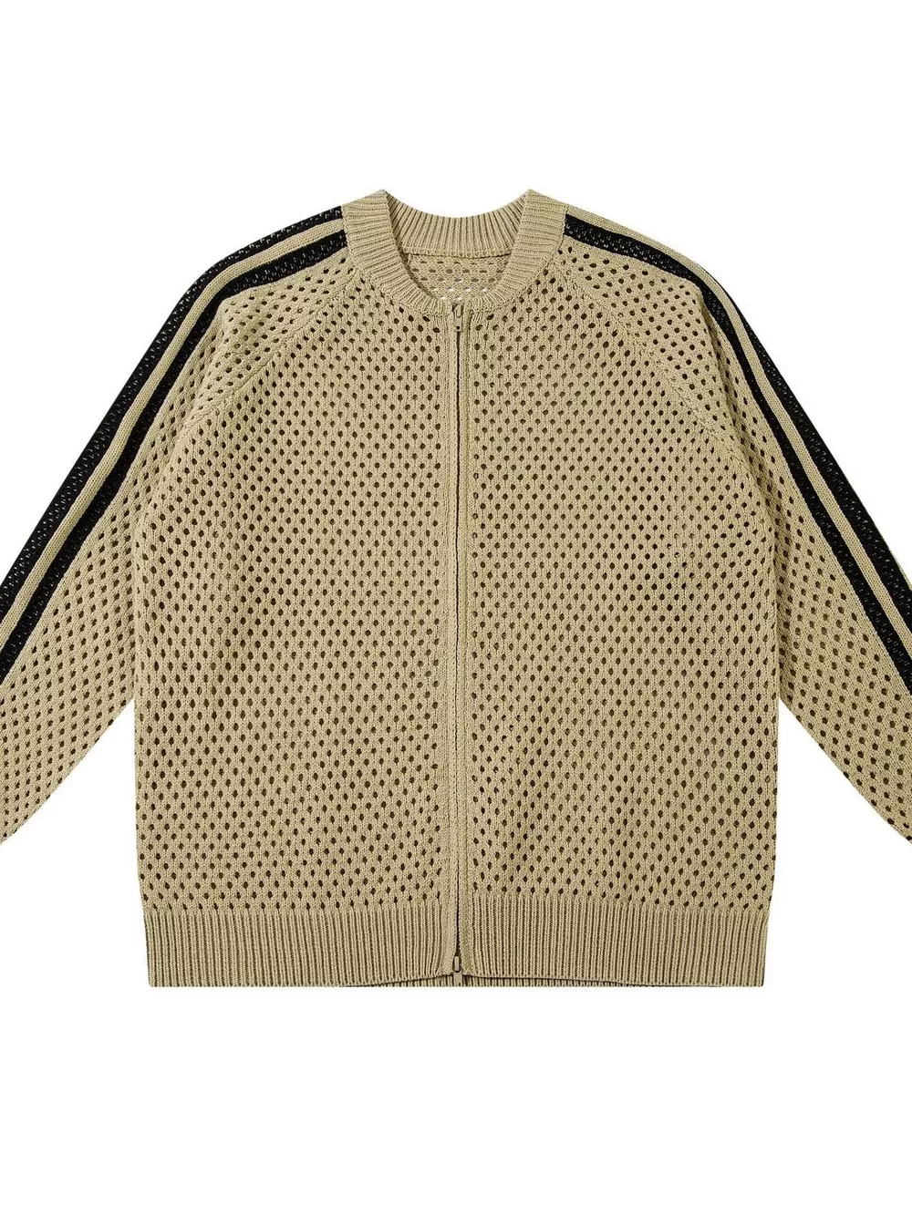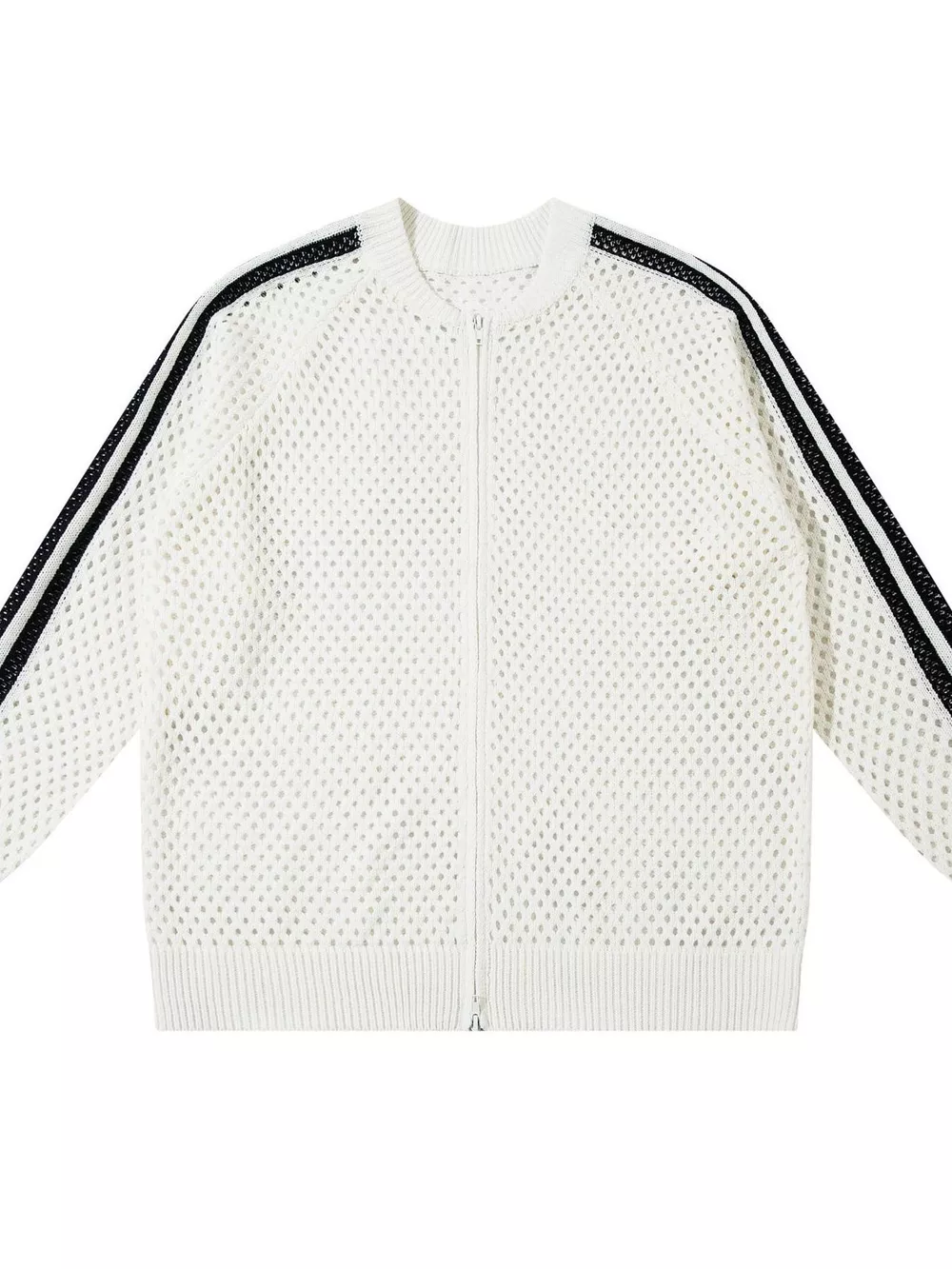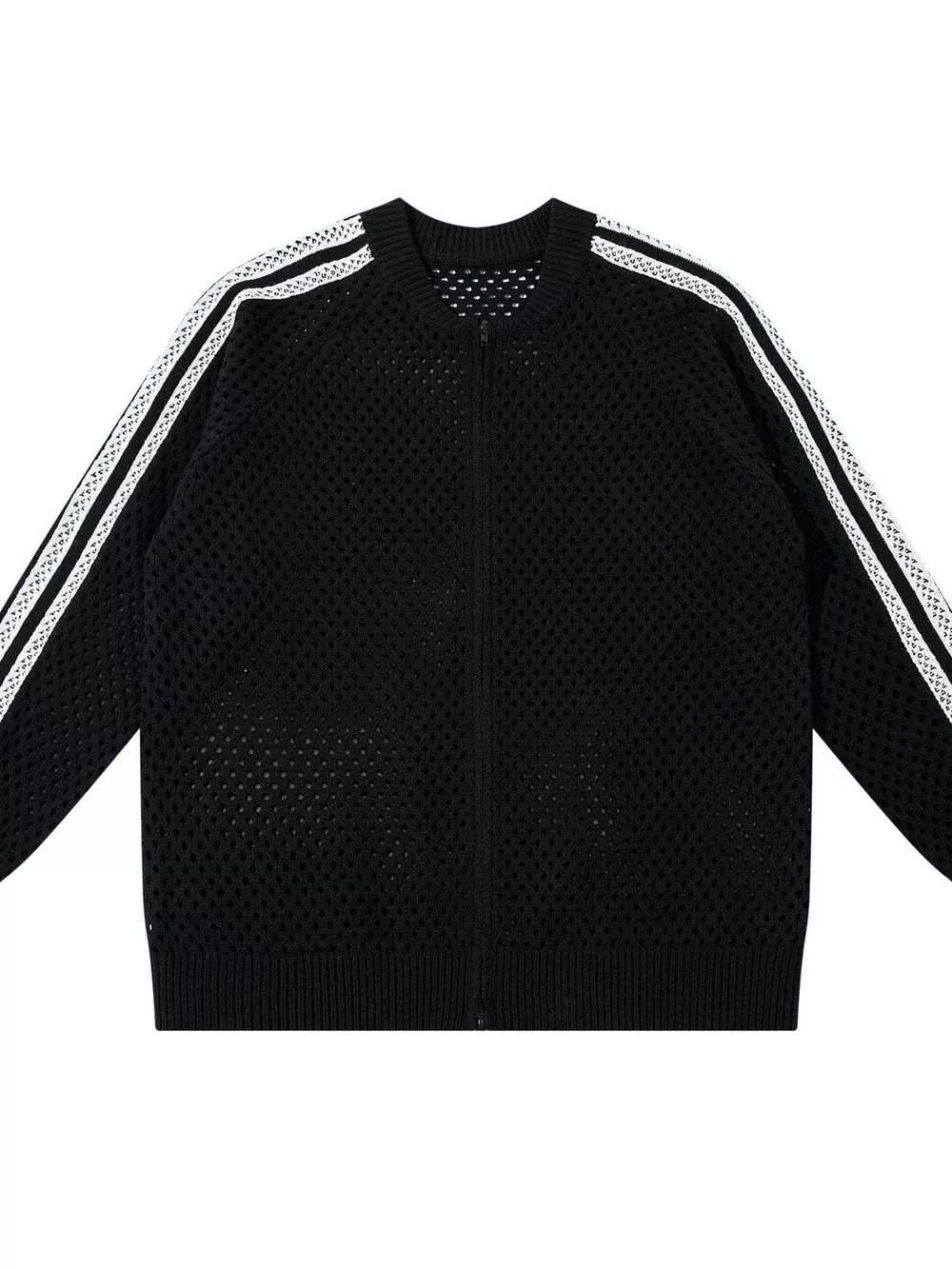 Men's Openwork Contrast Stripe Zip Up Long Sleeve Jacket