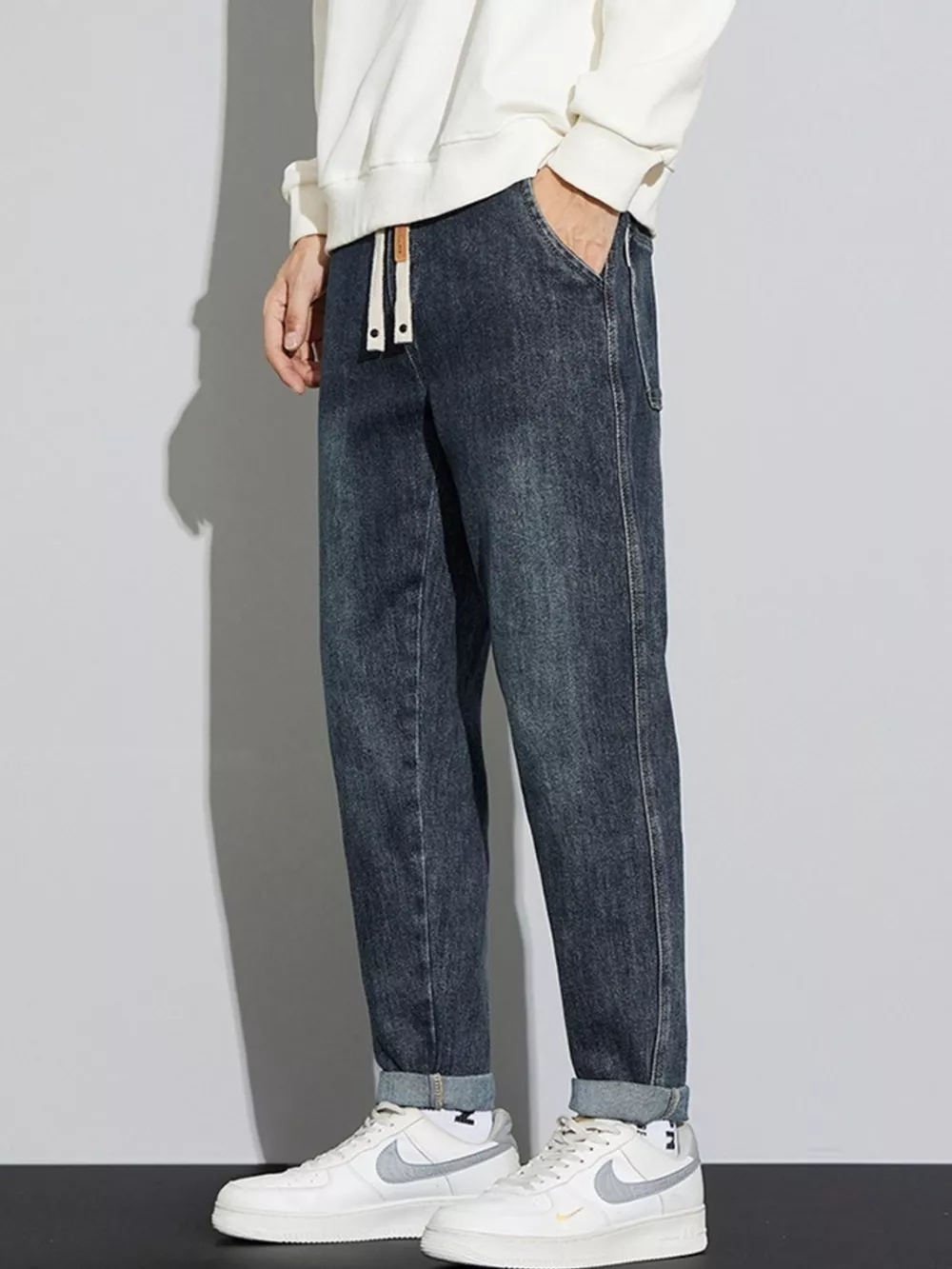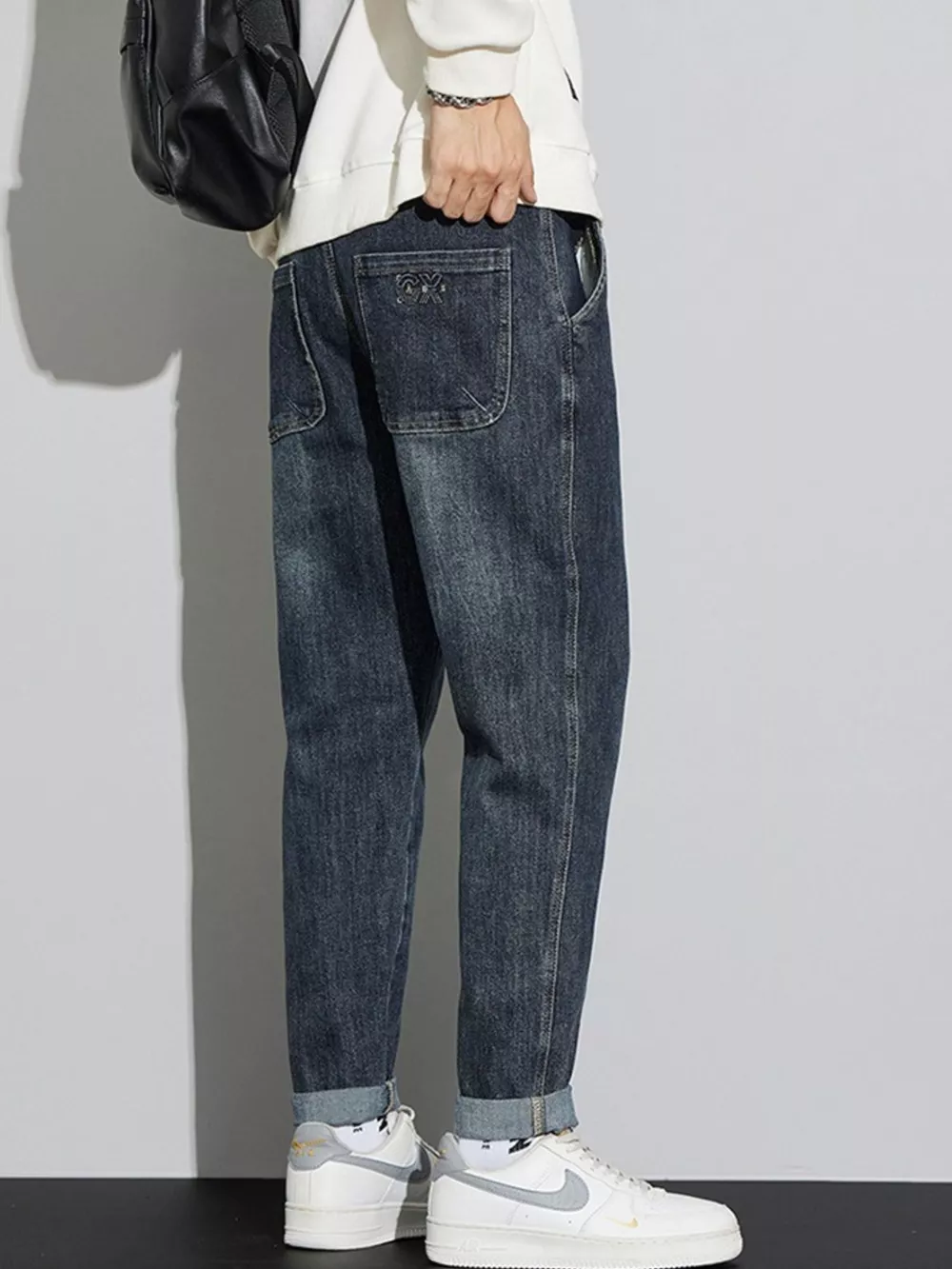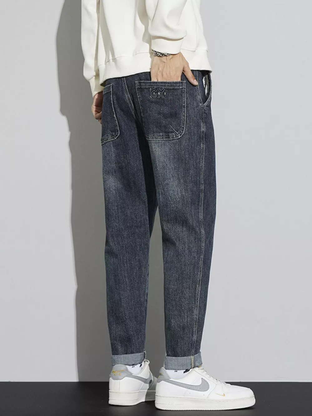 Men's Washed Relaxed Fit Cuffed Jeans