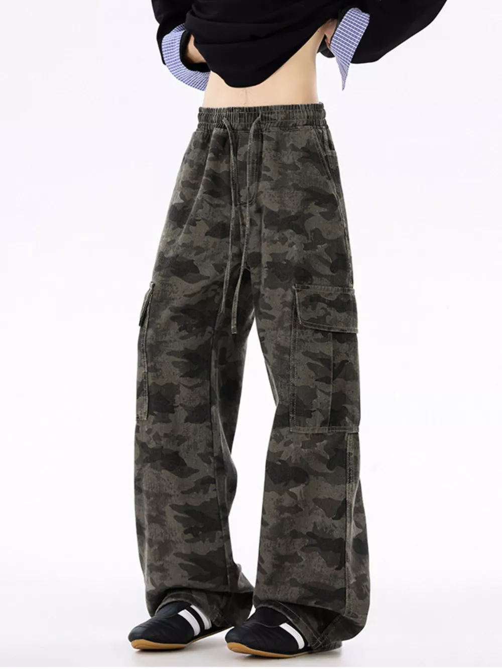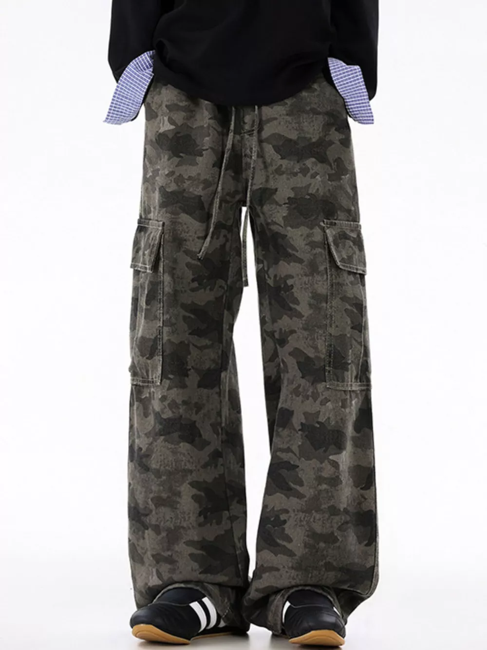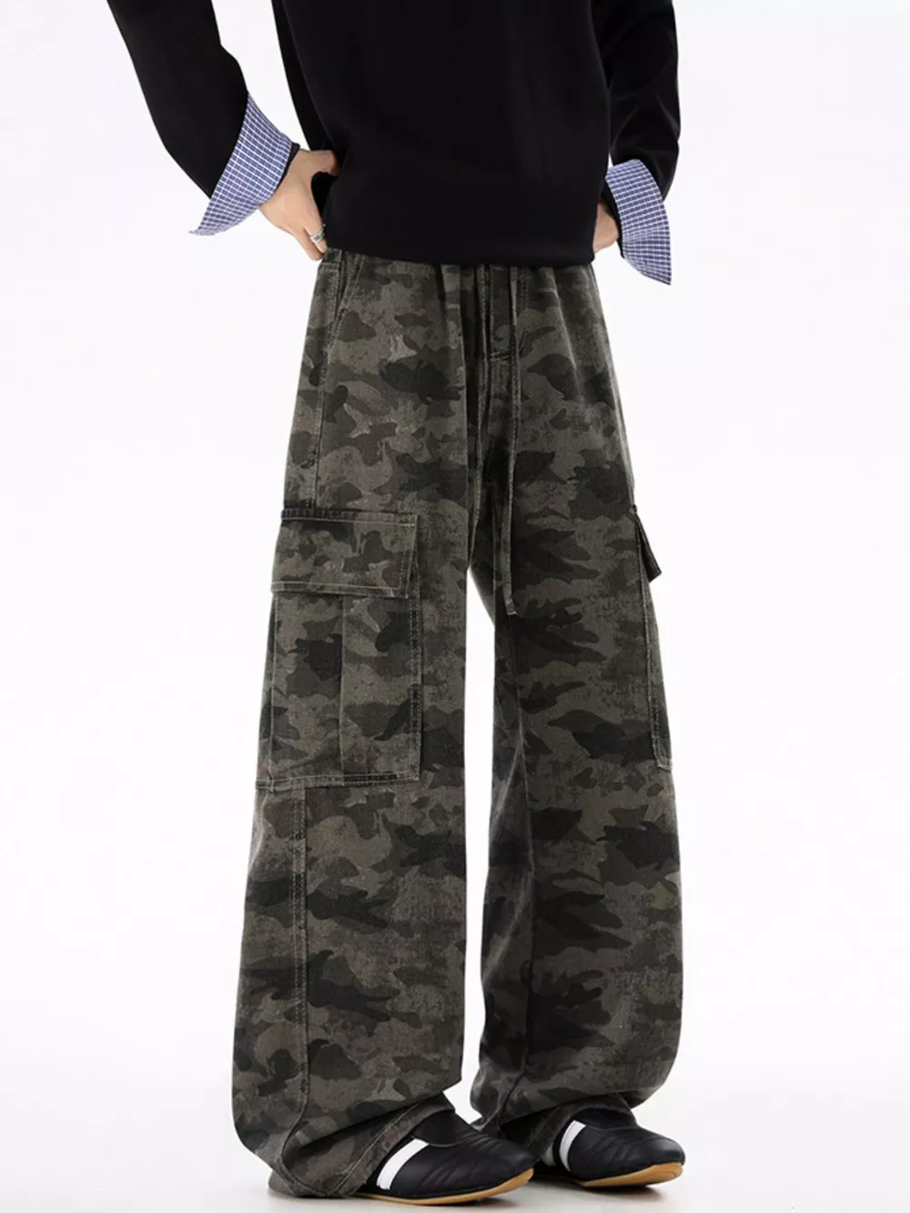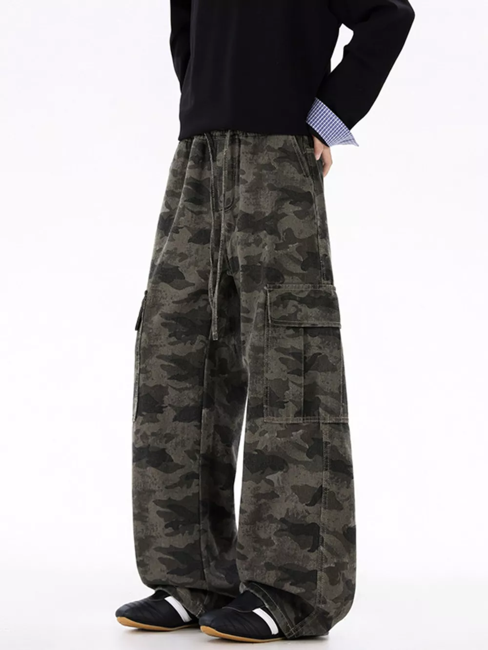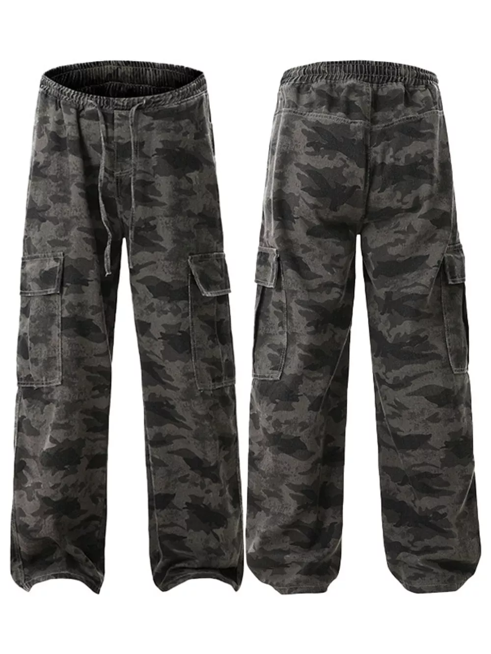 Men's Plus Size Drawstring Camouflage Wide Leg Pants