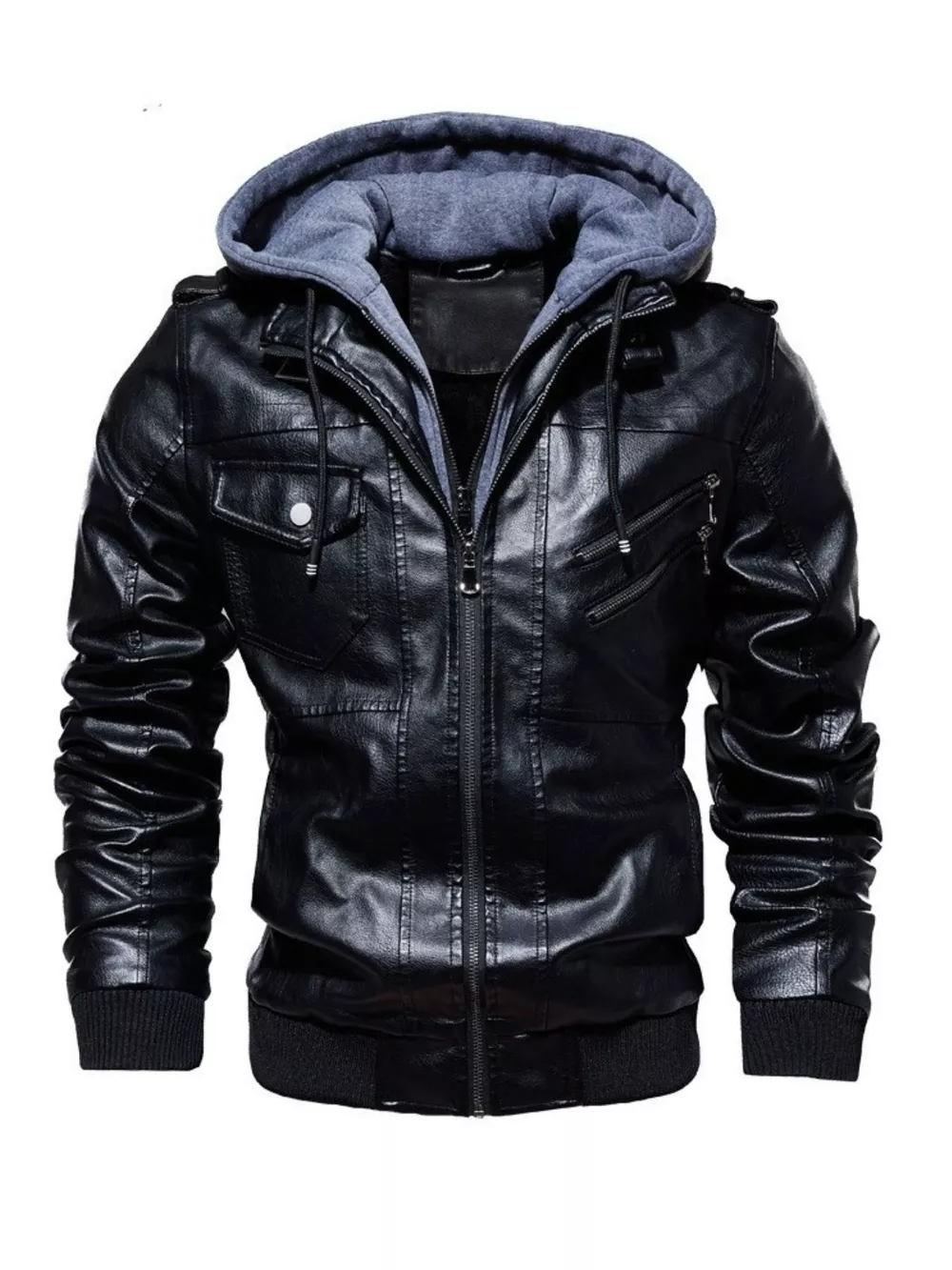 Men's Full Size Zip Up Drawstring Hooded Jacket Plus Size