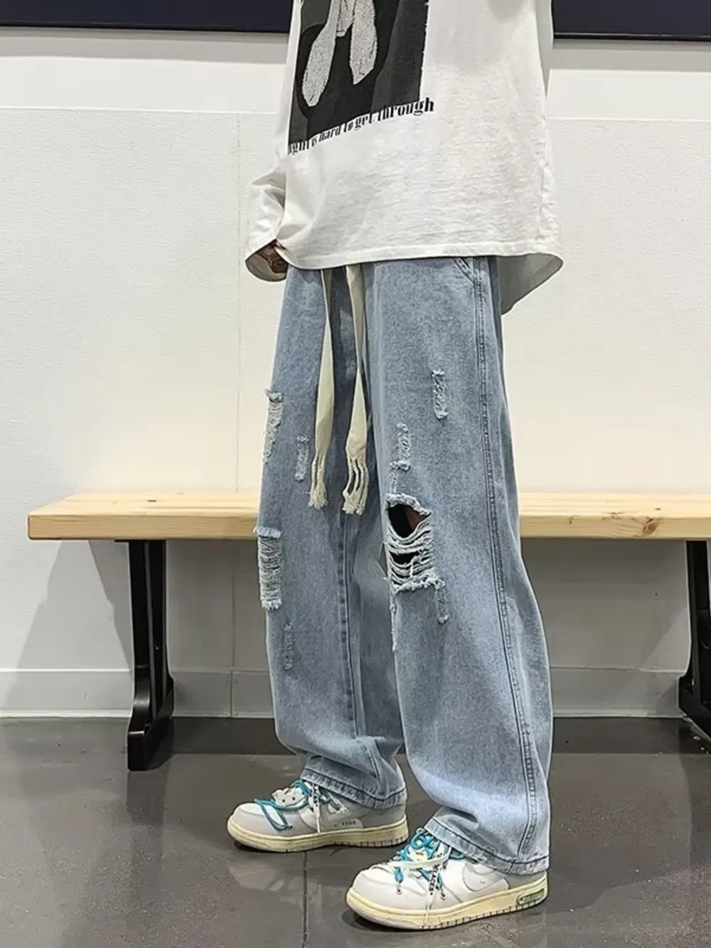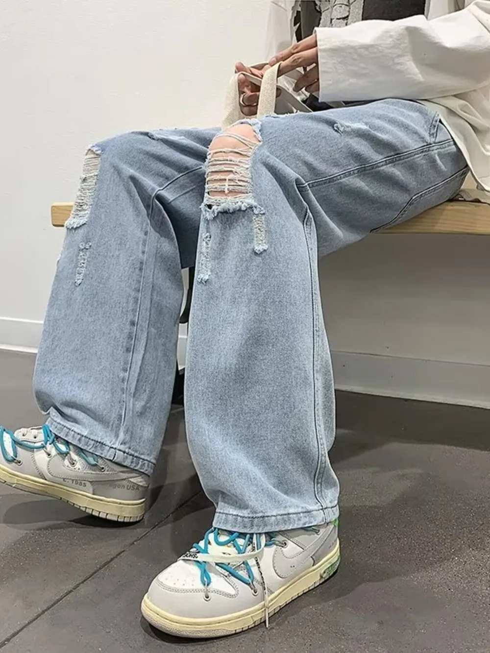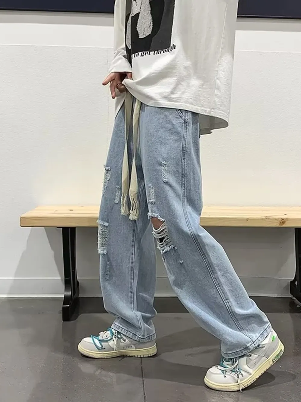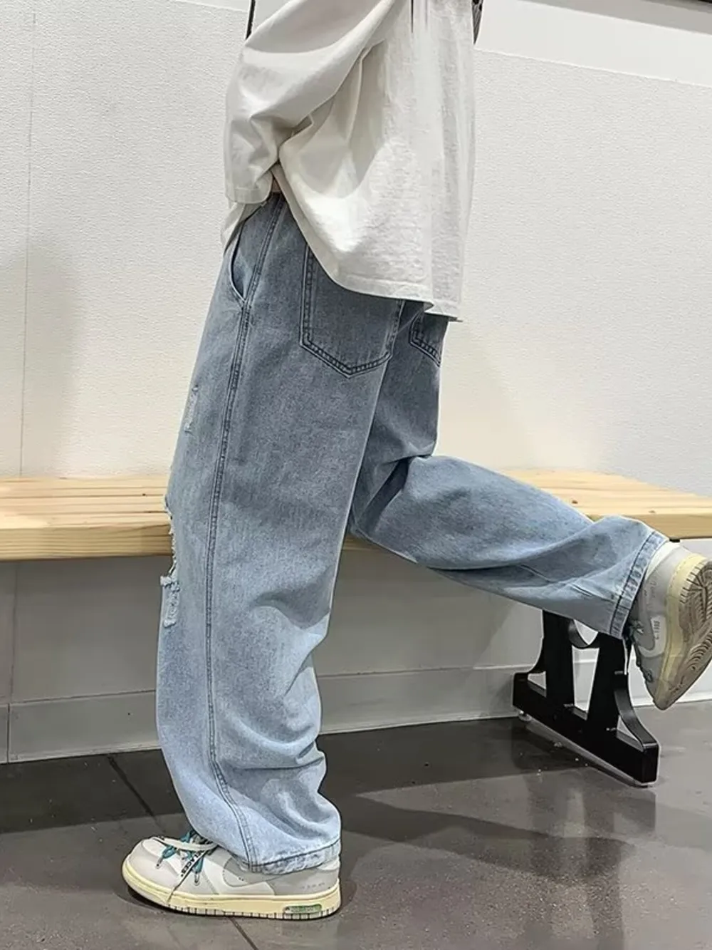 Men's Full Size Distressed Wide Leg Jeans Plus Size