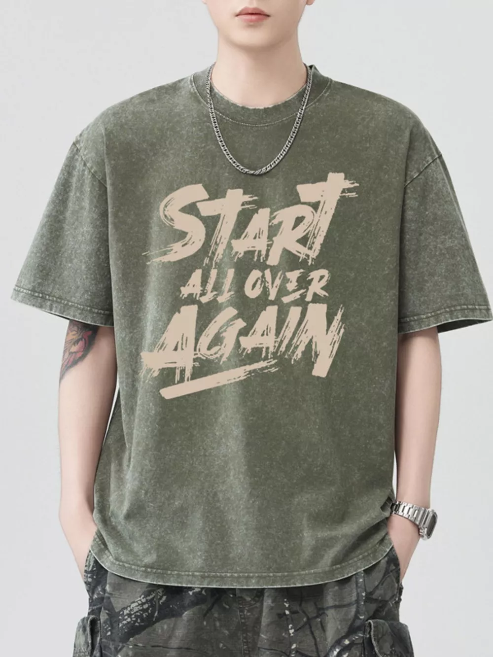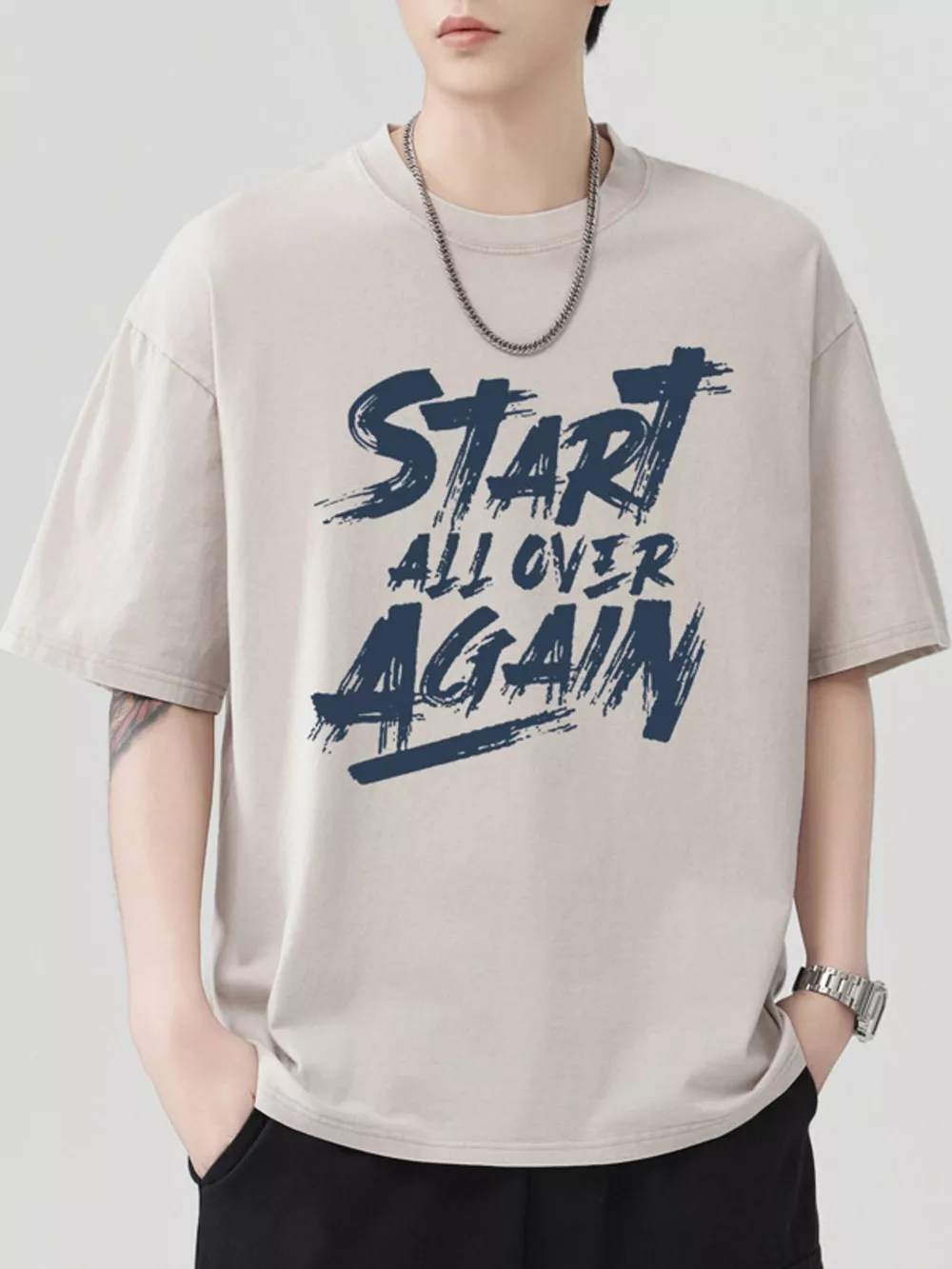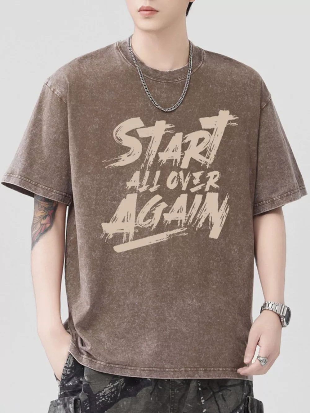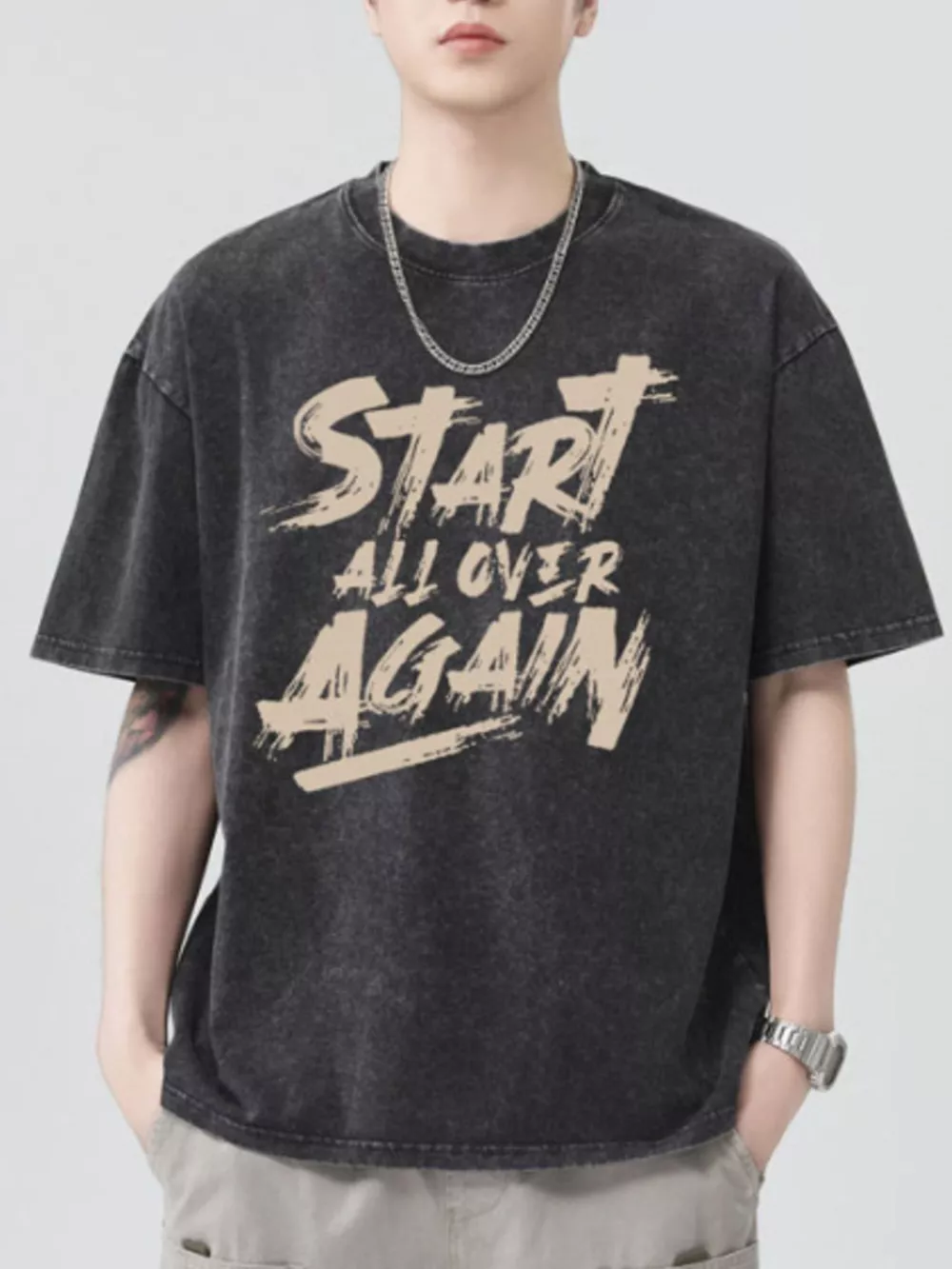 Men's Letter Round Neck Half Sleeve T-Shirt