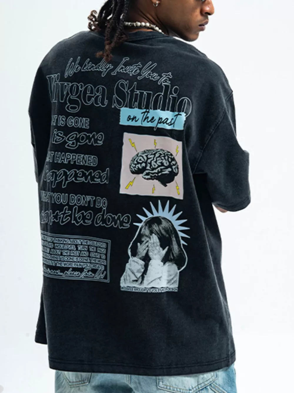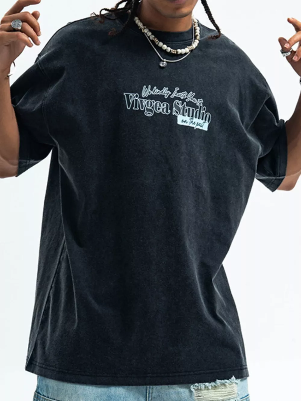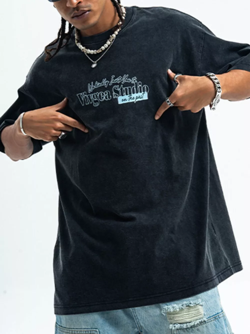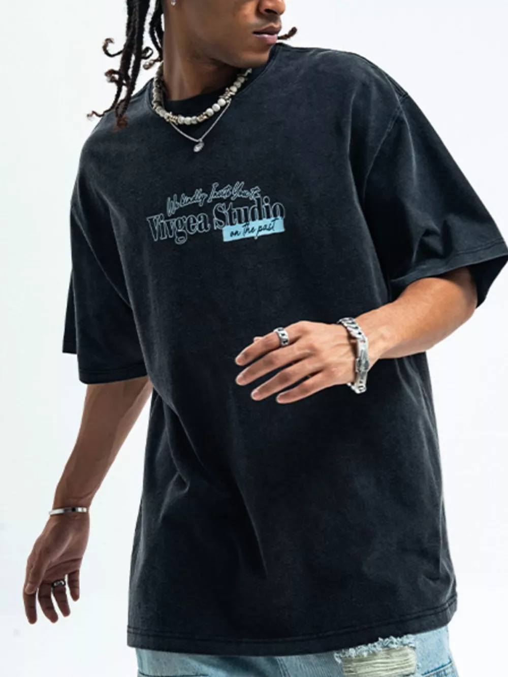 Men's Letter Round Neck Short Sleeve T-Shirt