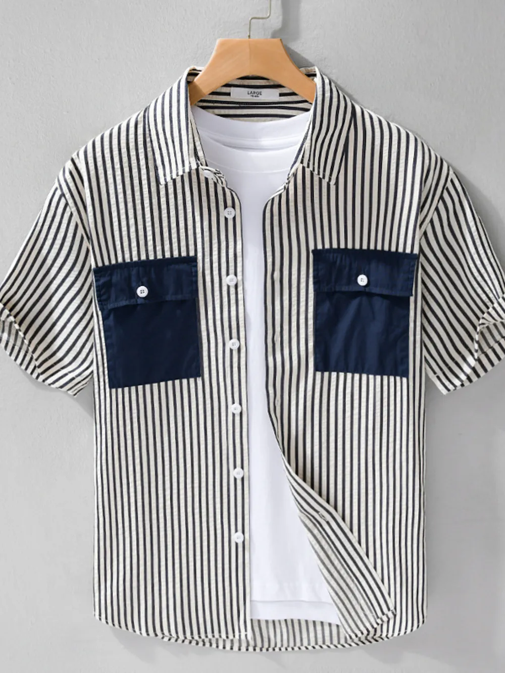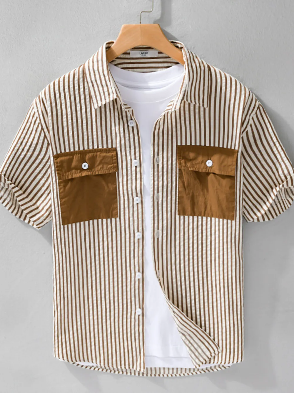 Men's Plus Size Striped Button Up Short Sleeve Shirt