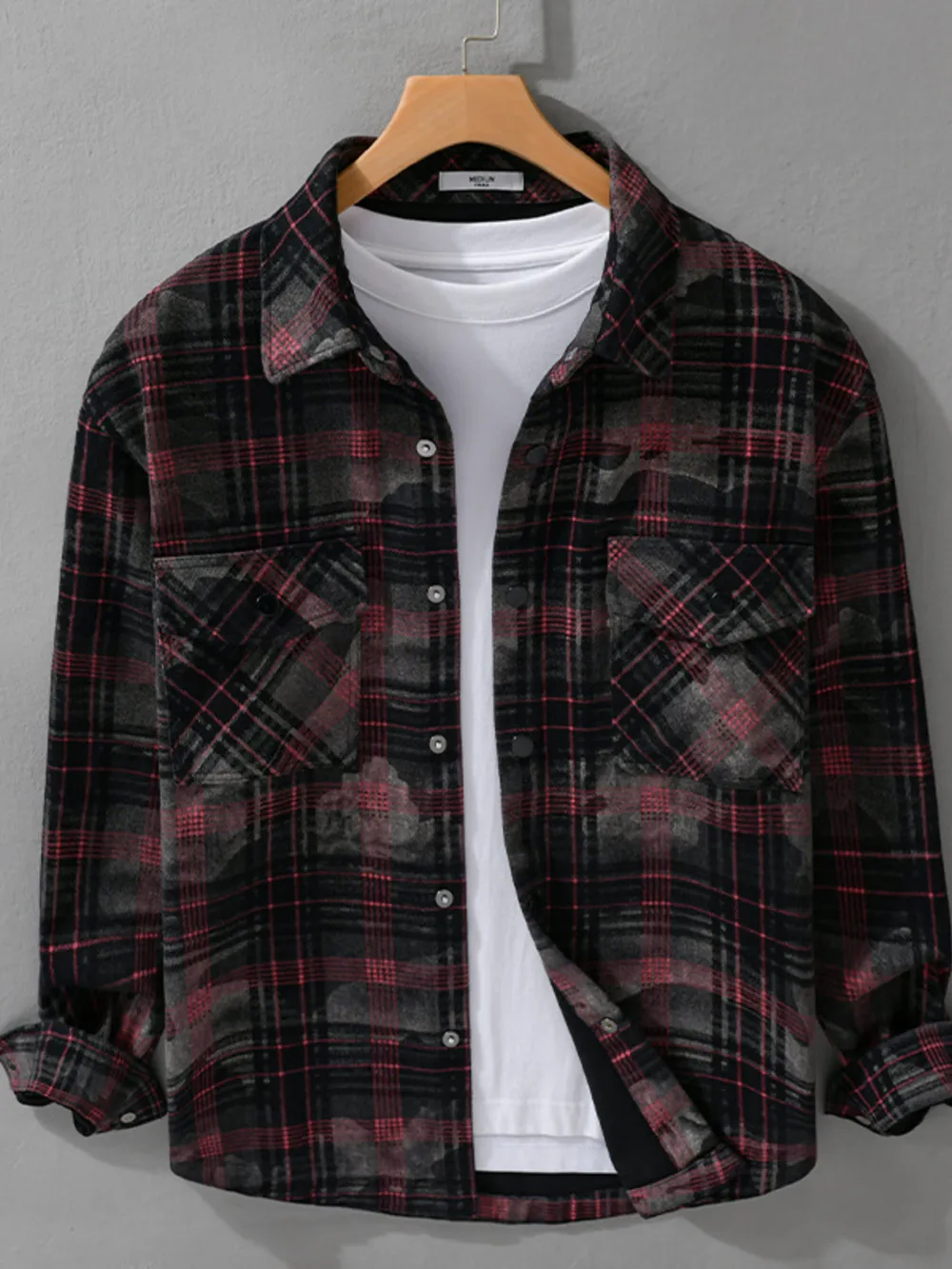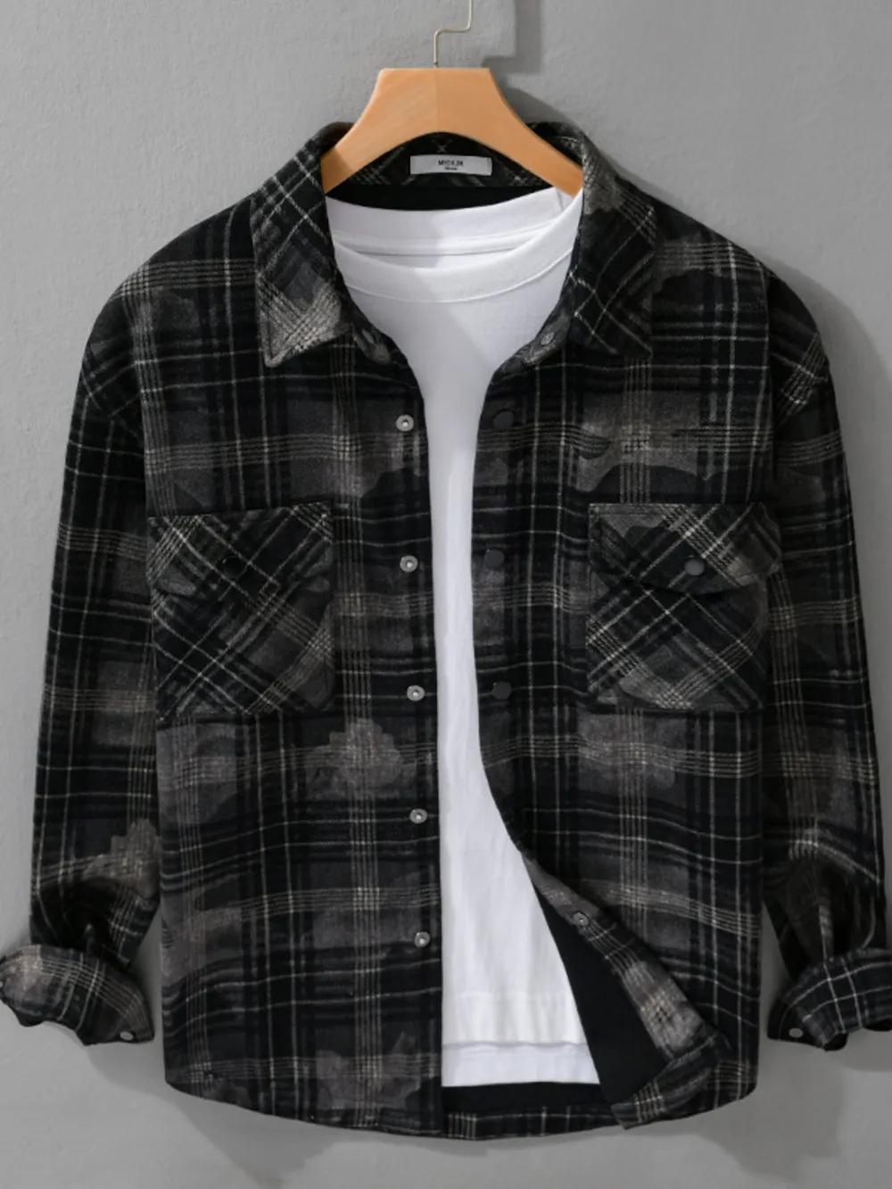 Men's Plus Size Plaid Button Up Long Sleeve Shirt