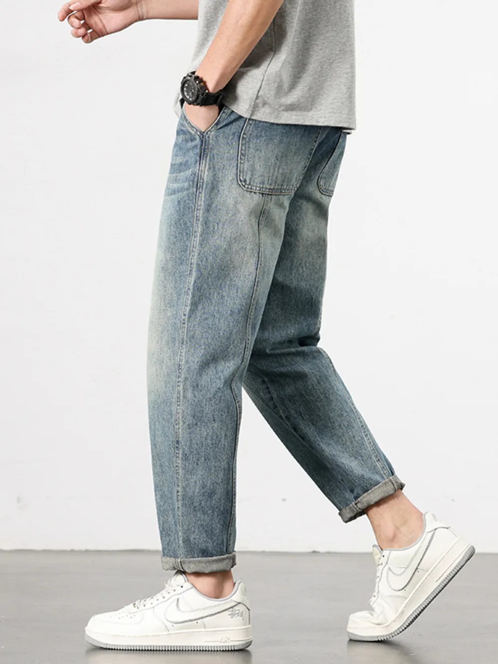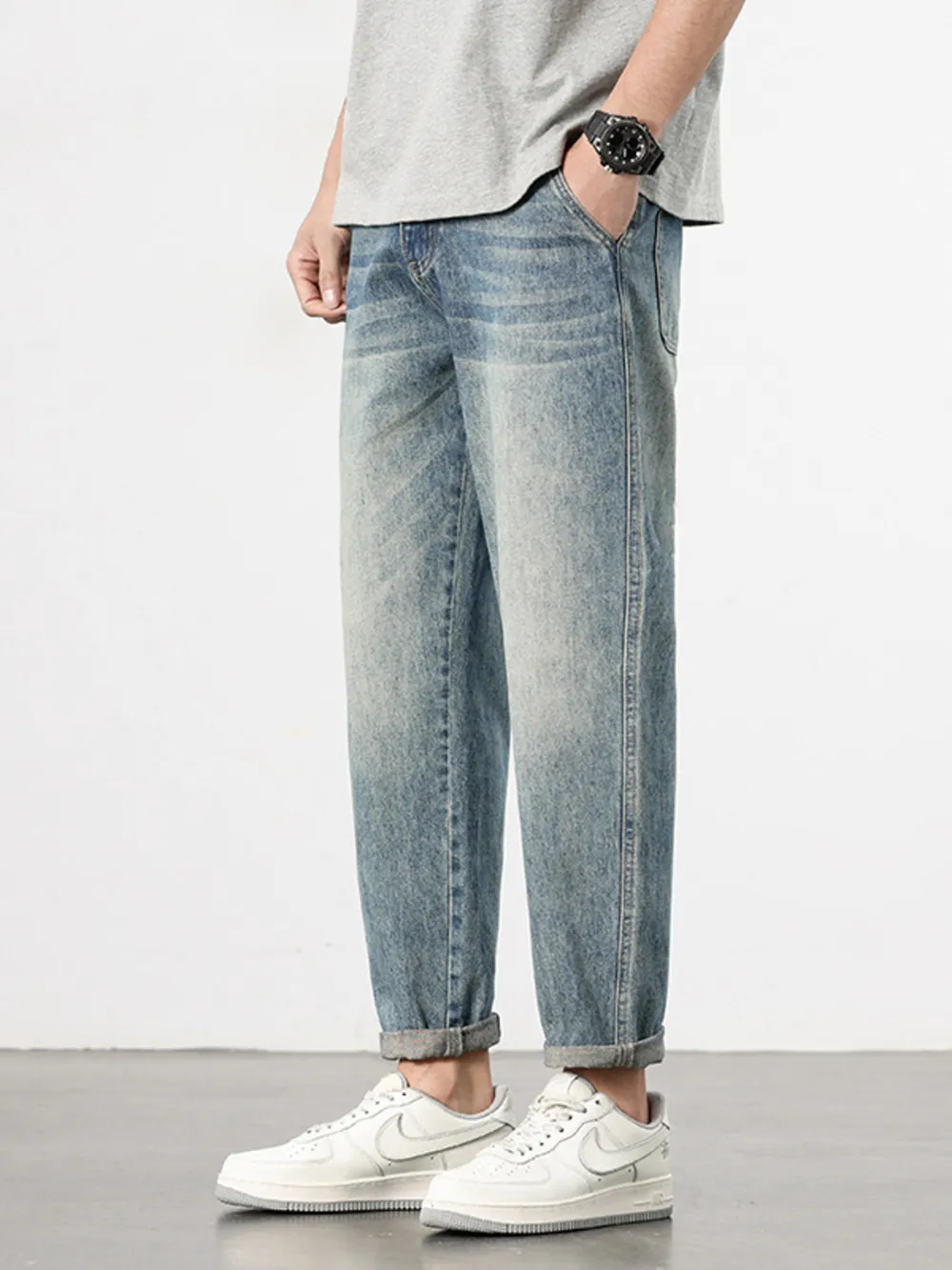 Men's Loose Fit Washed Jeans