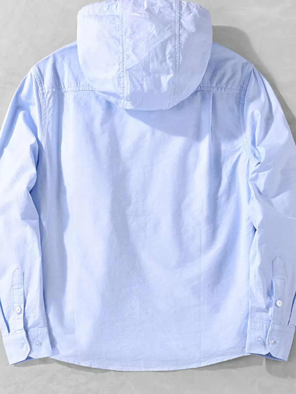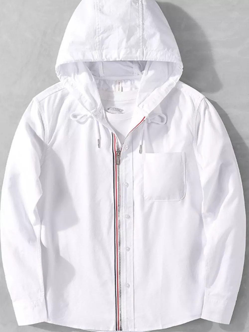 Men's Plus Size Striped Trim Hooded Casual Shacket