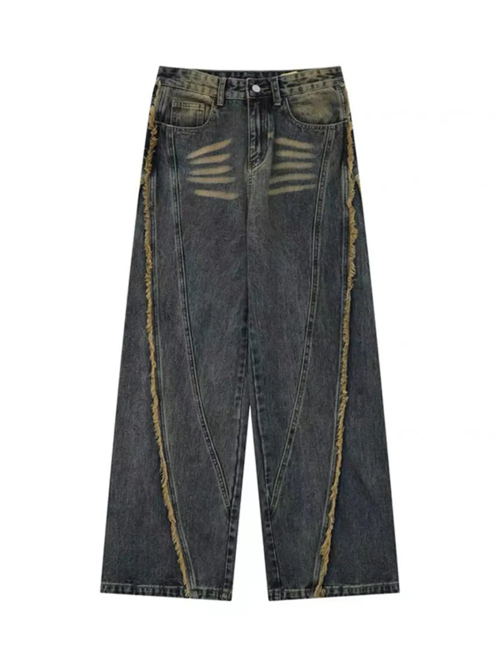 Men's Plus Size Raw Hem Wide Leg Jeans