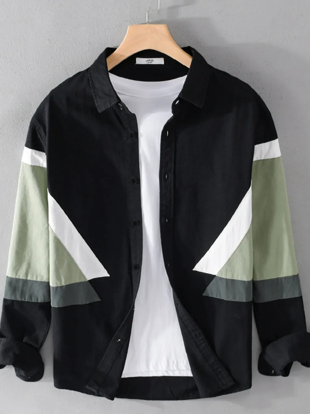 Men's Plus Size Contrast Button Up Long Sleeve Shirt