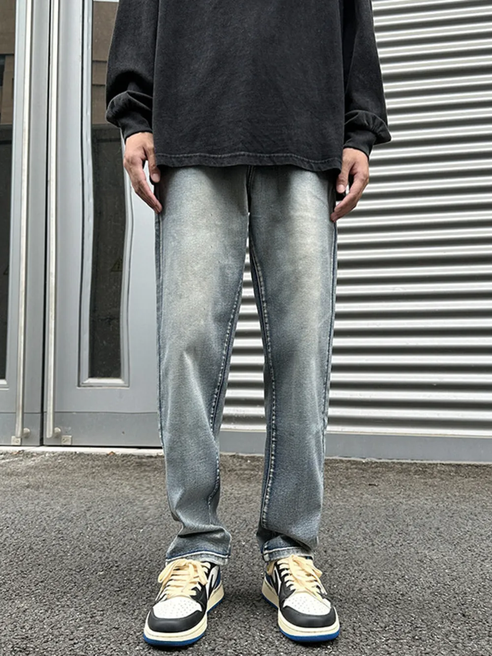 Men's Full Size Vintage Washed Straight Leg Relaxed Fit Jeans Plus Size