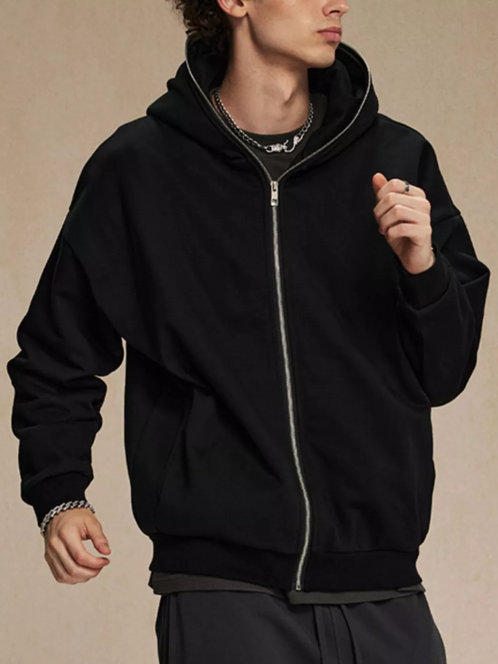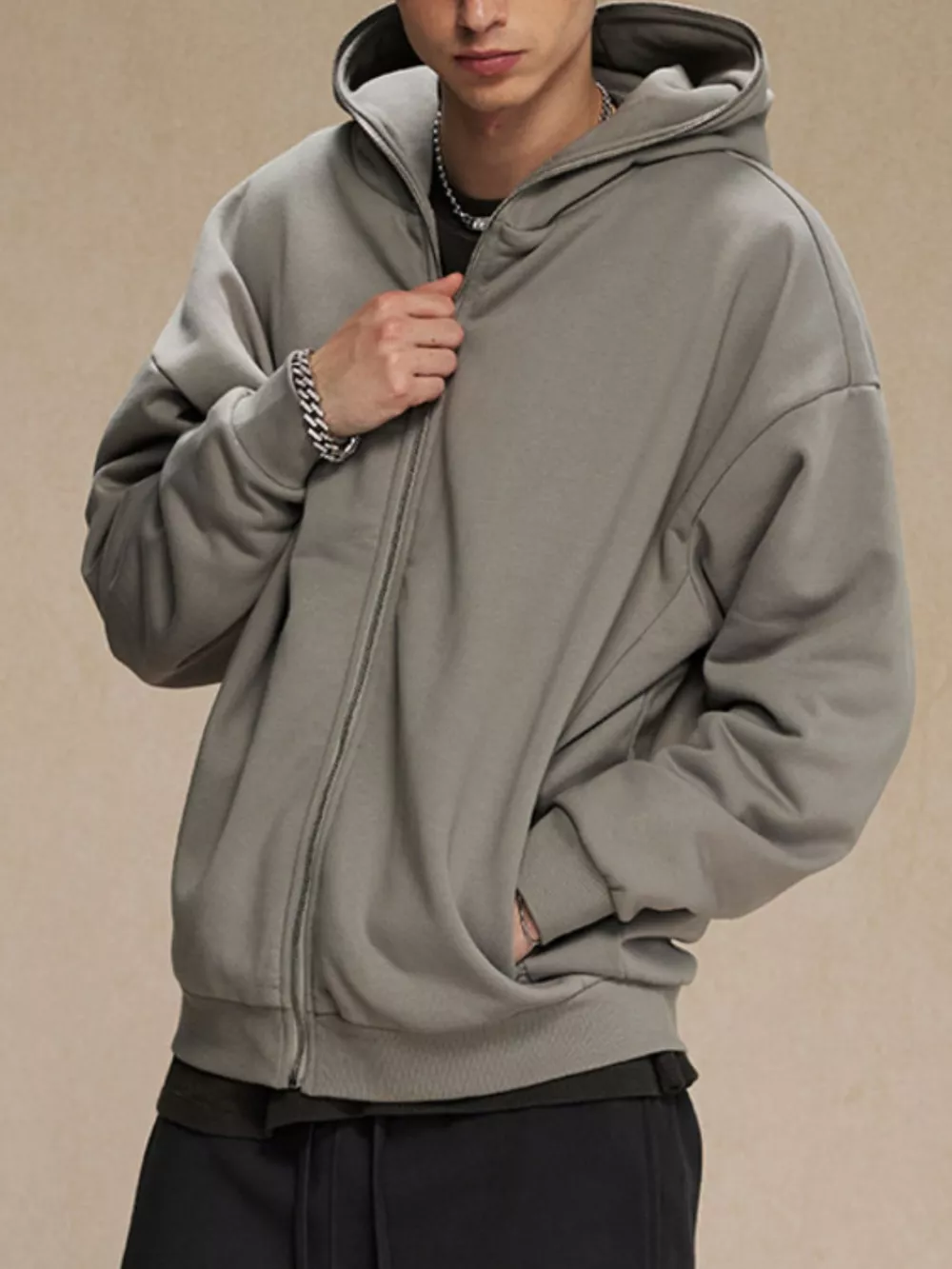 Men's Oversized Zip Up Long Sleeve Hoodie