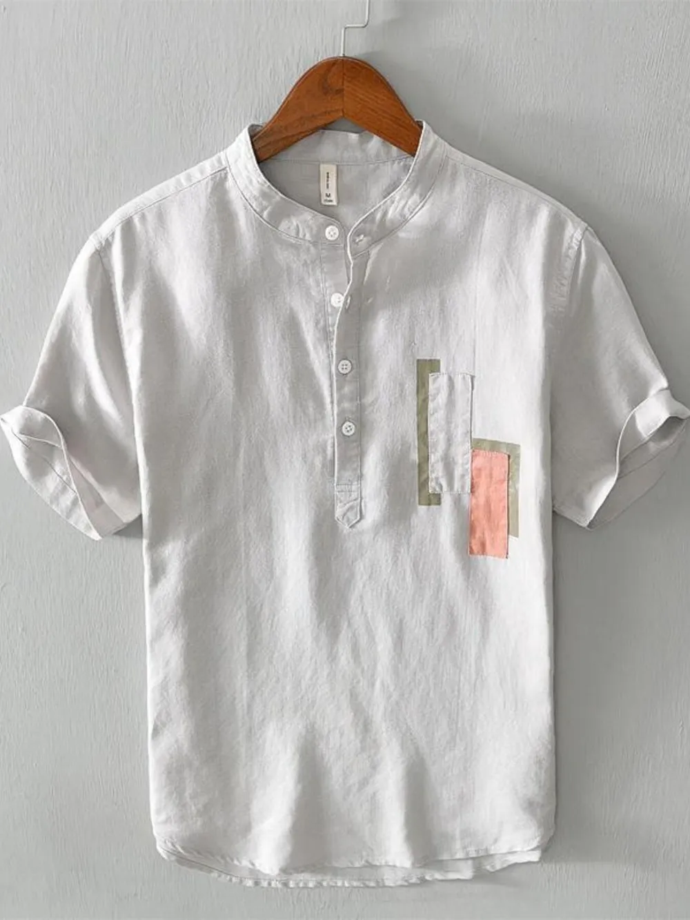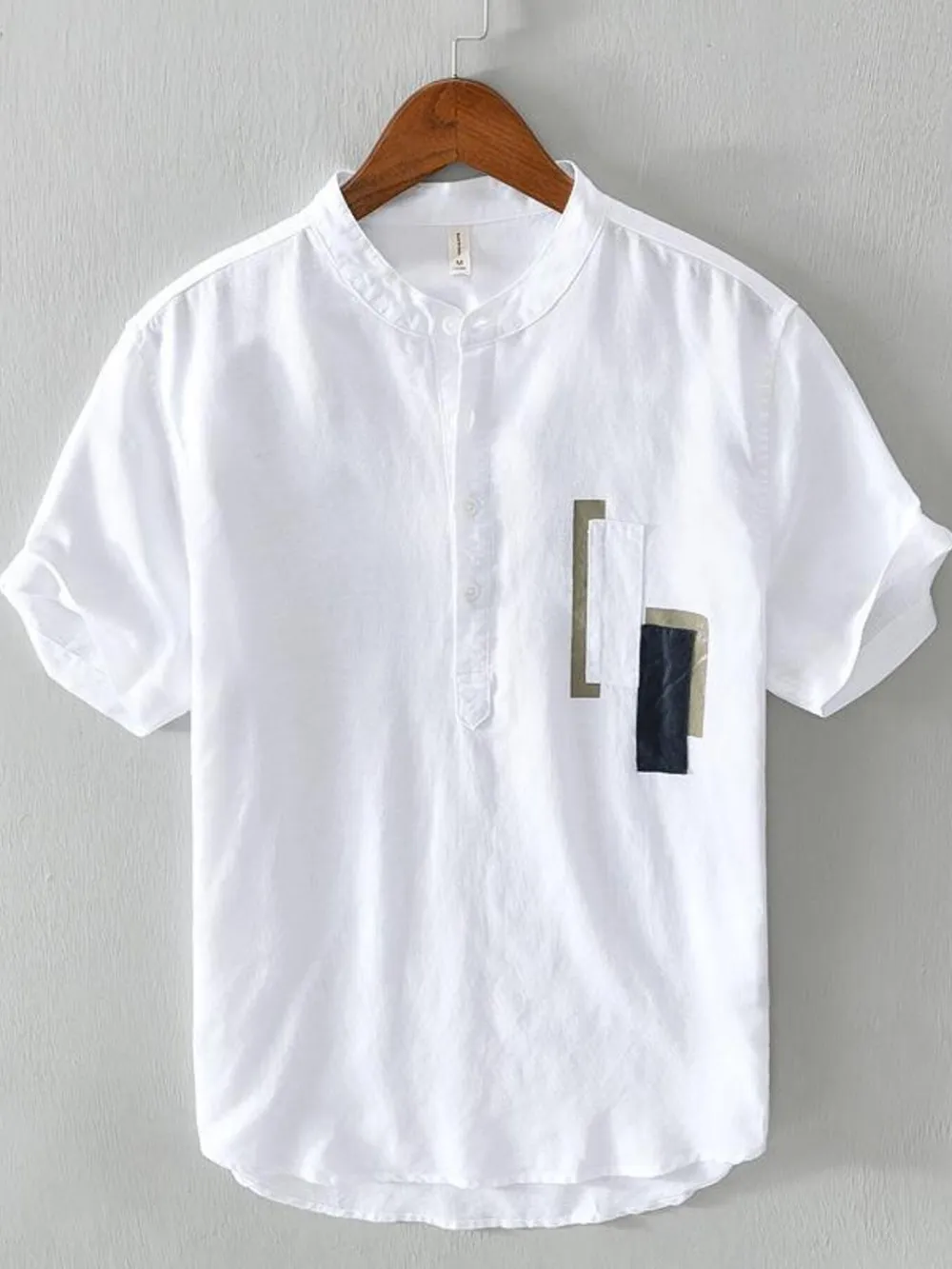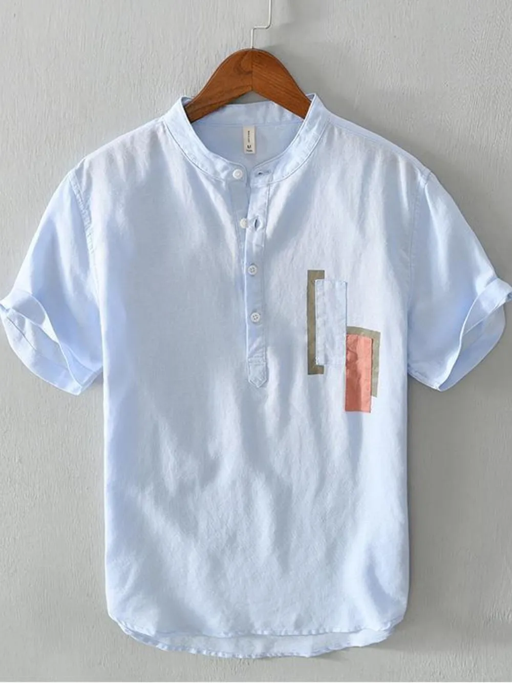 Men's Plus Size Geometric Contrast Half Button T-Shirt