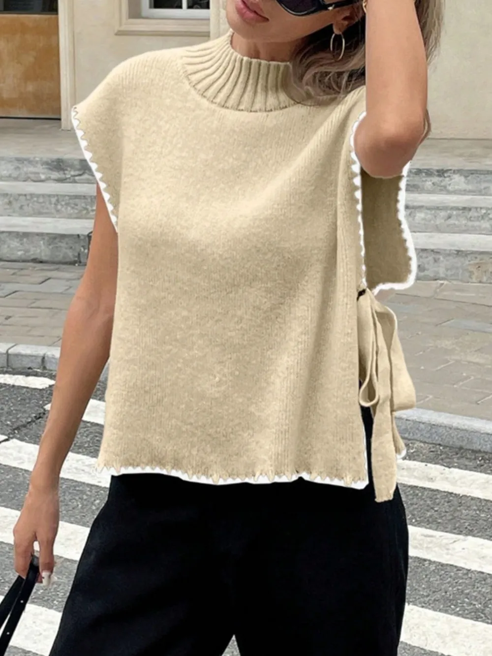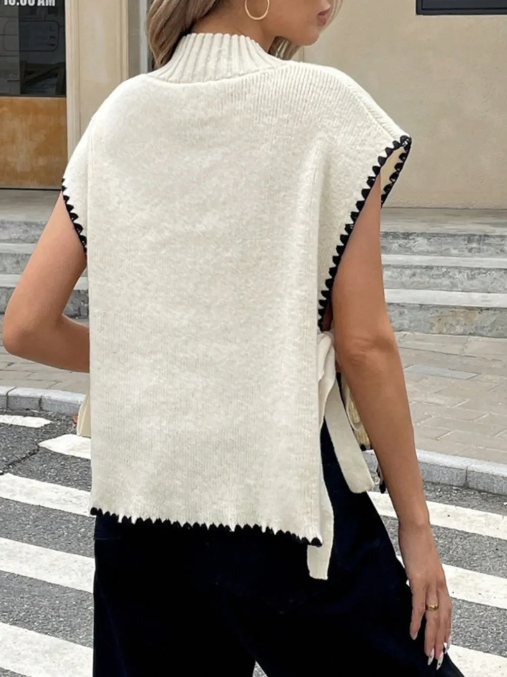 Ribbed Turtleneck Sweater Vest with Contrast Trim