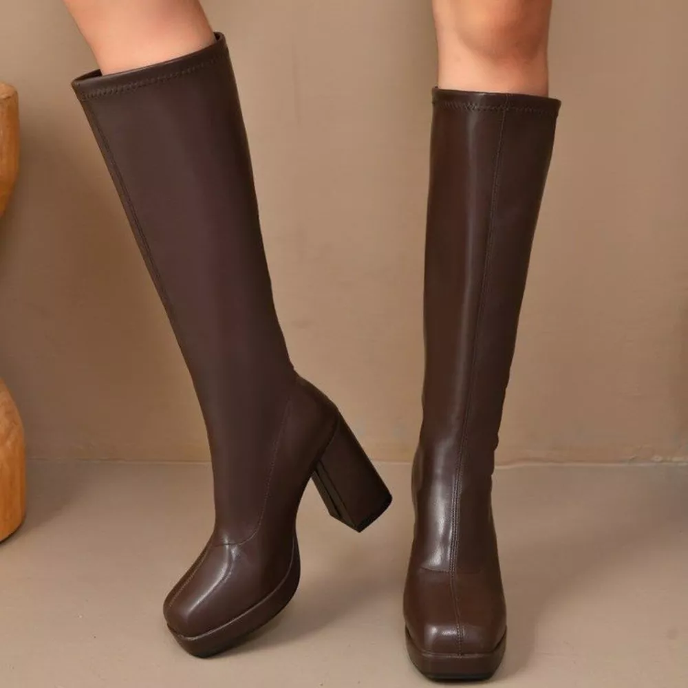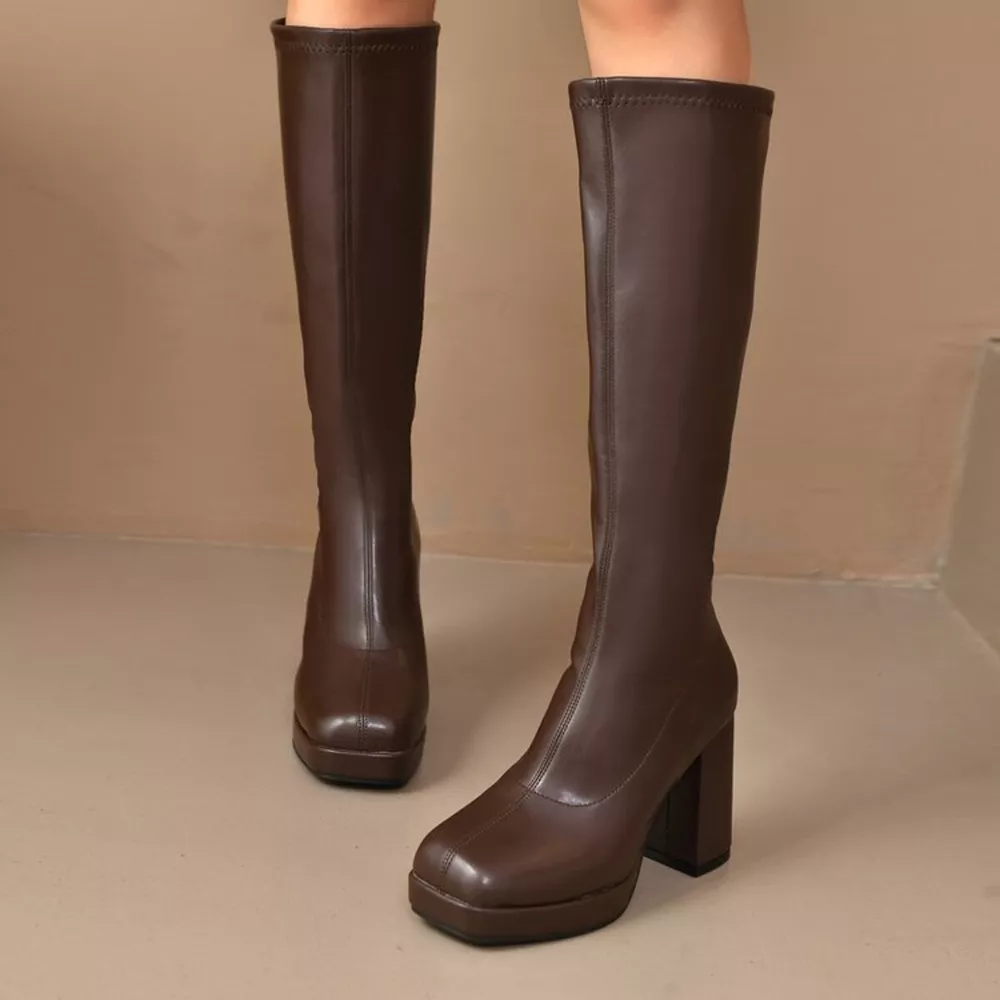 Square Toe Block Heels Boots