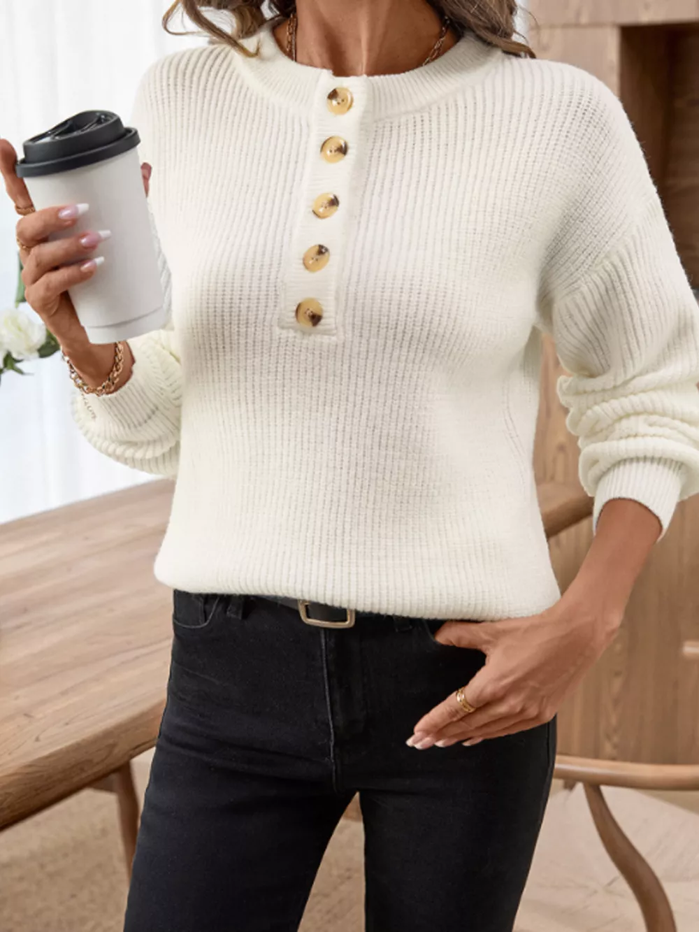 Button Detail Long Sleeve Sweater