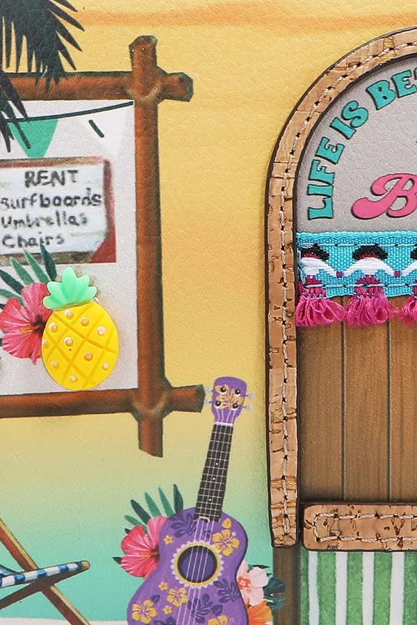 Turn up the sunshine with our Sun & Sand Handbag, your vacay-ready bestie bursting with island charm, tropical palms, cozy hammocks, and all the dreamy beach vibes to brighten every adventure!.