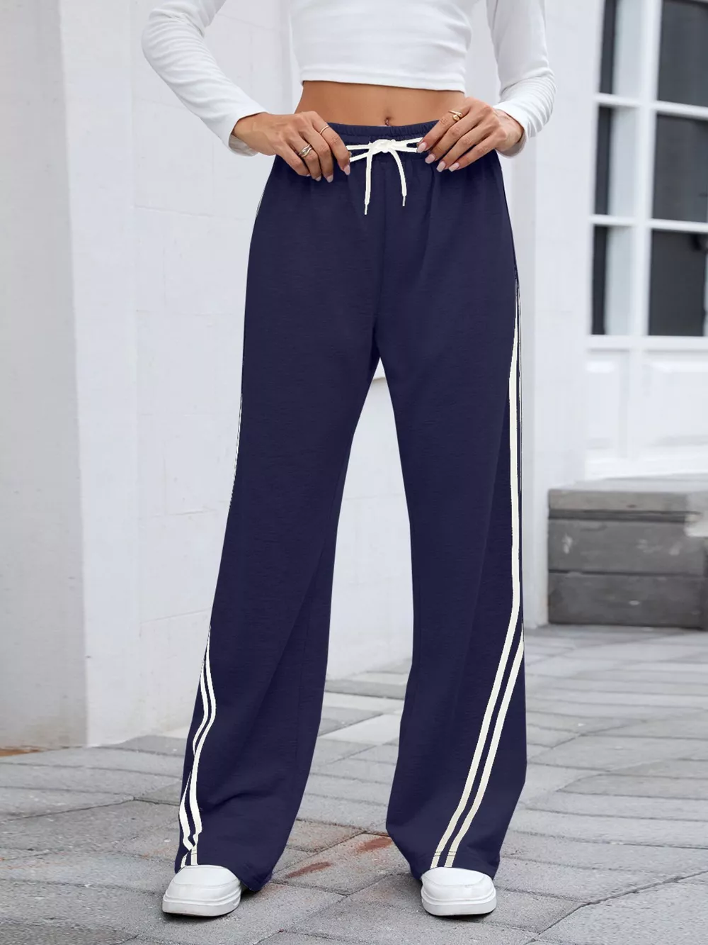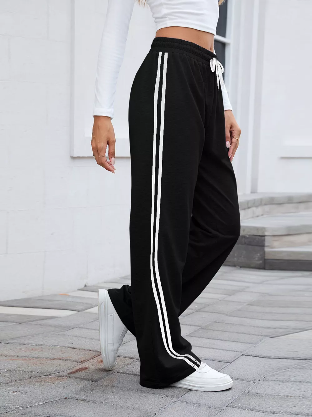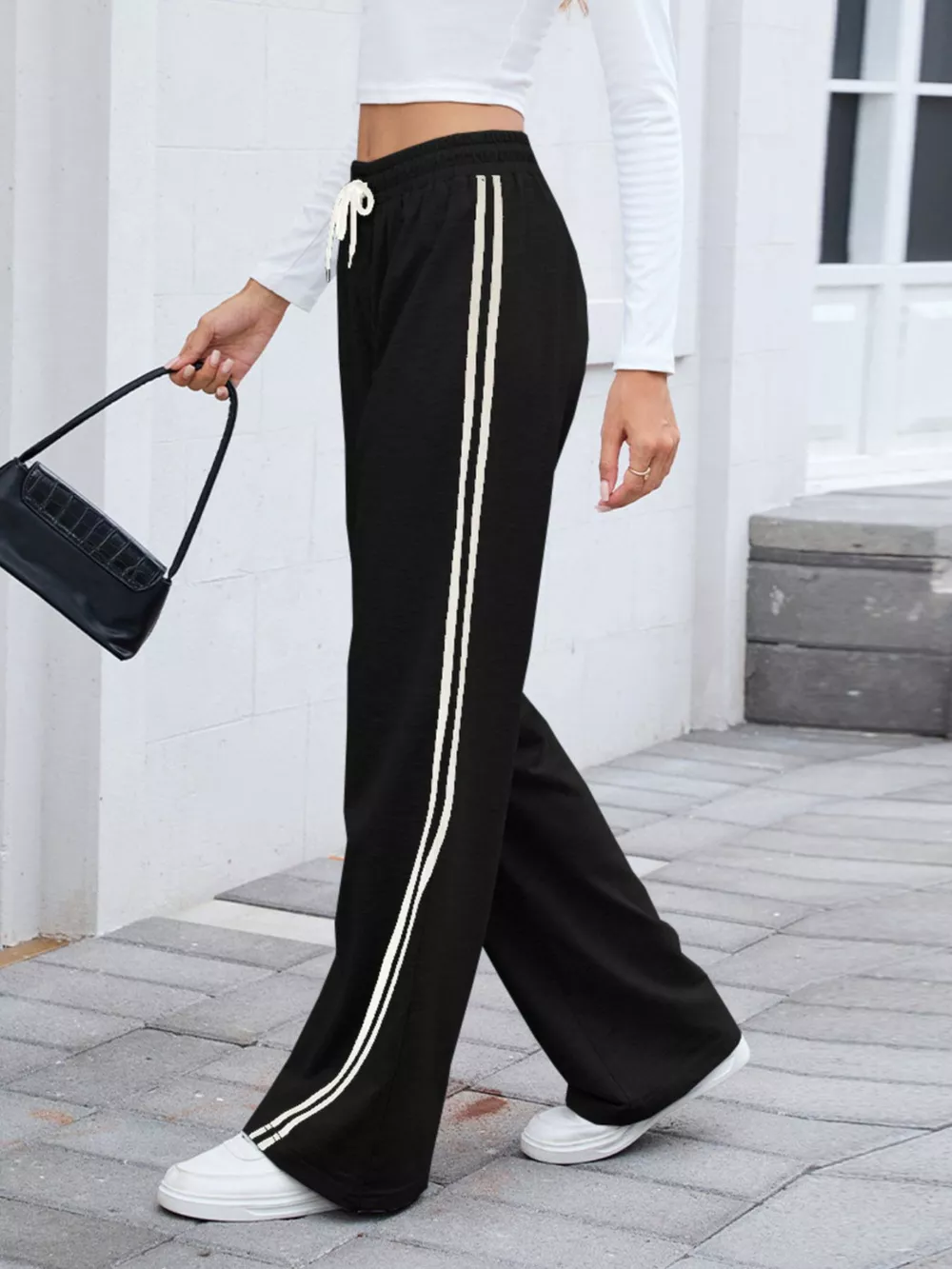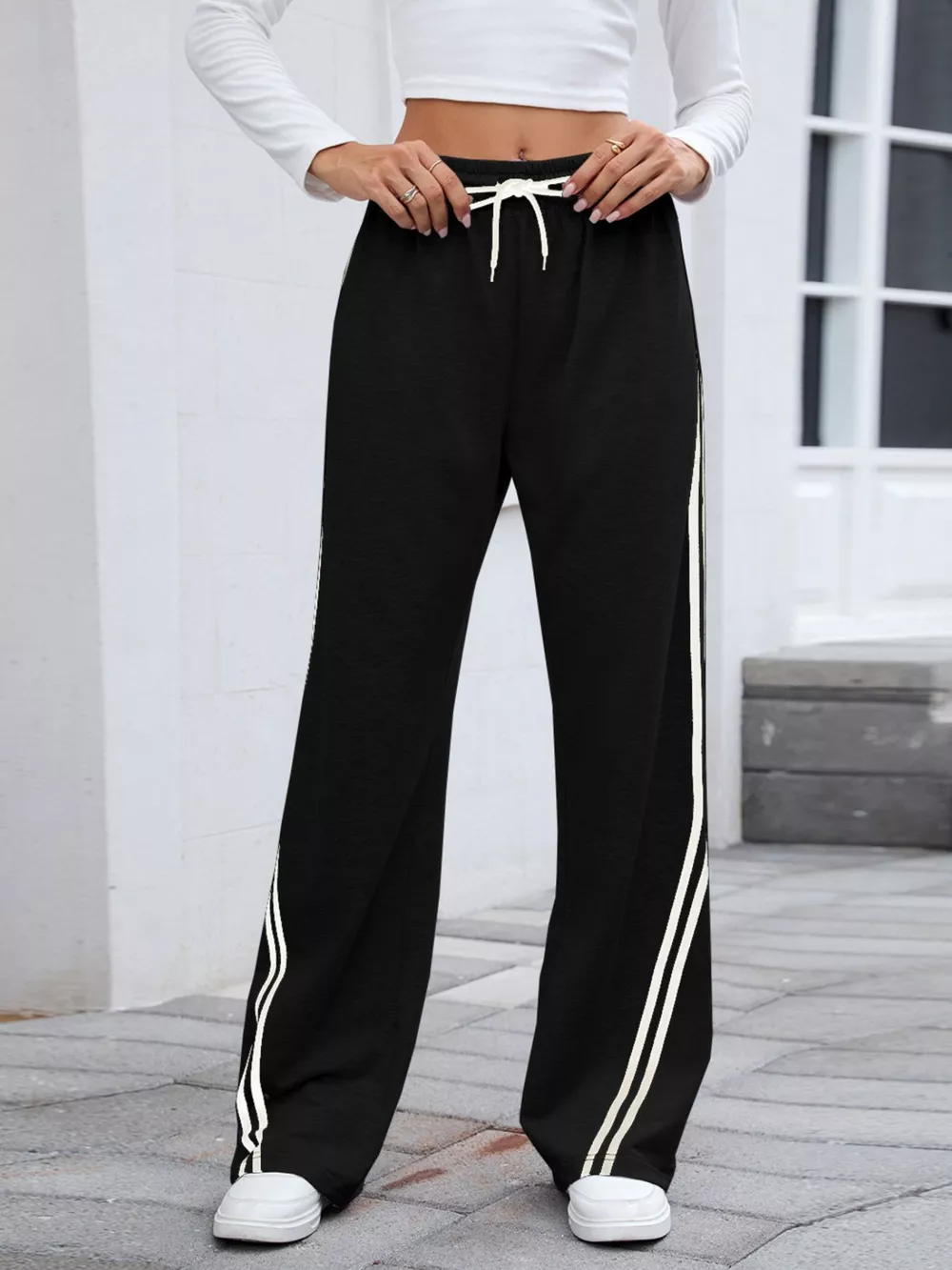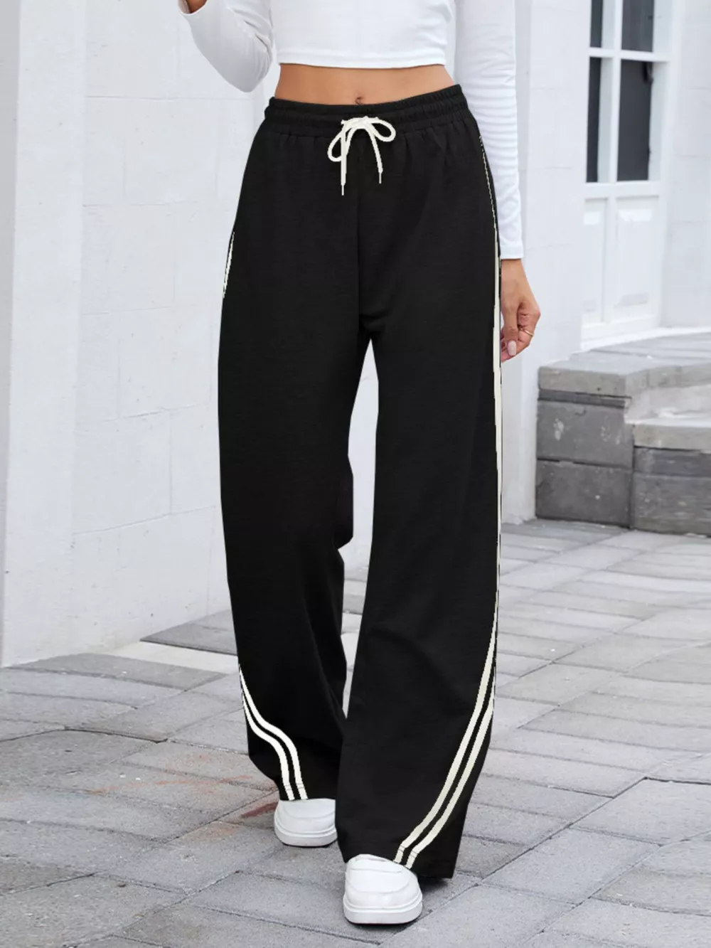 Side Striped Wide Leg Pants