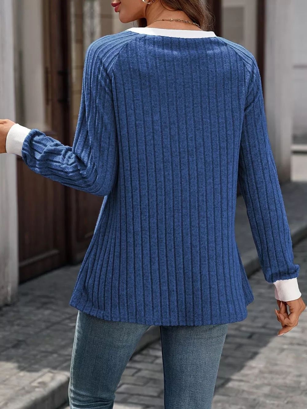 Ribbed Round Neck Raglan Sleeve Knit Top
