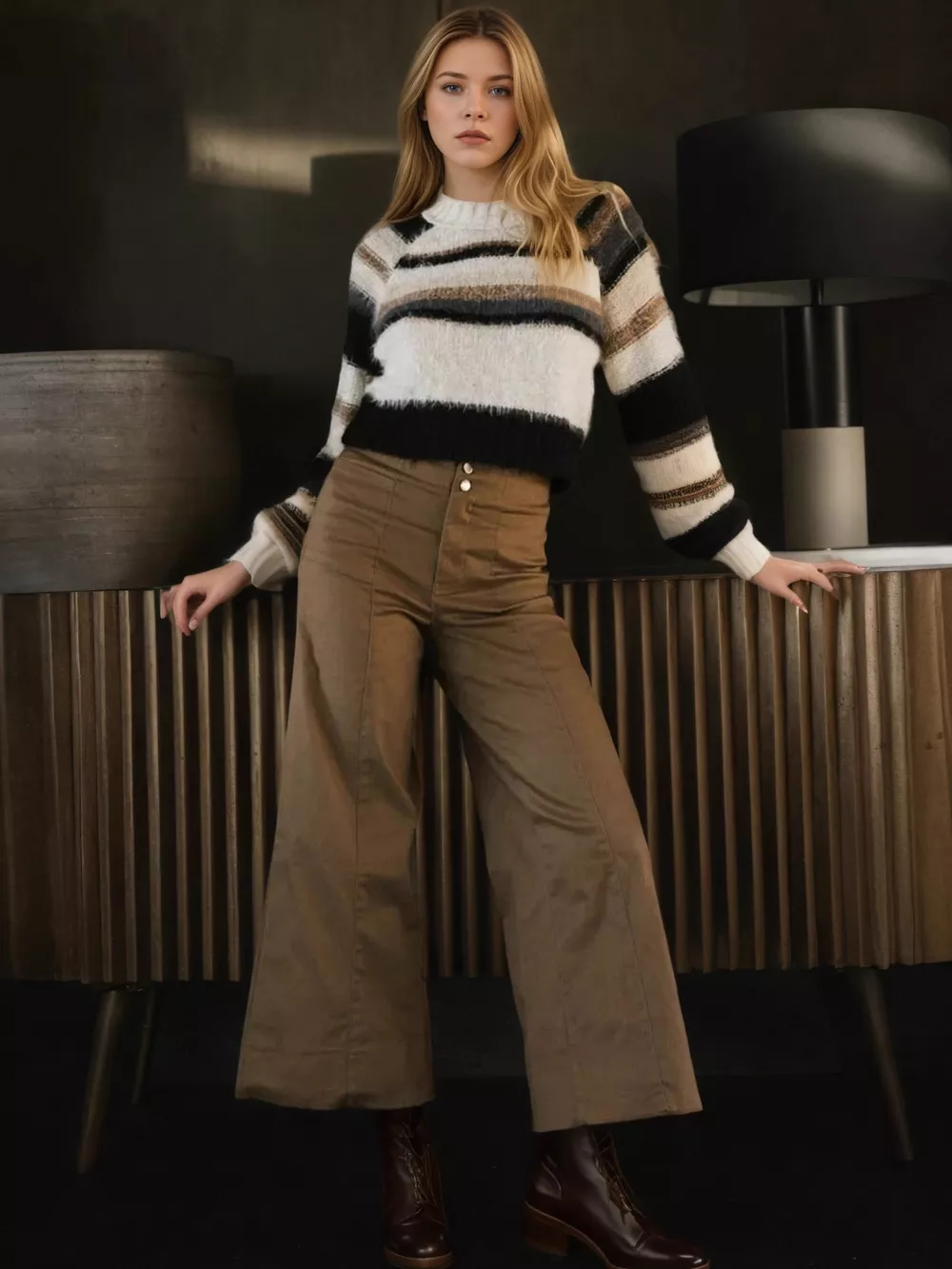 High-Waisted Wide Leg Cropped Pants