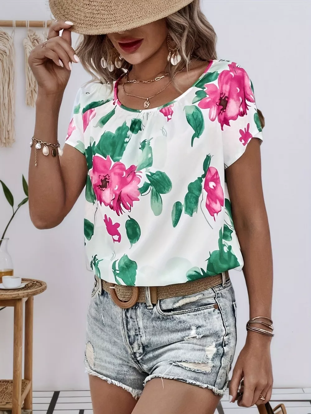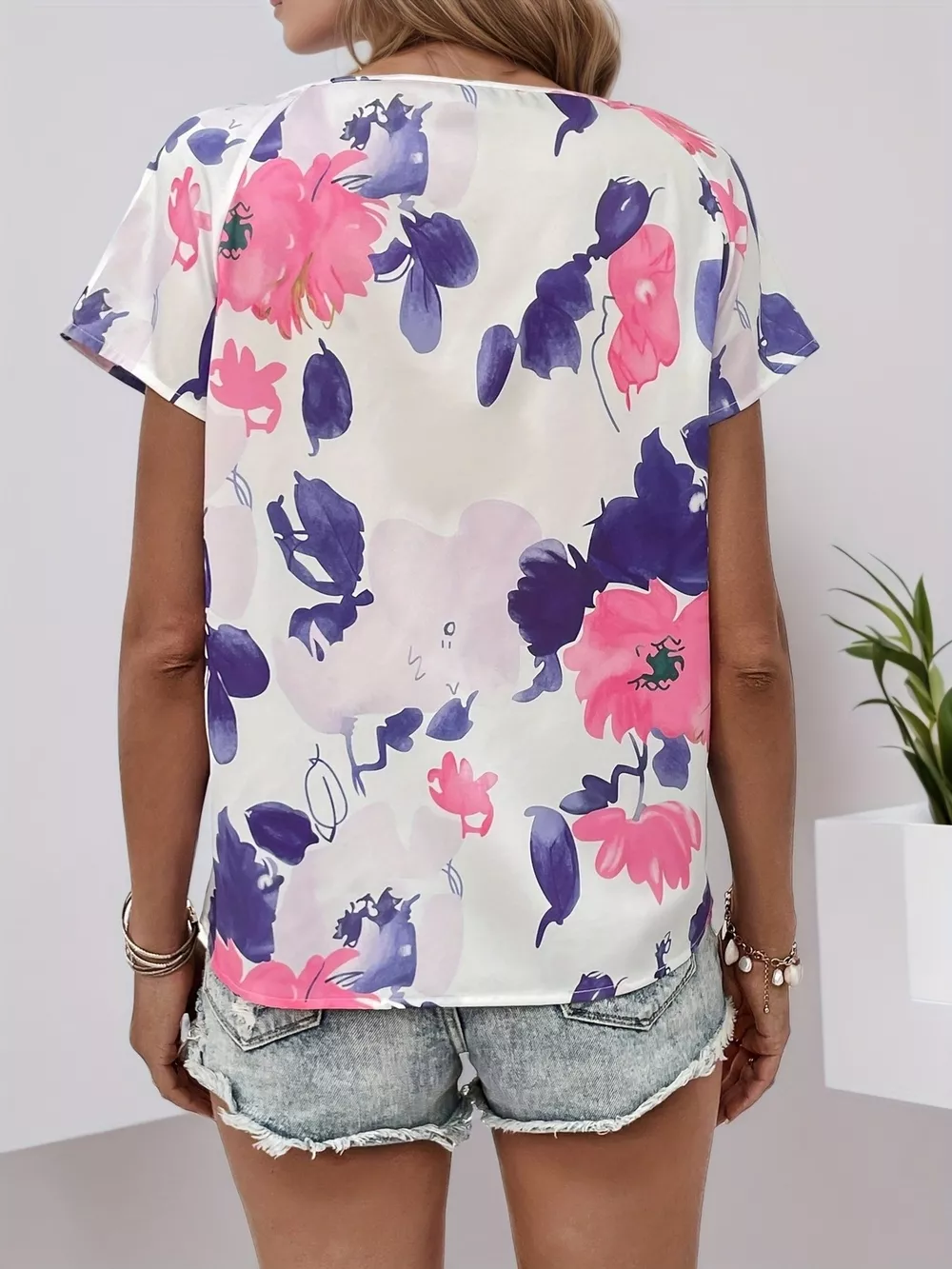 Floral Print Short Sleeve Blouse