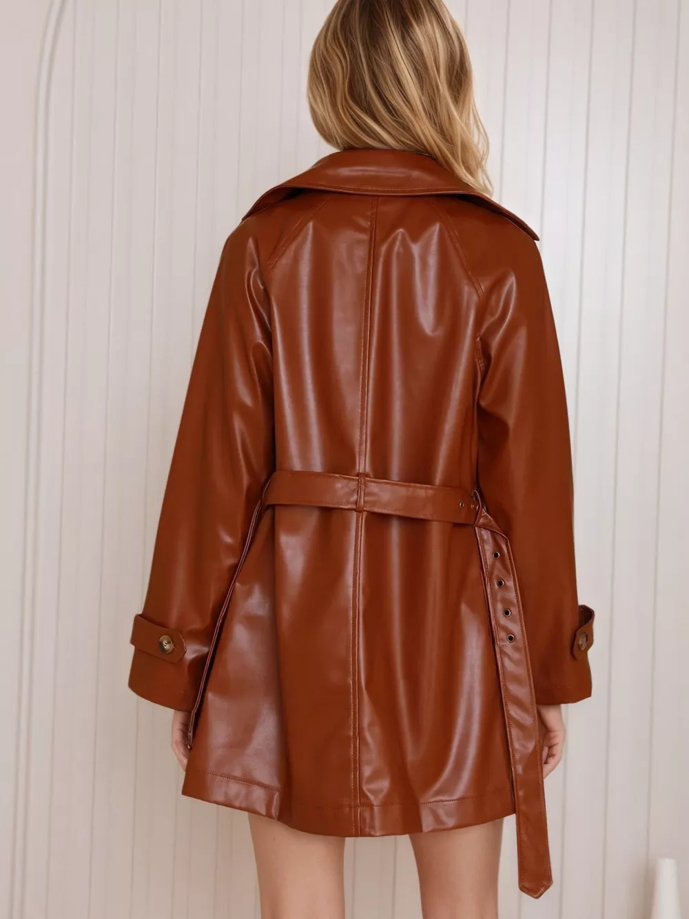 - Features:Buttoned,Belted,Double-breasted