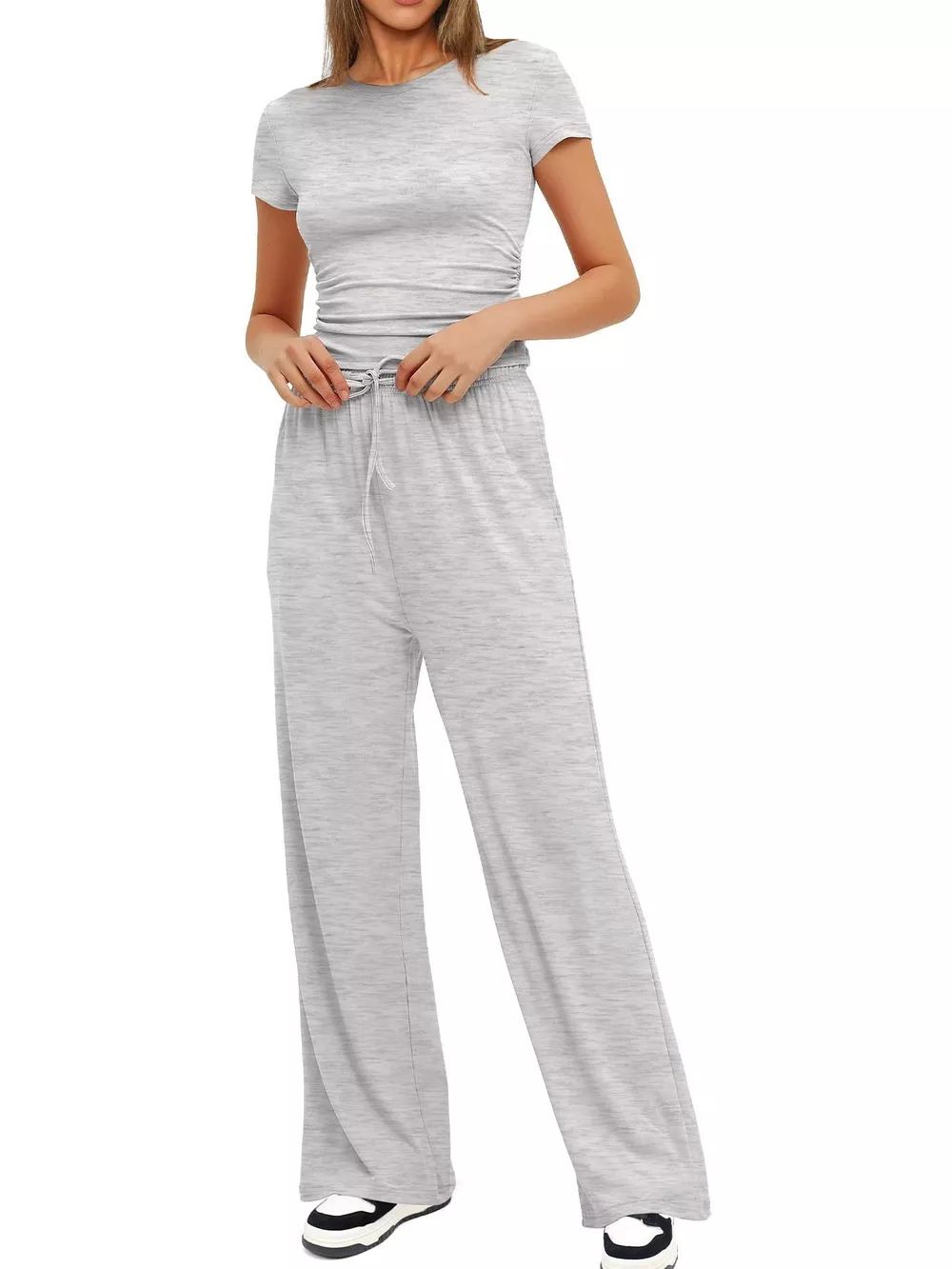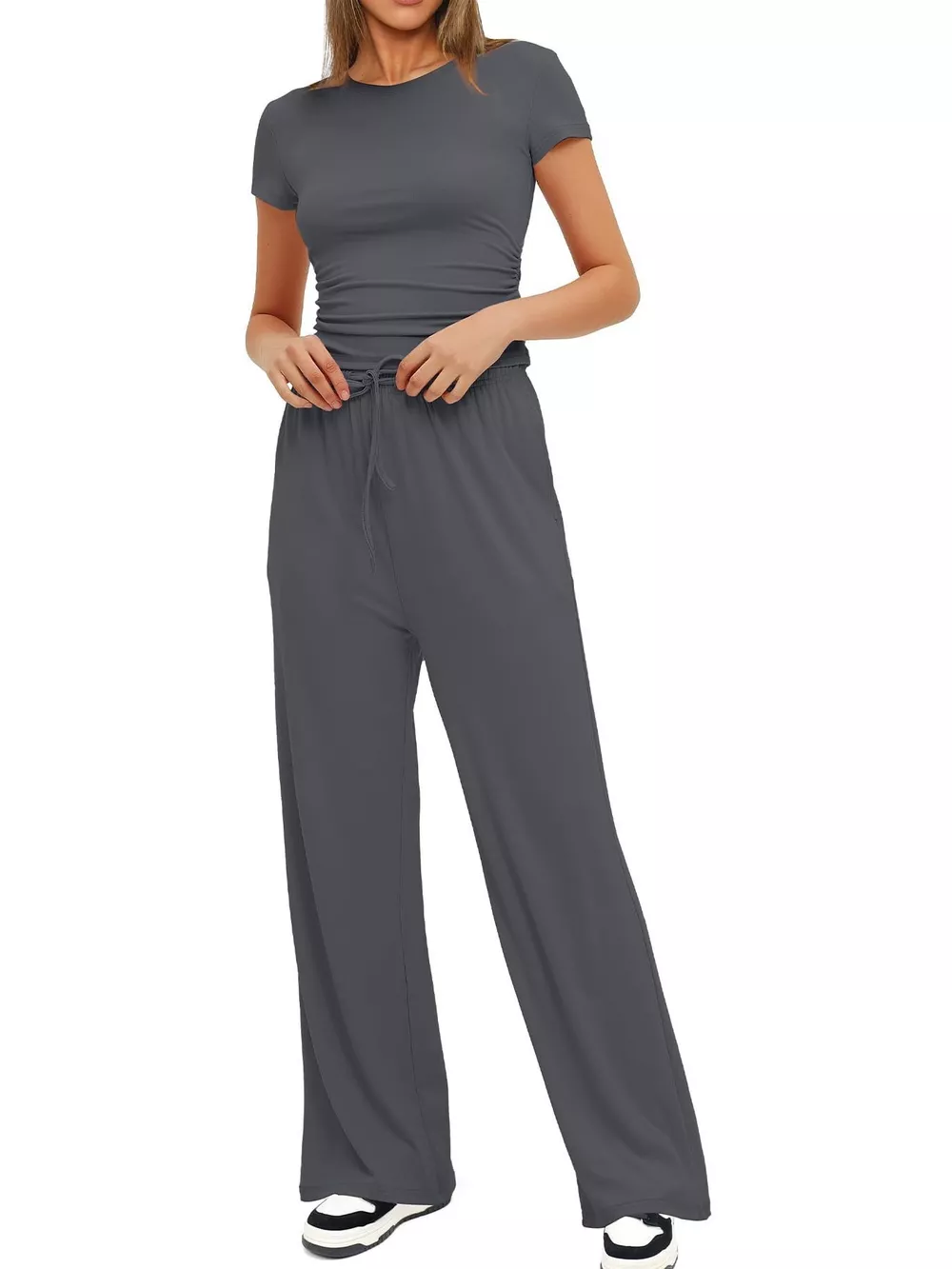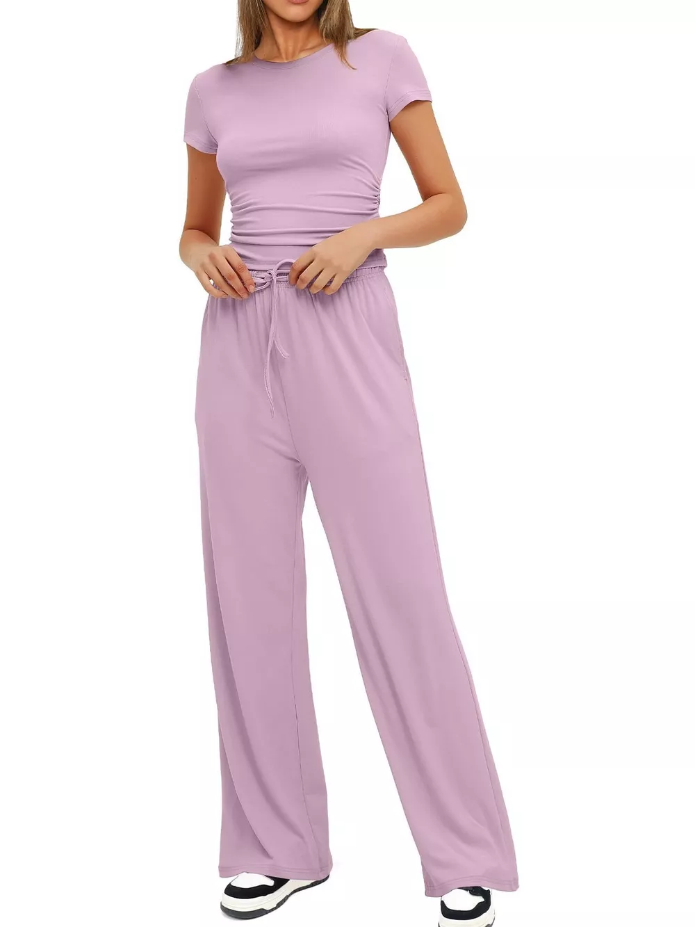 Round Neck Short Sleeve T-Shirt and Pants Set