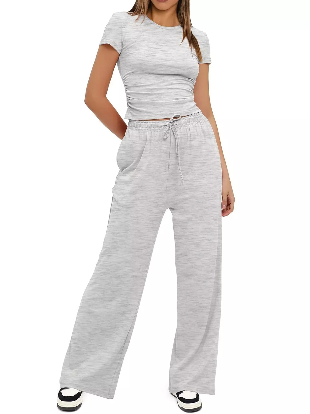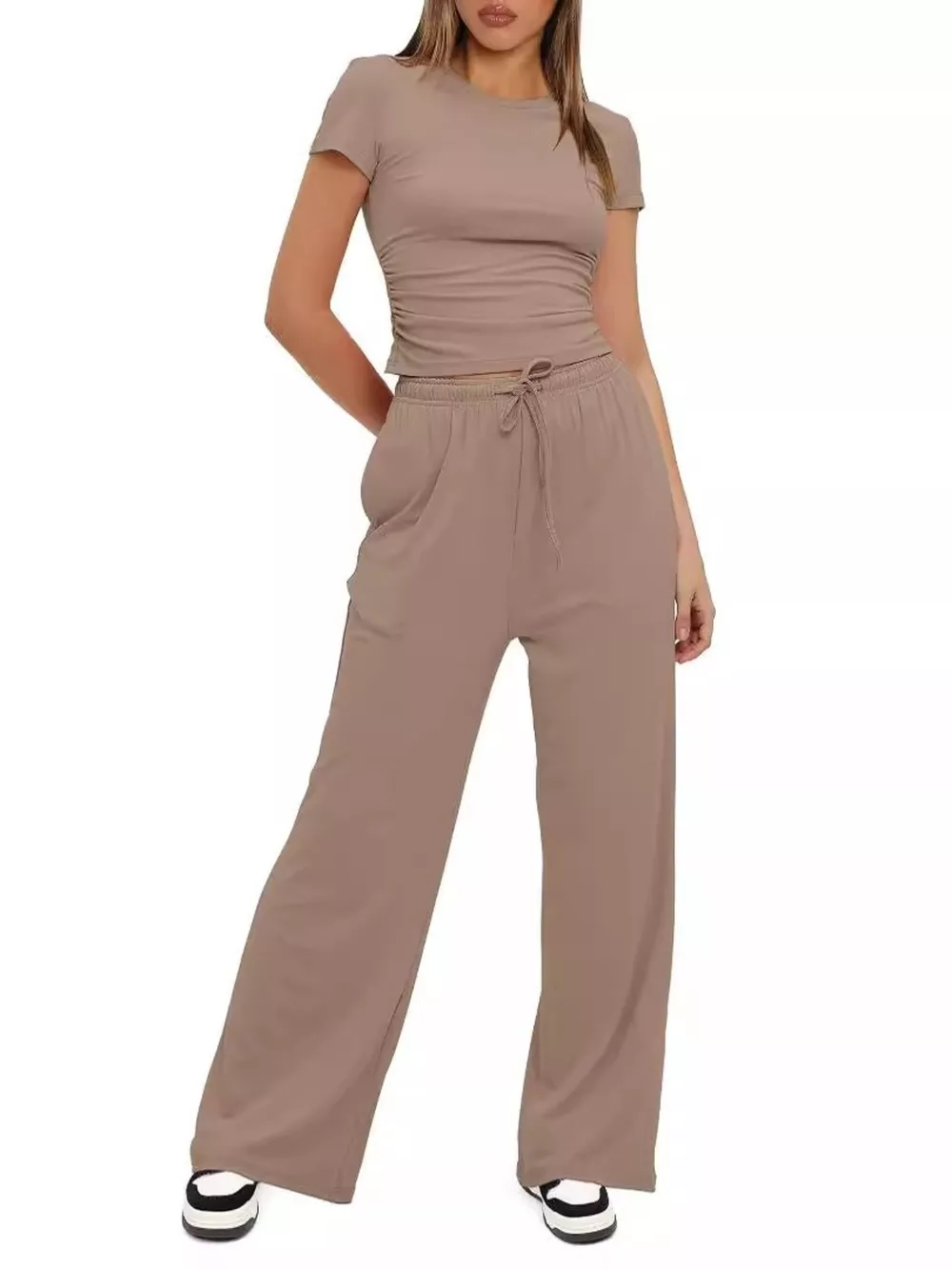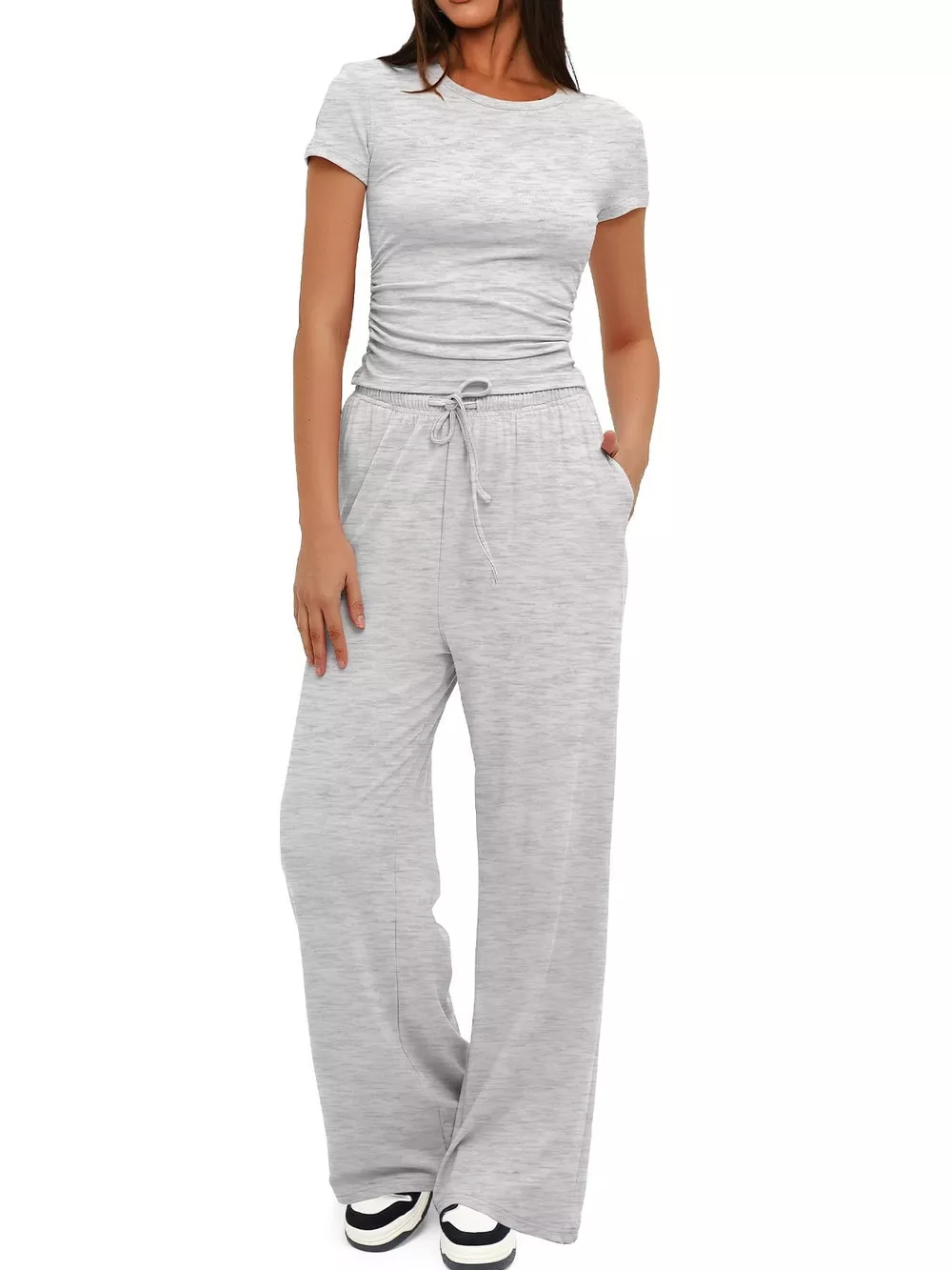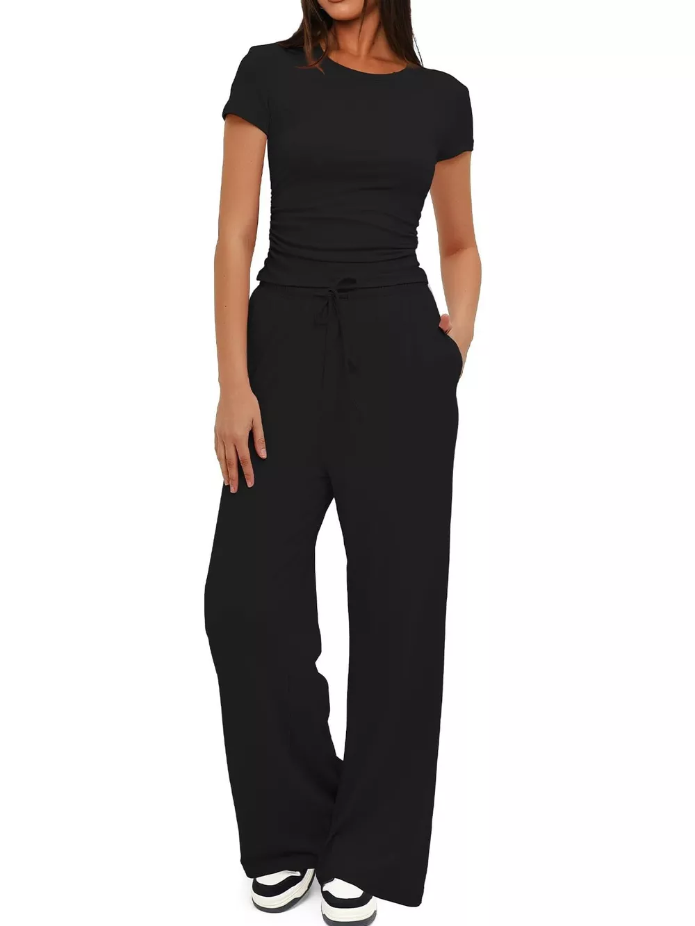 Round Neck Short Sleeve T-Shirt and Pants Set