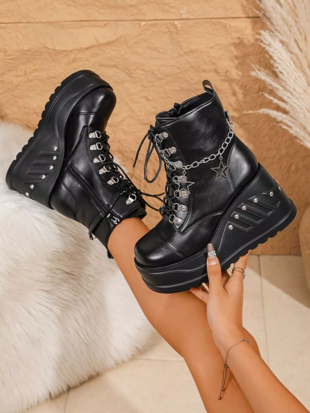 Round Toe Platform Wedge Boots
